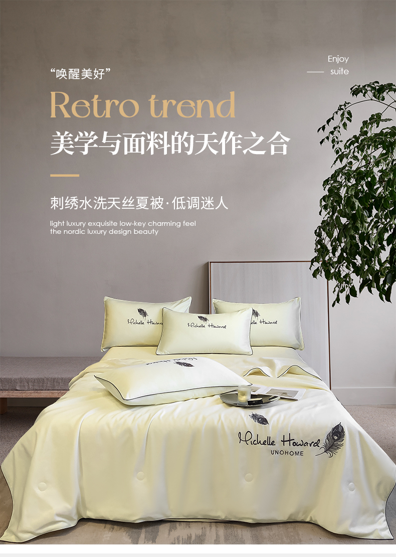 • 91家纺网 家纺一手货源 找家纺 吾诺 2025 双拼及羽毛刺绣夏被四件套绣花夏被水洗天丝夏被水洗真丝夏凉被空调被 羽毛-奶昔白