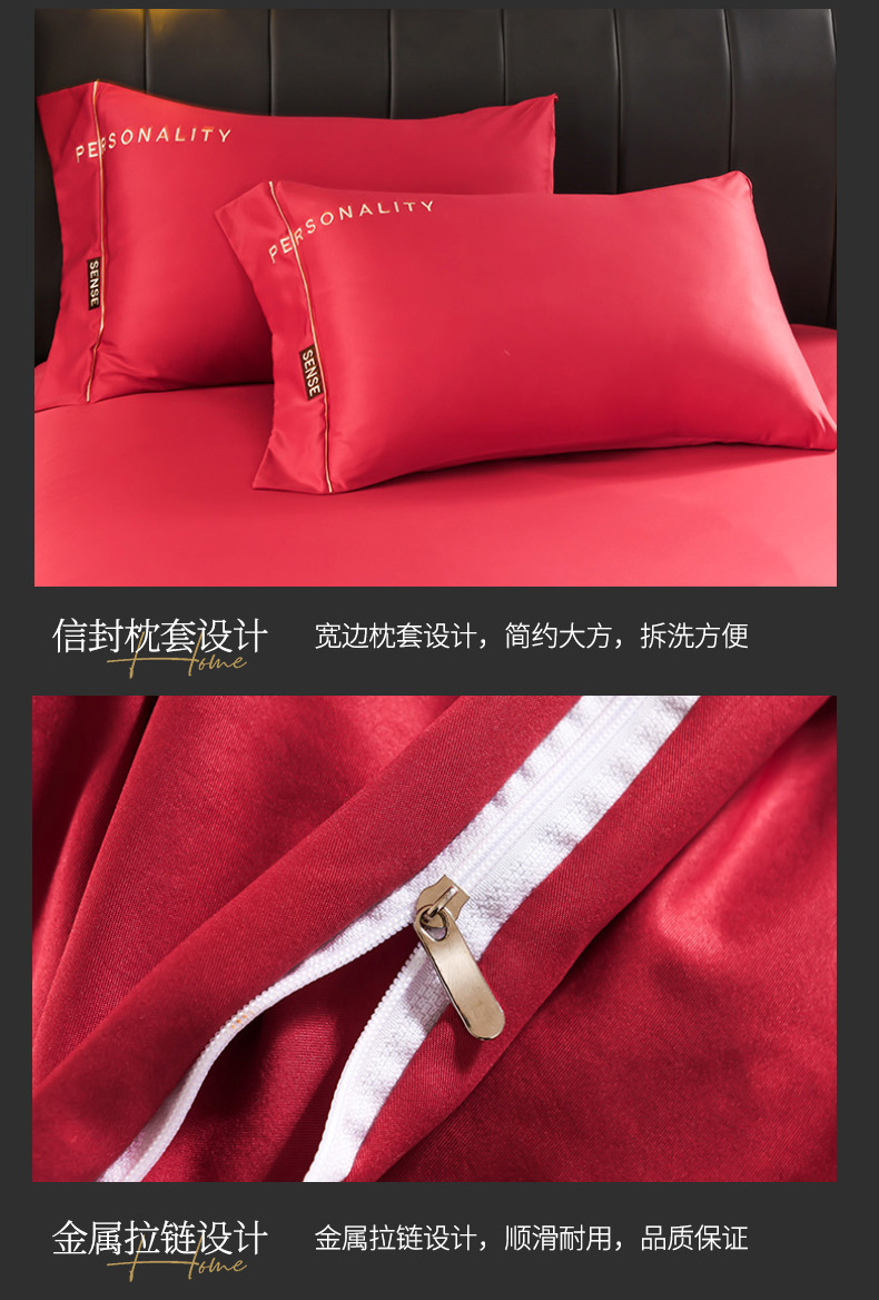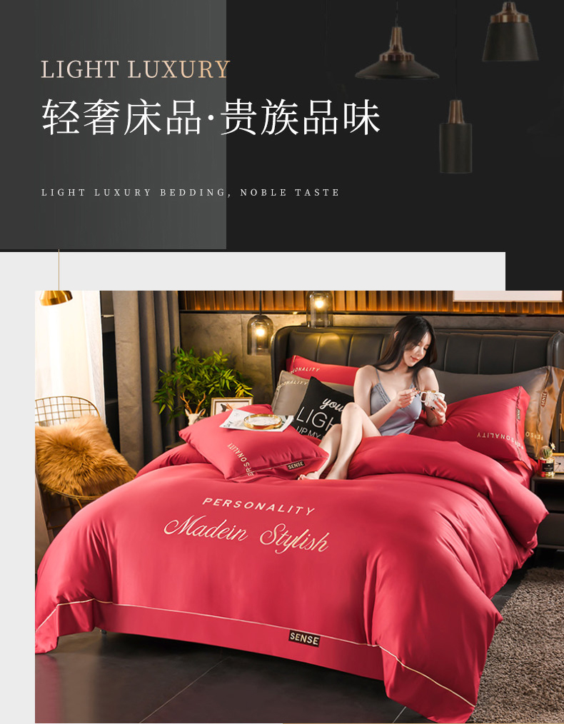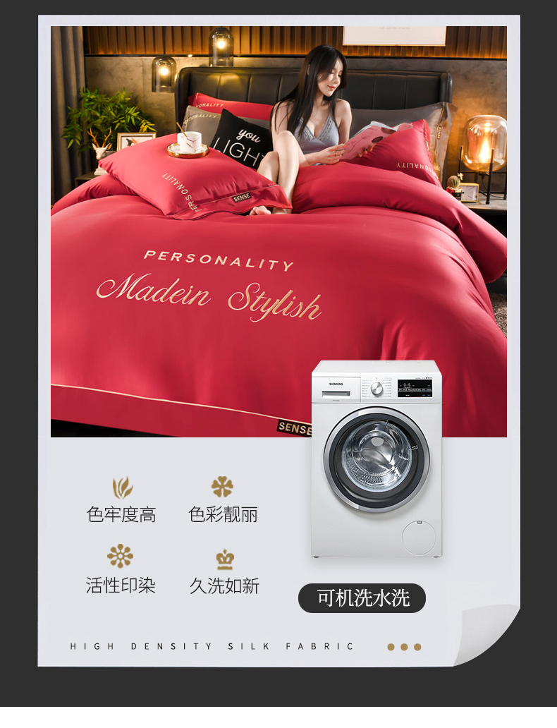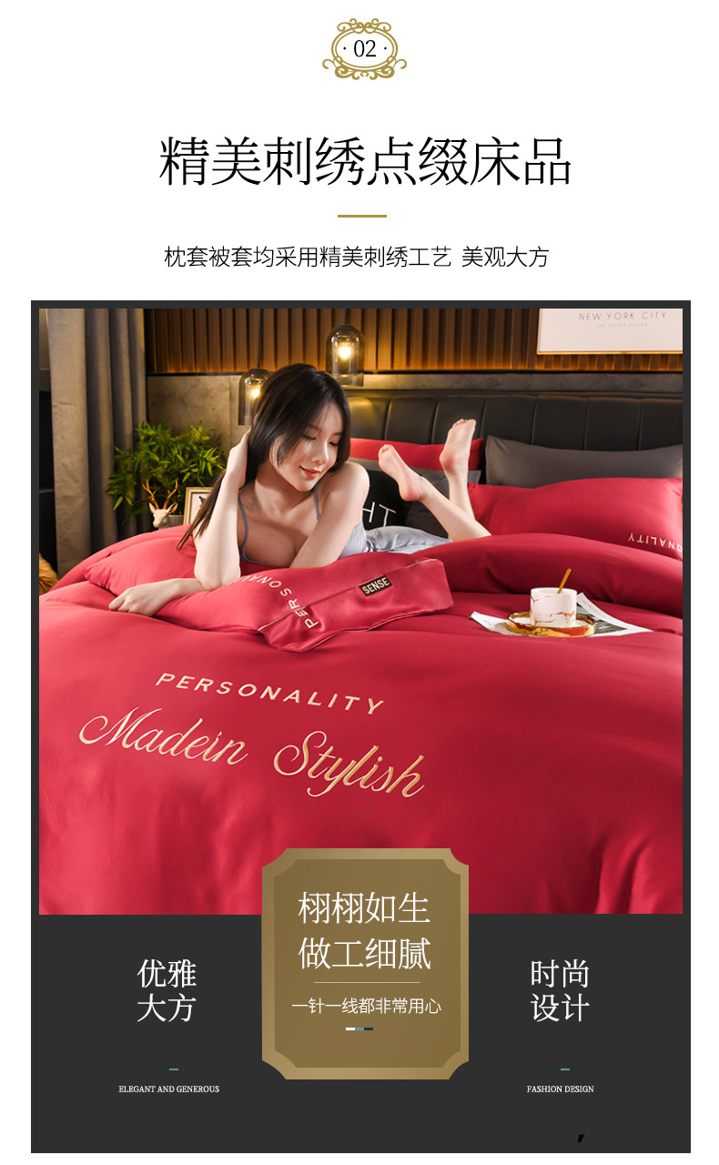 商品名称:睡美人 2025新款水洗真丝高端轻奢绣花款四件套-爱娜 爱娜-酒红色