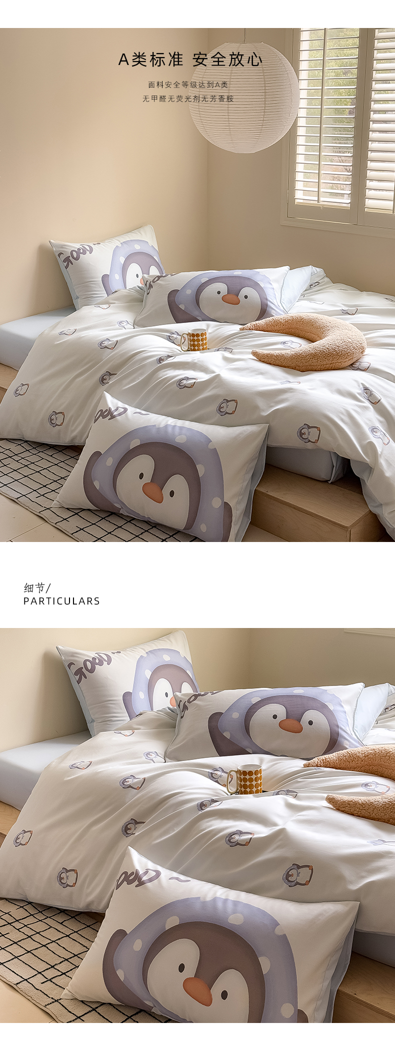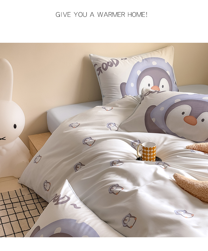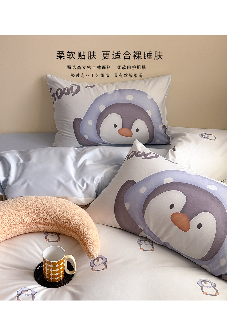 商品名称:Mr.pig猪先生水洗棉 2025新款50贡缎长绒棉数码印花嵌绳四件套 good-企鹅