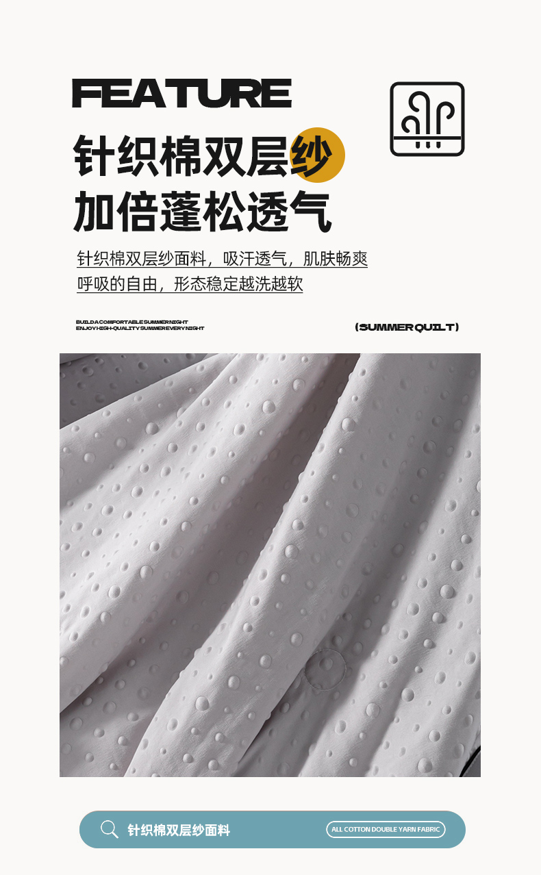 商品名称:吾诺 2025 凉豆豆针织棉双层纱夏被四件套水洗棉夏凉被空调被 豆豆白