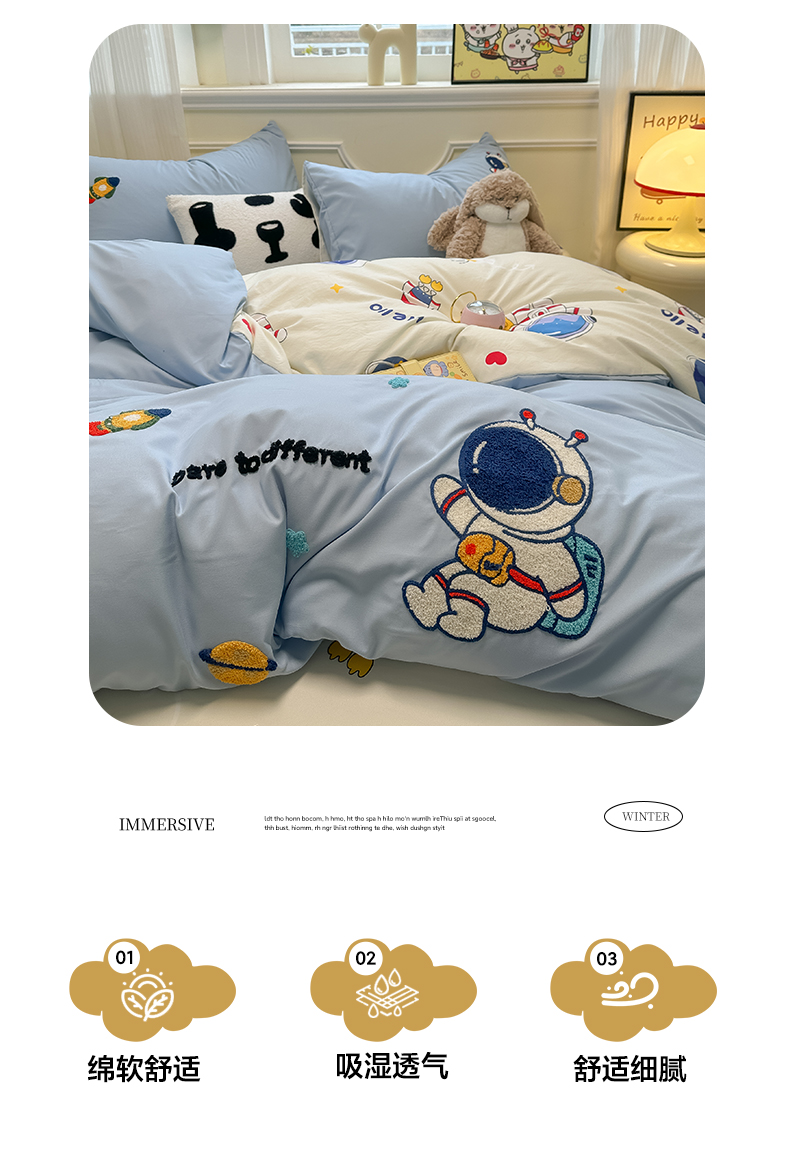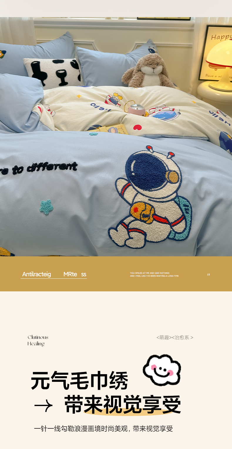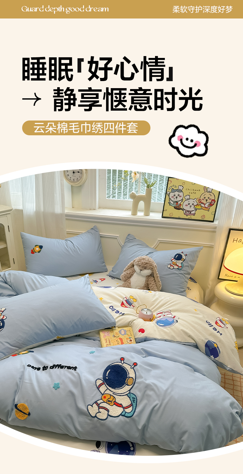 当前位置: 91家纺网 > 商品网购 > 床品套件 > 四件套 > 毛巾绣四件套 > 韩巢家纺 2025新款云朵棉印花毛巾绣四件套(提供买家秀) 太空超人