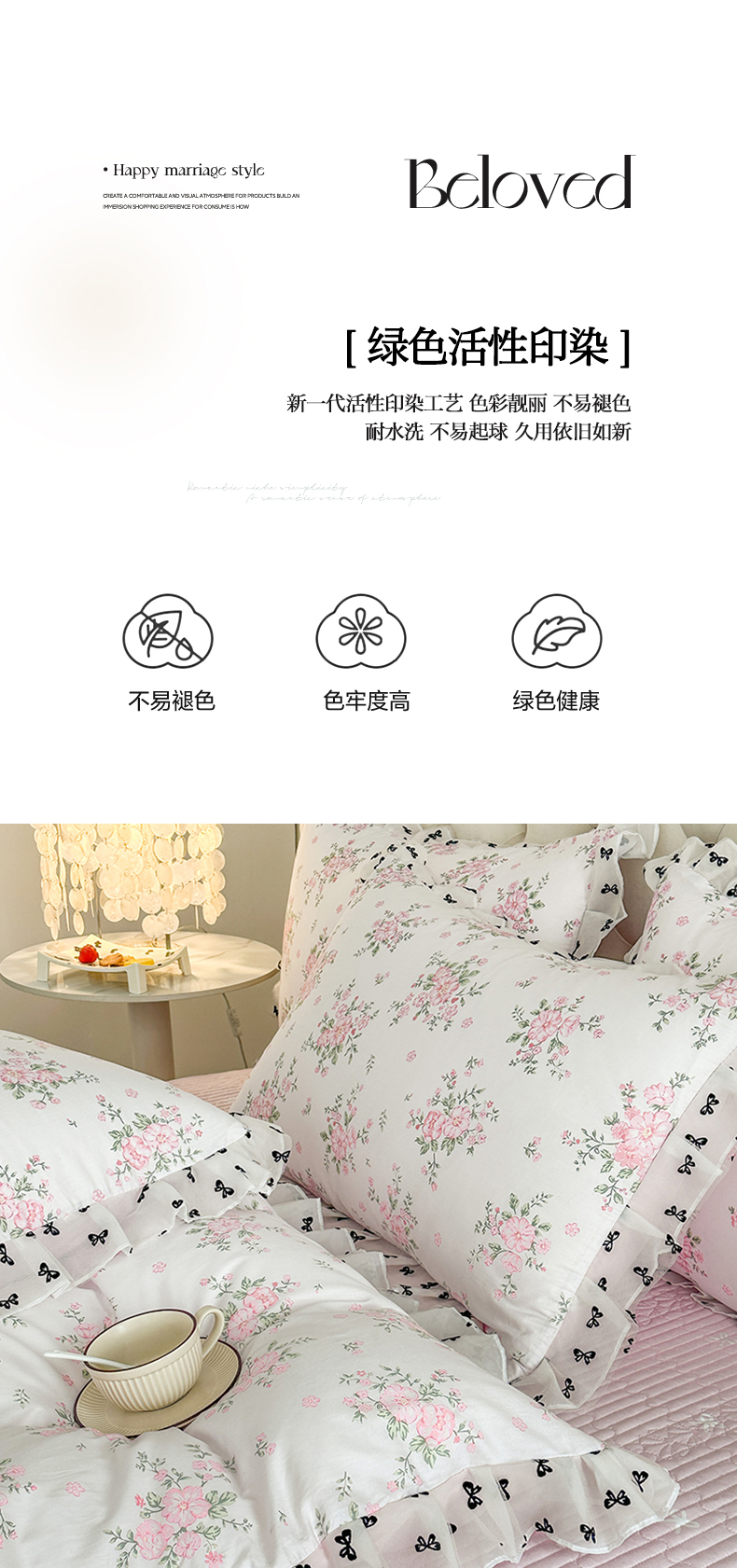 美伦美焕 2025新款全棉印花床盖四件套 蓝韵