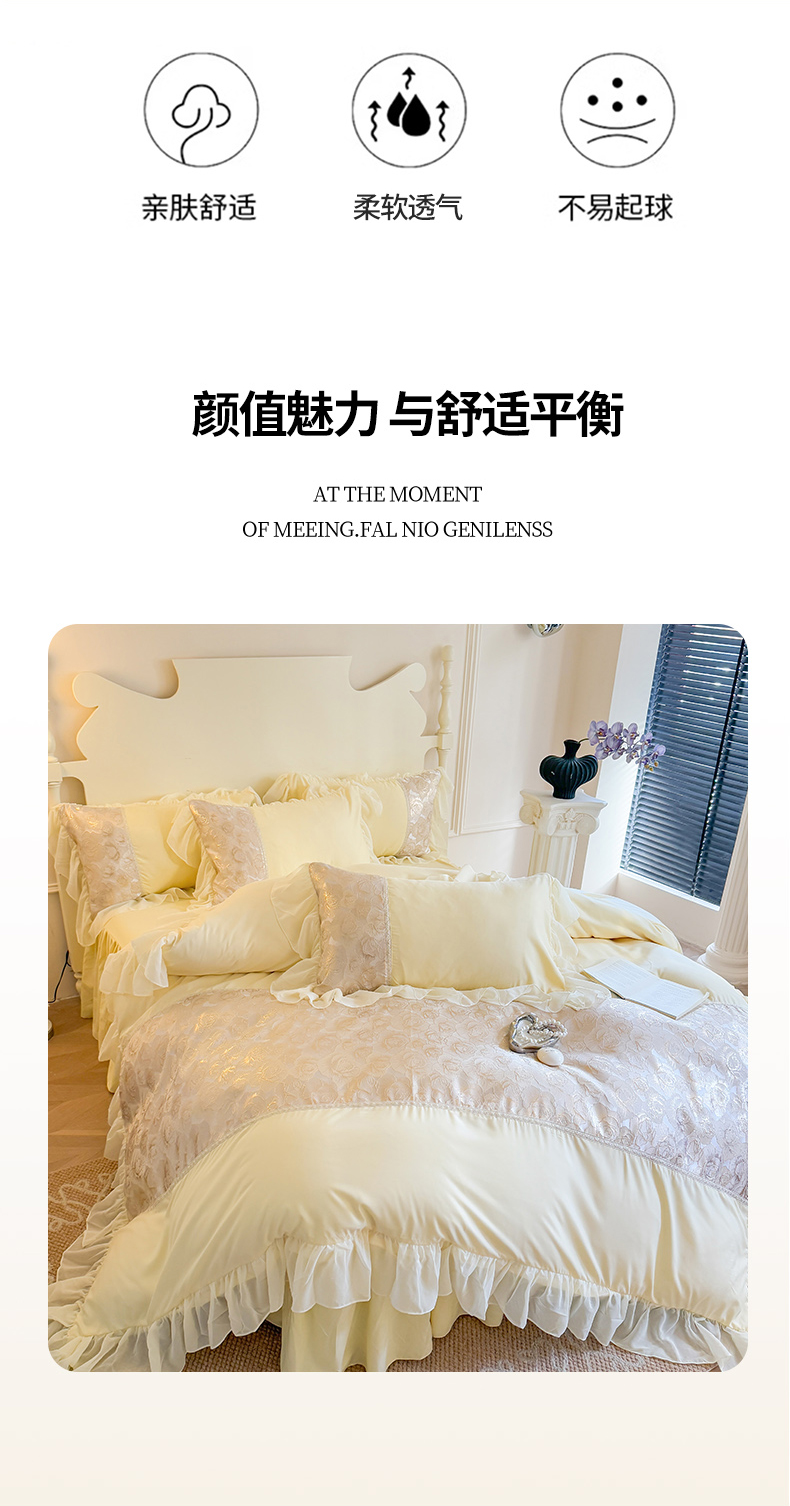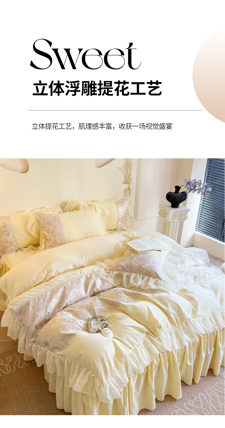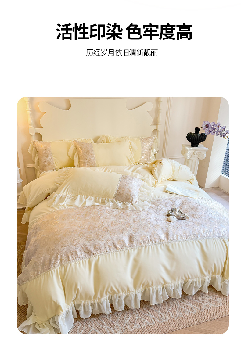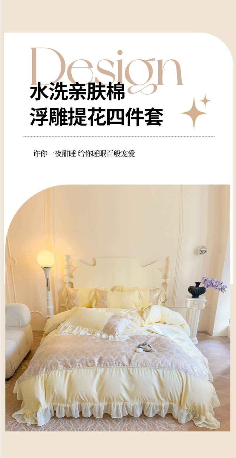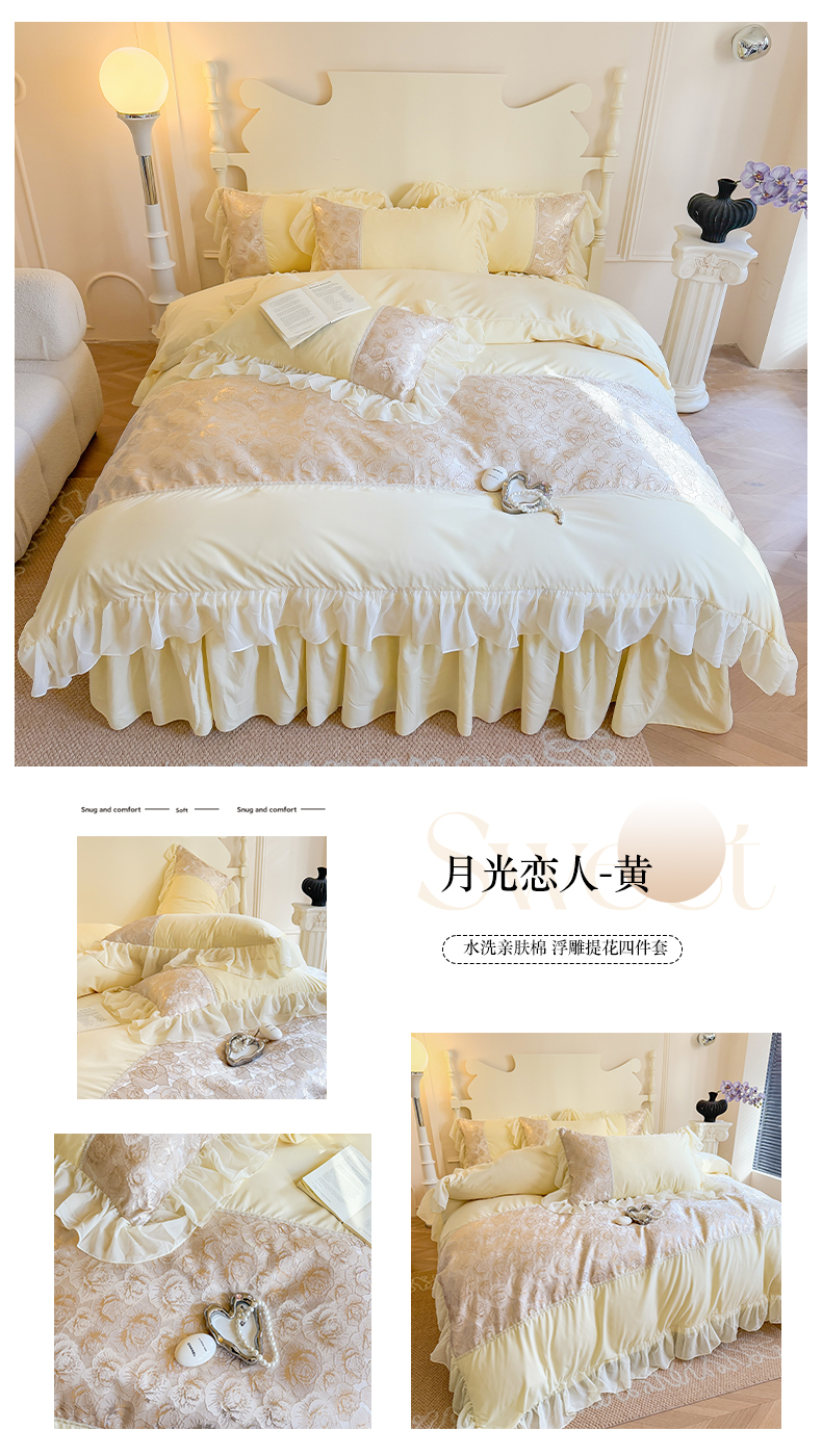 当前位置: 91家纺网 > 商品网购 > 床品套件 > 四件套 > 全棉普通四件套 > 富盛 2025新款水洗亲肤棉浮雕提花公主风四件套 月光恋人-黄