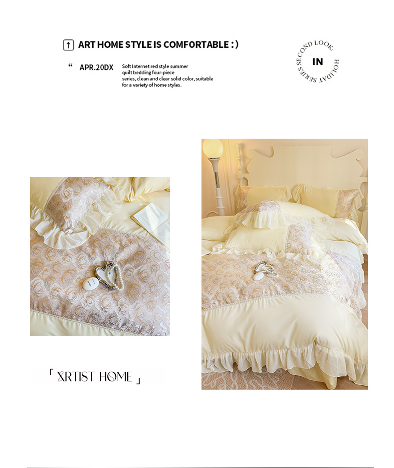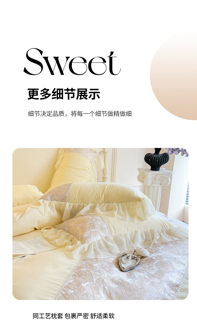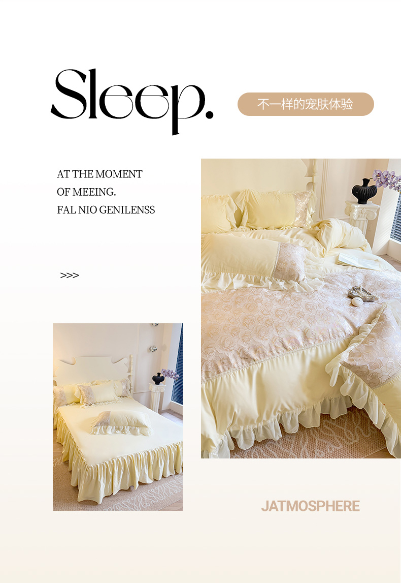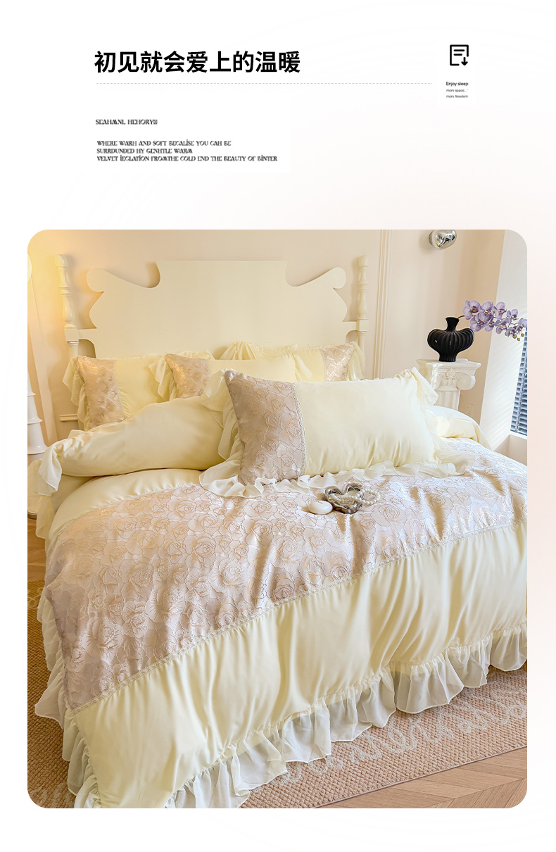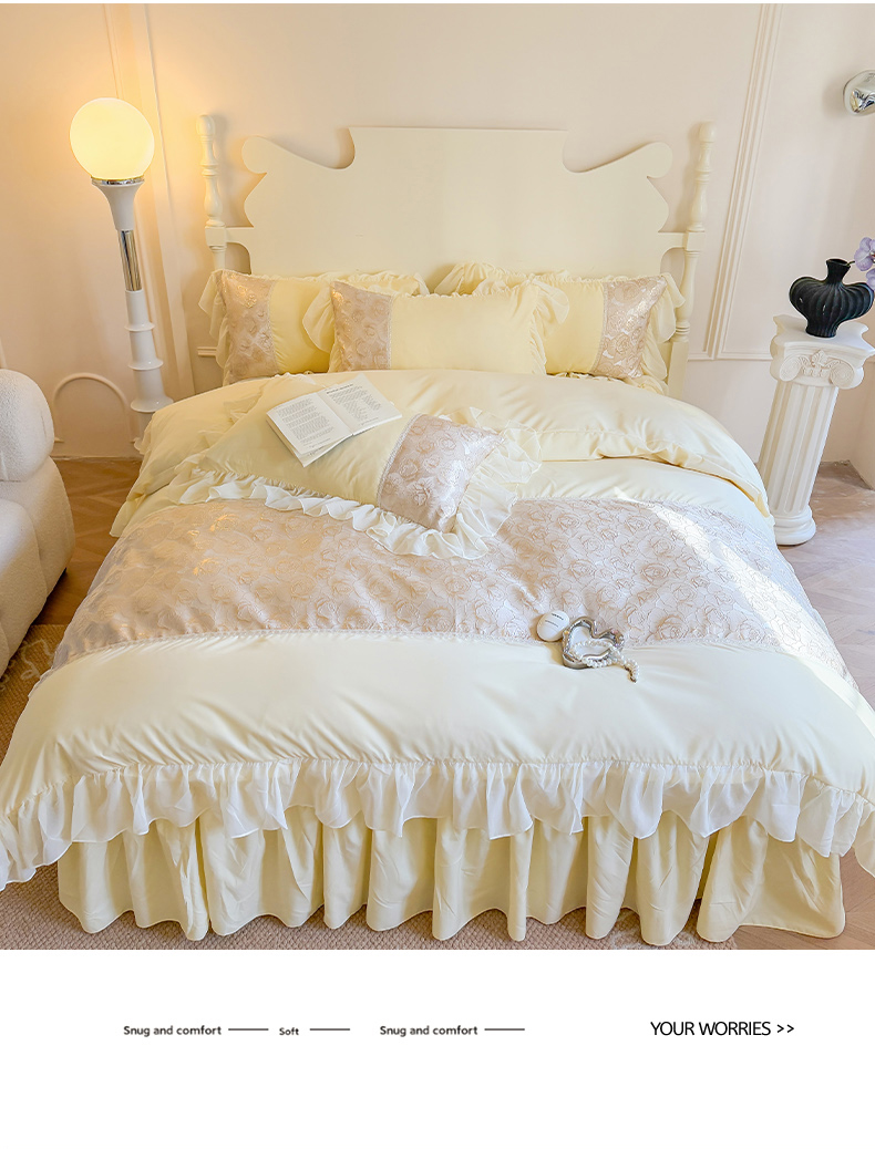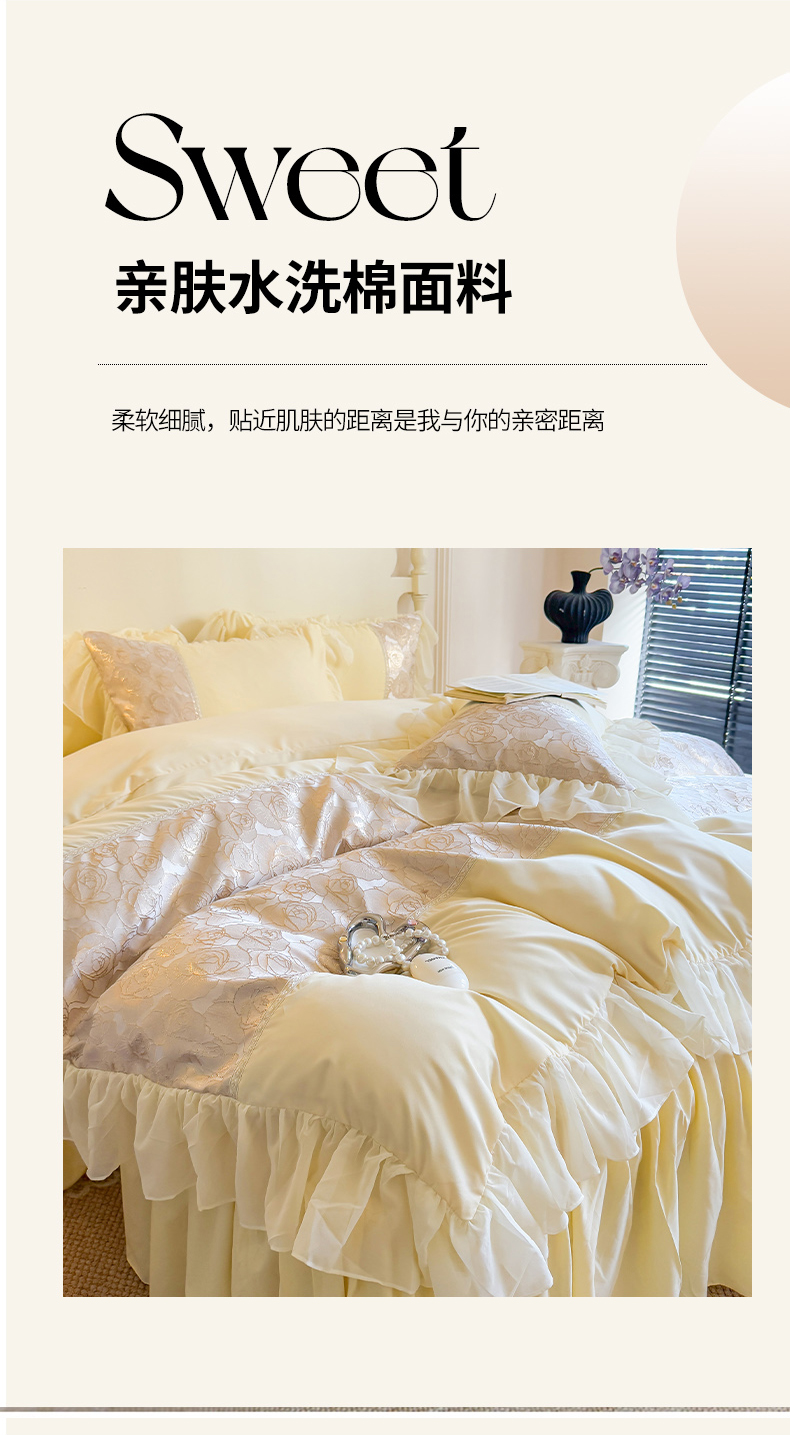 当前位置: 91家纺网 > 商品网购 > 床品套件 > 四件套 > 全棉普通四件套 > 富盛 2025新款水洗亲肤棉浮雕提花公主风四件套 月光恋人-黄