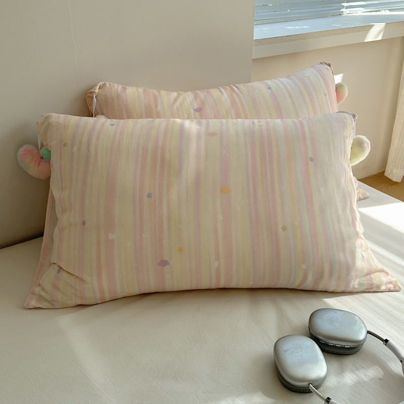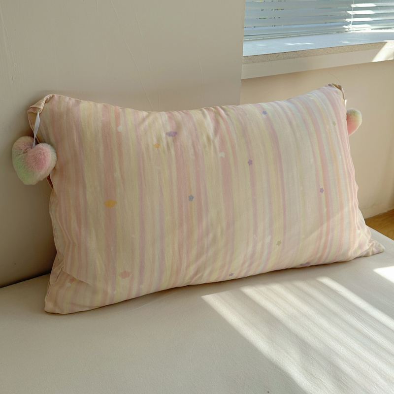 商品名称:丽涵家纺 2025新款全棉双层纱枕头套-毛球款 焕彩星空
