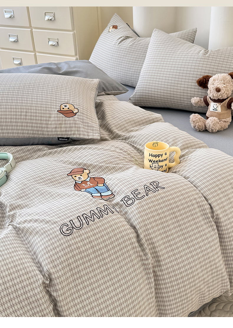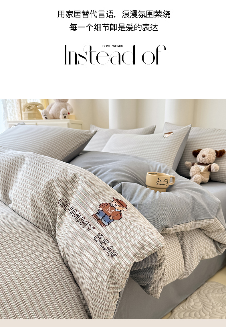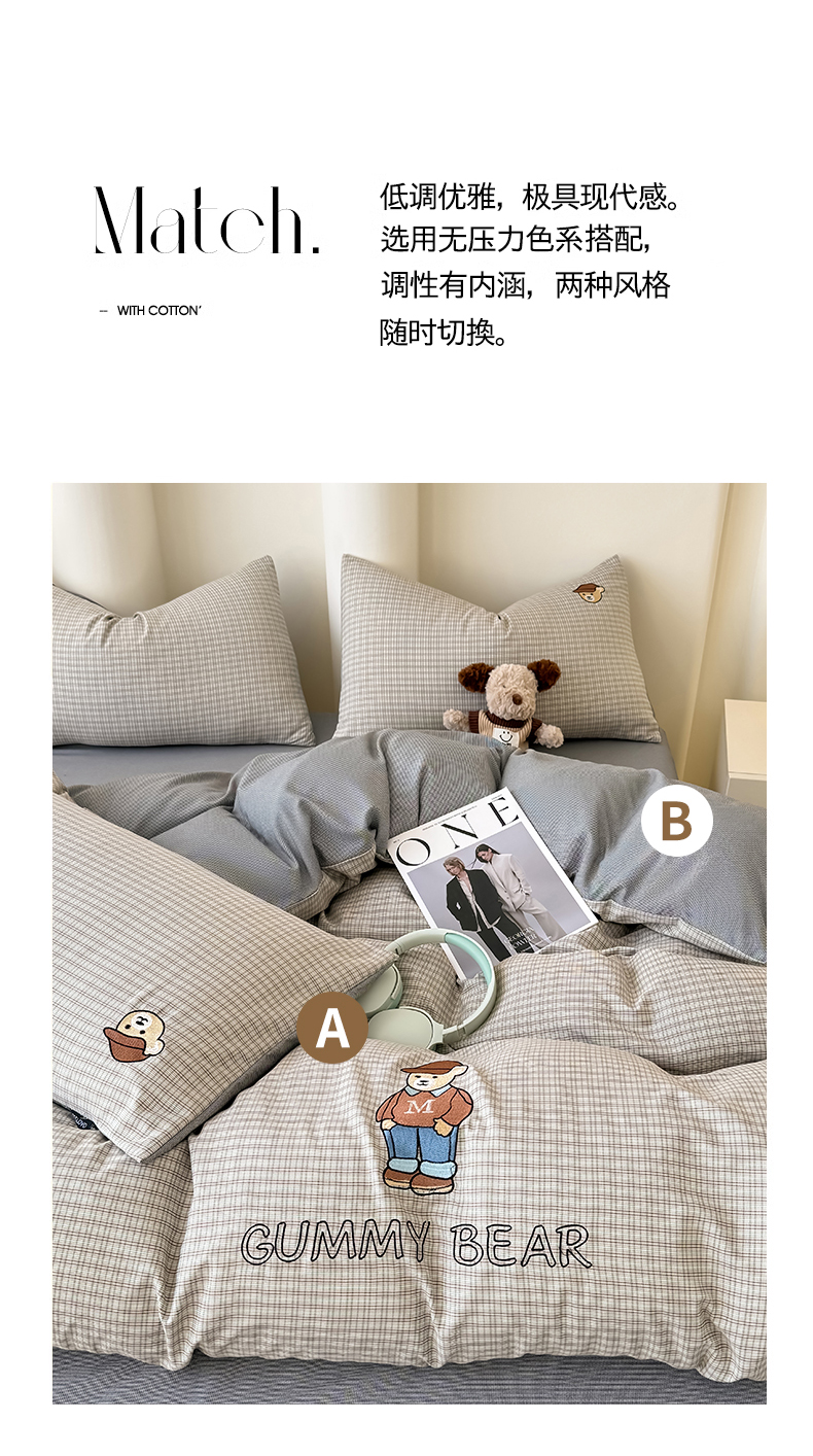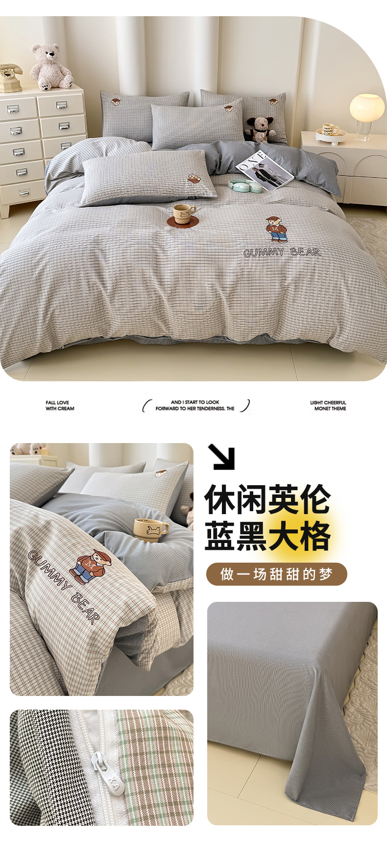 KA家纺 春夏新款A类色织水洗棉四件套 休闲英伦蓝黑大格