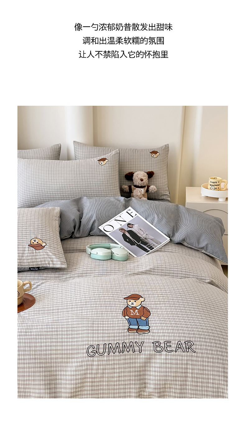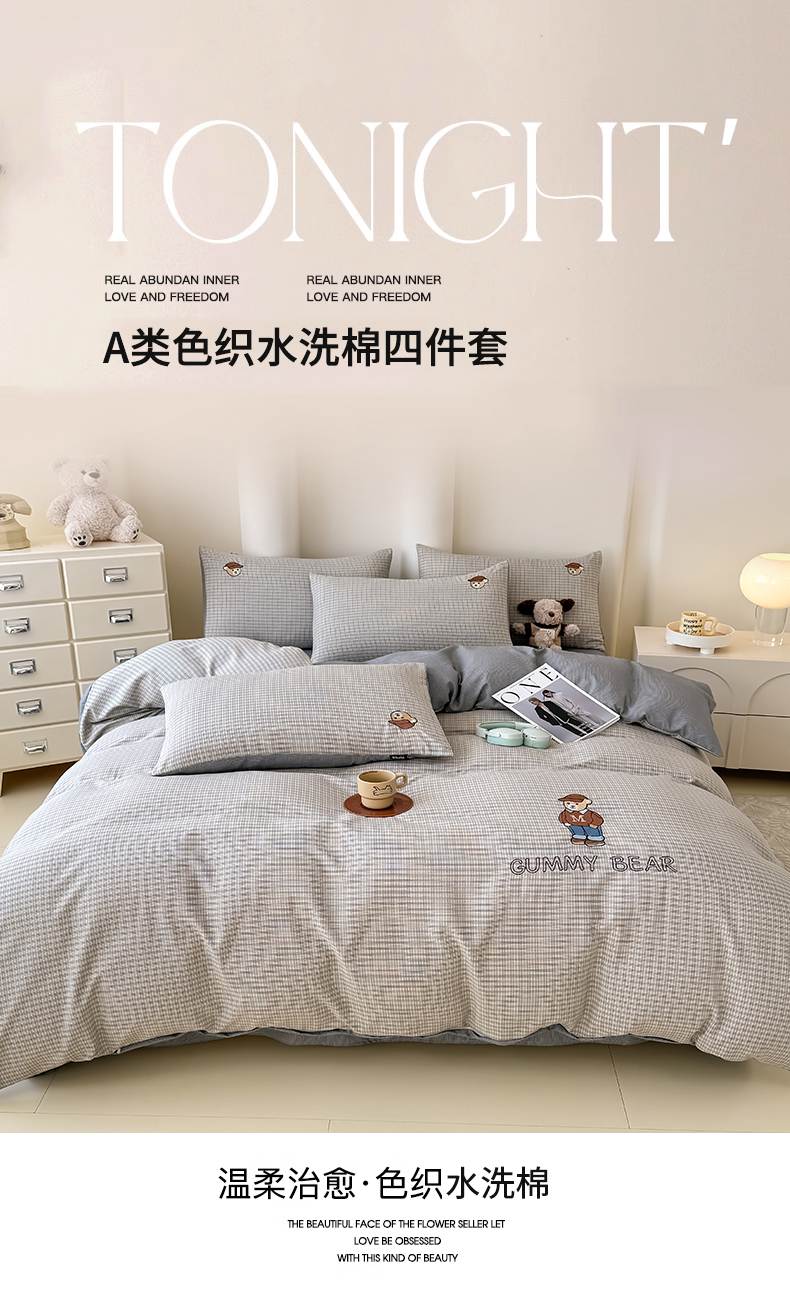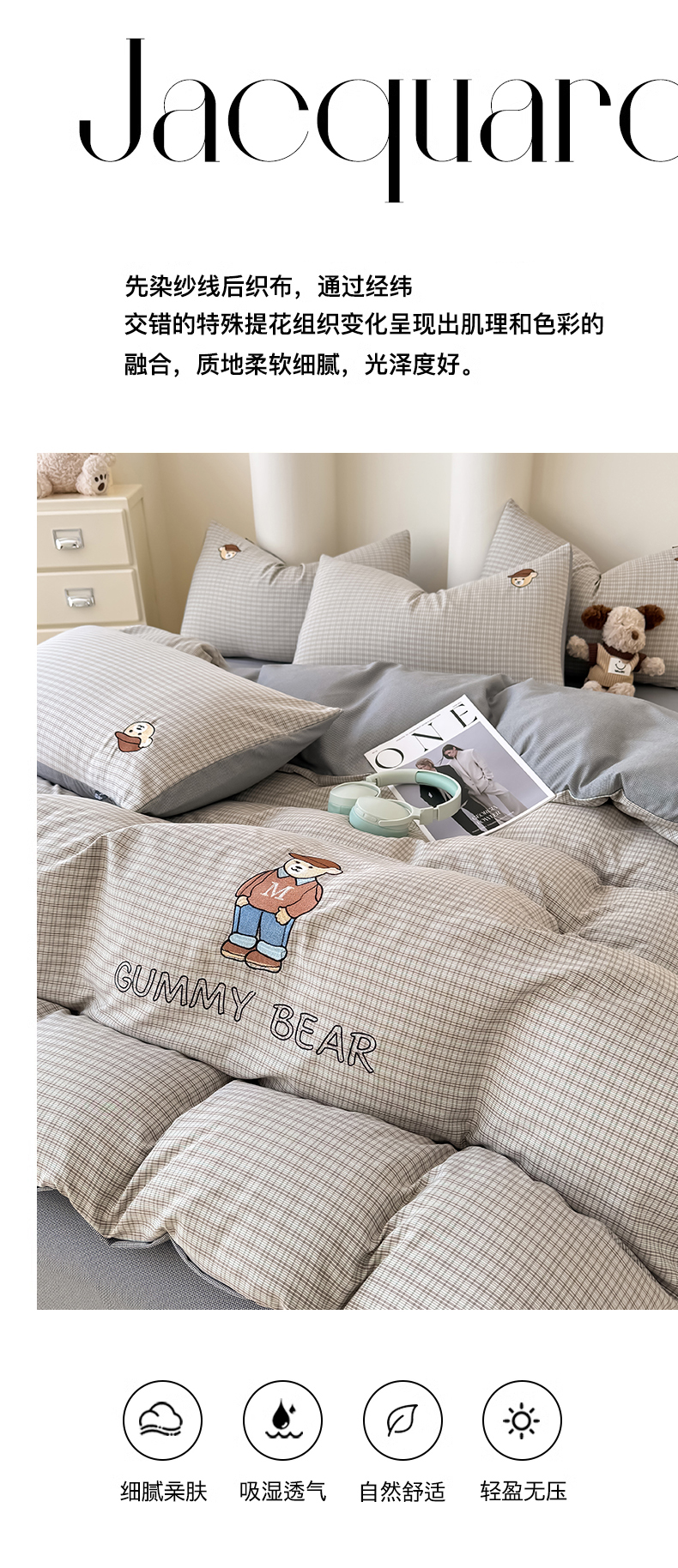 商品名称:KA家纺 春夏新款A类色织水洗棉四件套 休闲英伦蓝黑大格