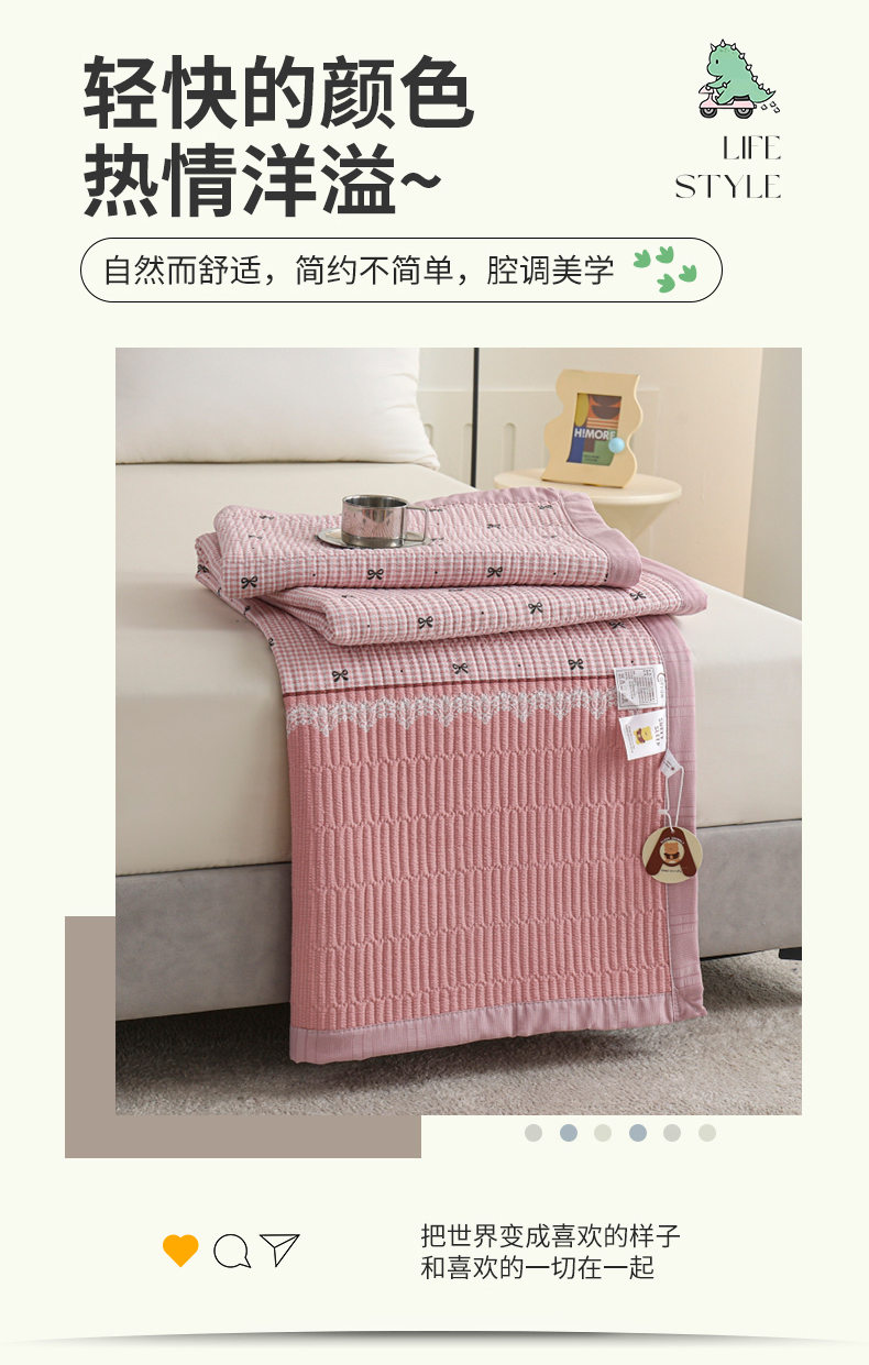 (总)源舜家纺 2025新款色织棉简约韩系花边床盖三件套,简约灰,简约粉,简约绿,简约驼,简约蓝