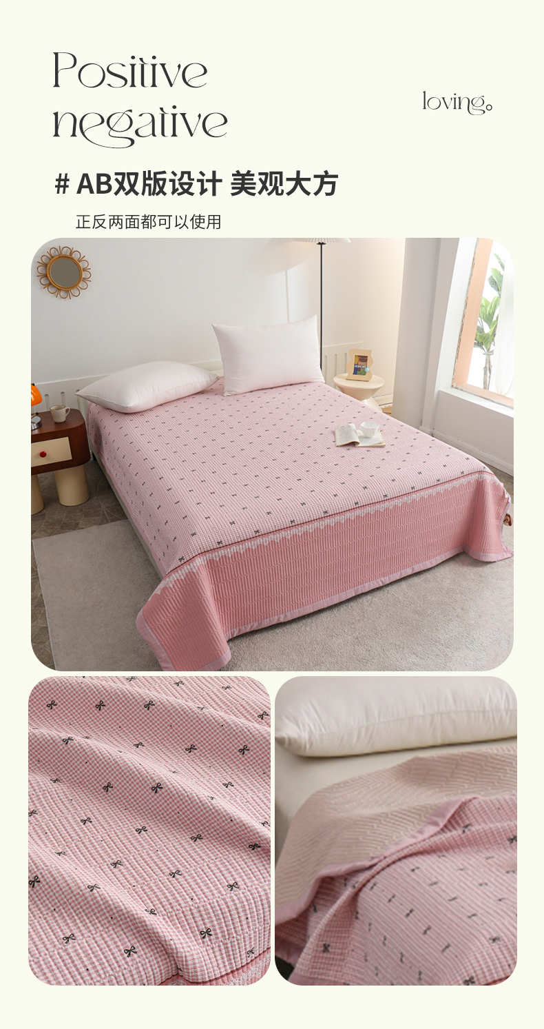源舜 2025新款皱皱纱拼接款单床盖床单 蝴蝶结-粉