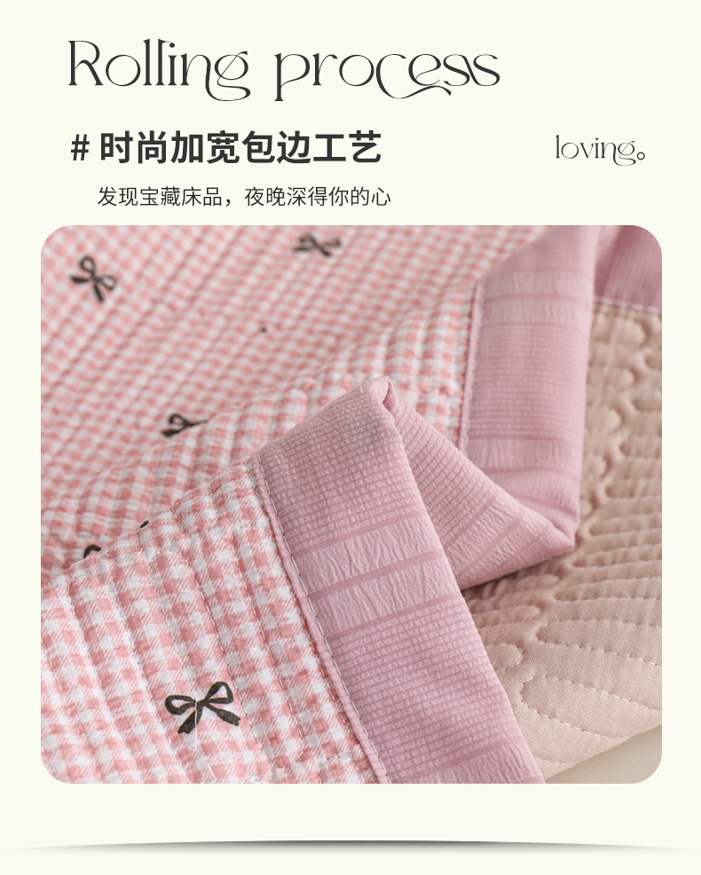 商品名称:源舜 2025新款皱皱纱拼接款单床盖床单 蝴蝶结-粉