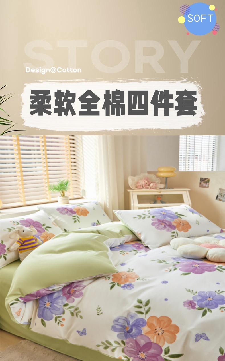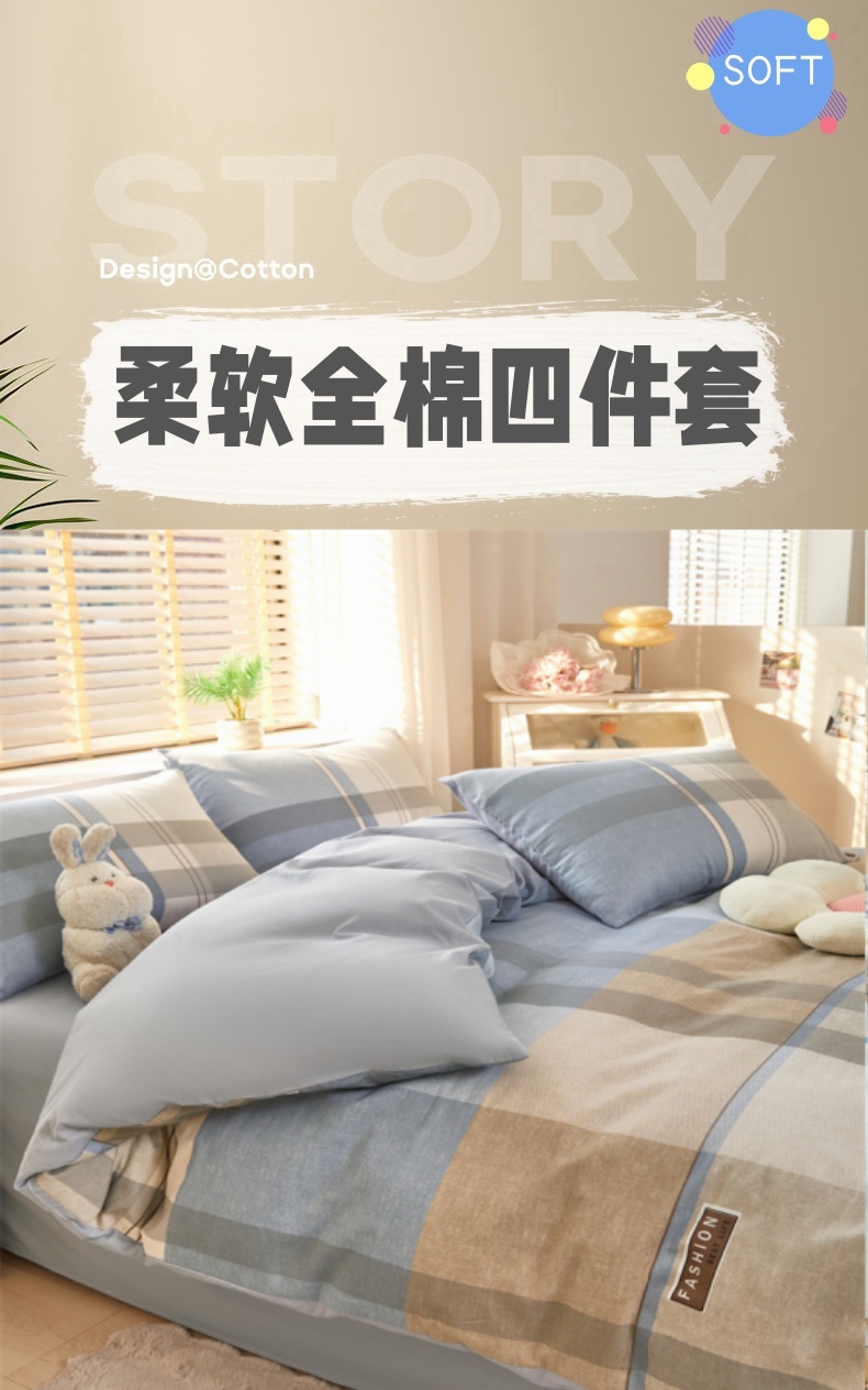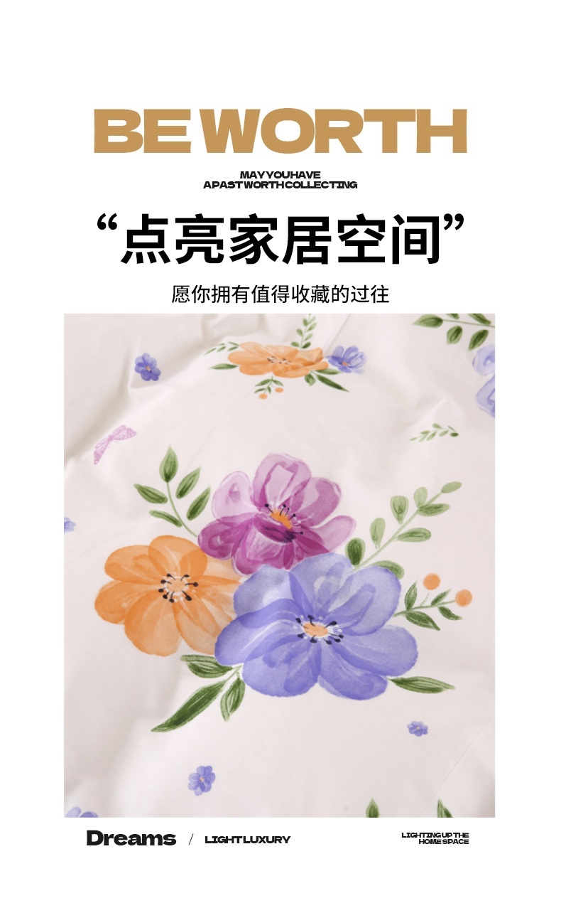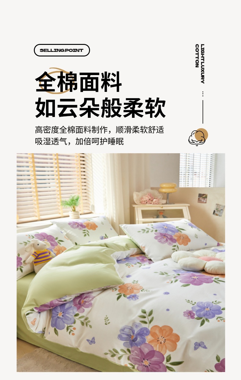 商品名称:(总)梦舒羽2025新款全棉小清新印花加厚宿舍床单床裙款四件套