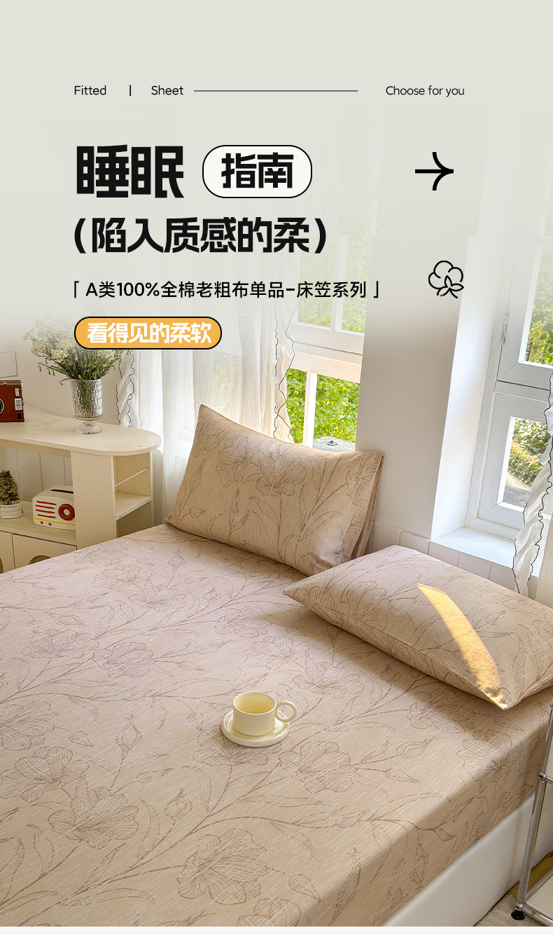 • 91家纺网 家纺一手货源 找家纺 莱登卡奴 新款A类100%全棉老粗布单品系列 月光花园