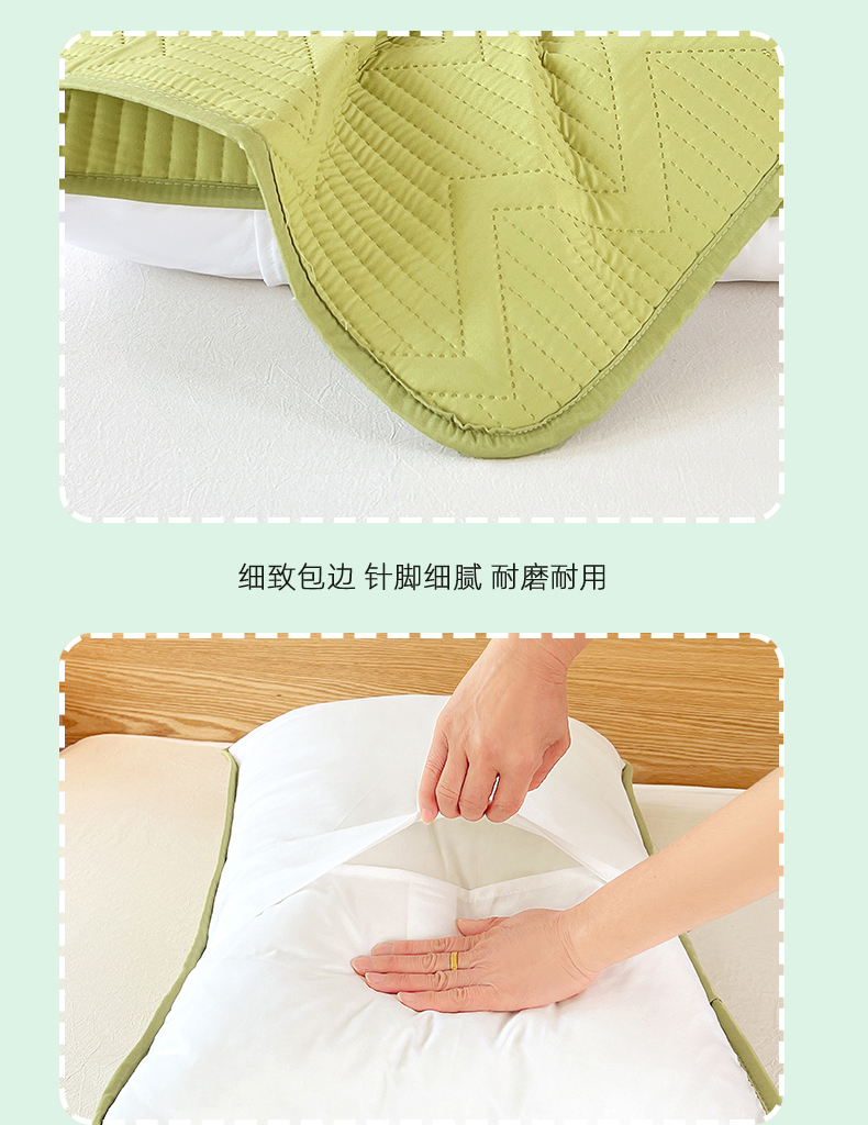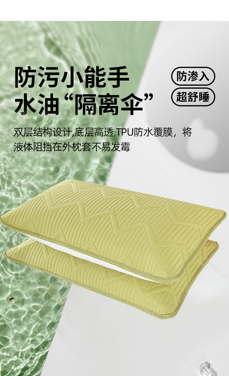 商品名称:曼陀罗 2025新款水波纹防水枕套 水波纹-果绿色