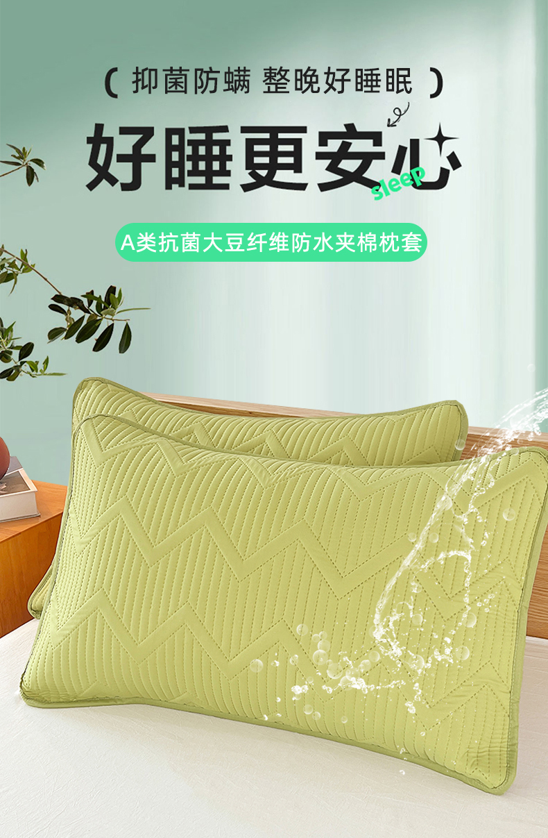 (总)曼陀罗 2025新款A类抗菌大豆纤维防水夹棉枕套 乳胶枕套,本白,宾蓝,草绿,豆绿,粉玉,卡其,深灰,雾蓝
