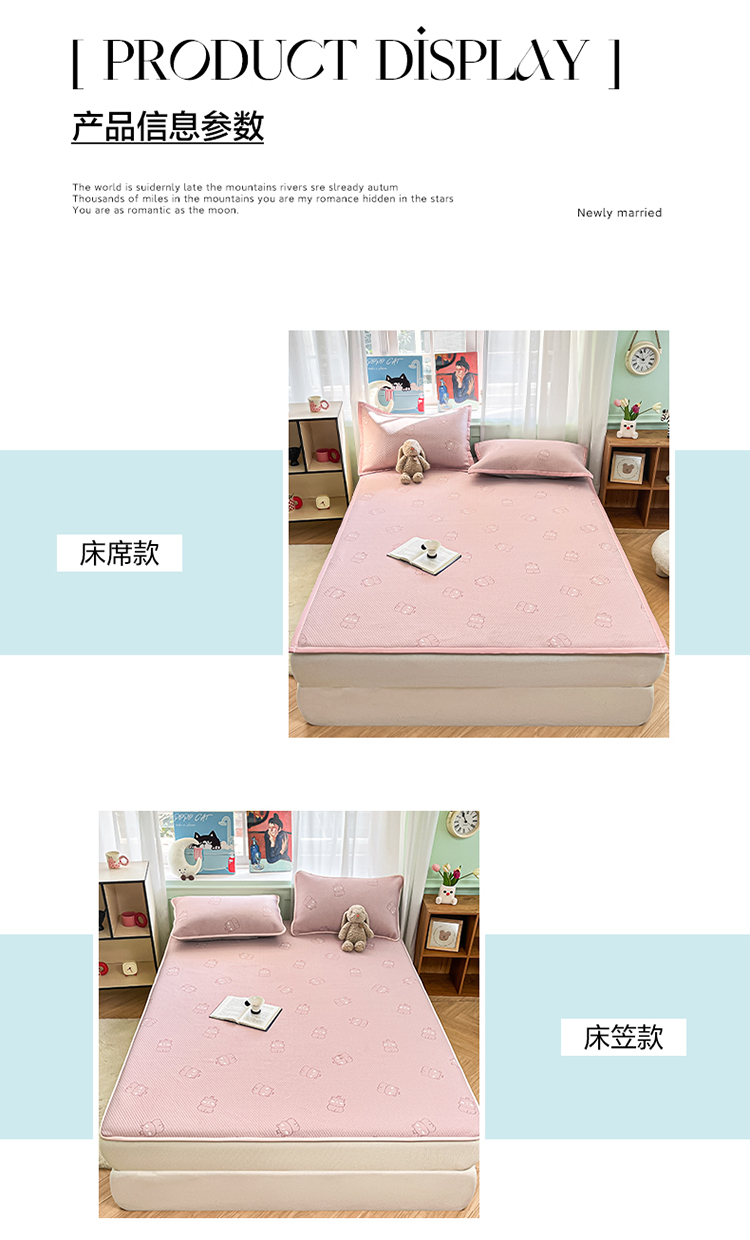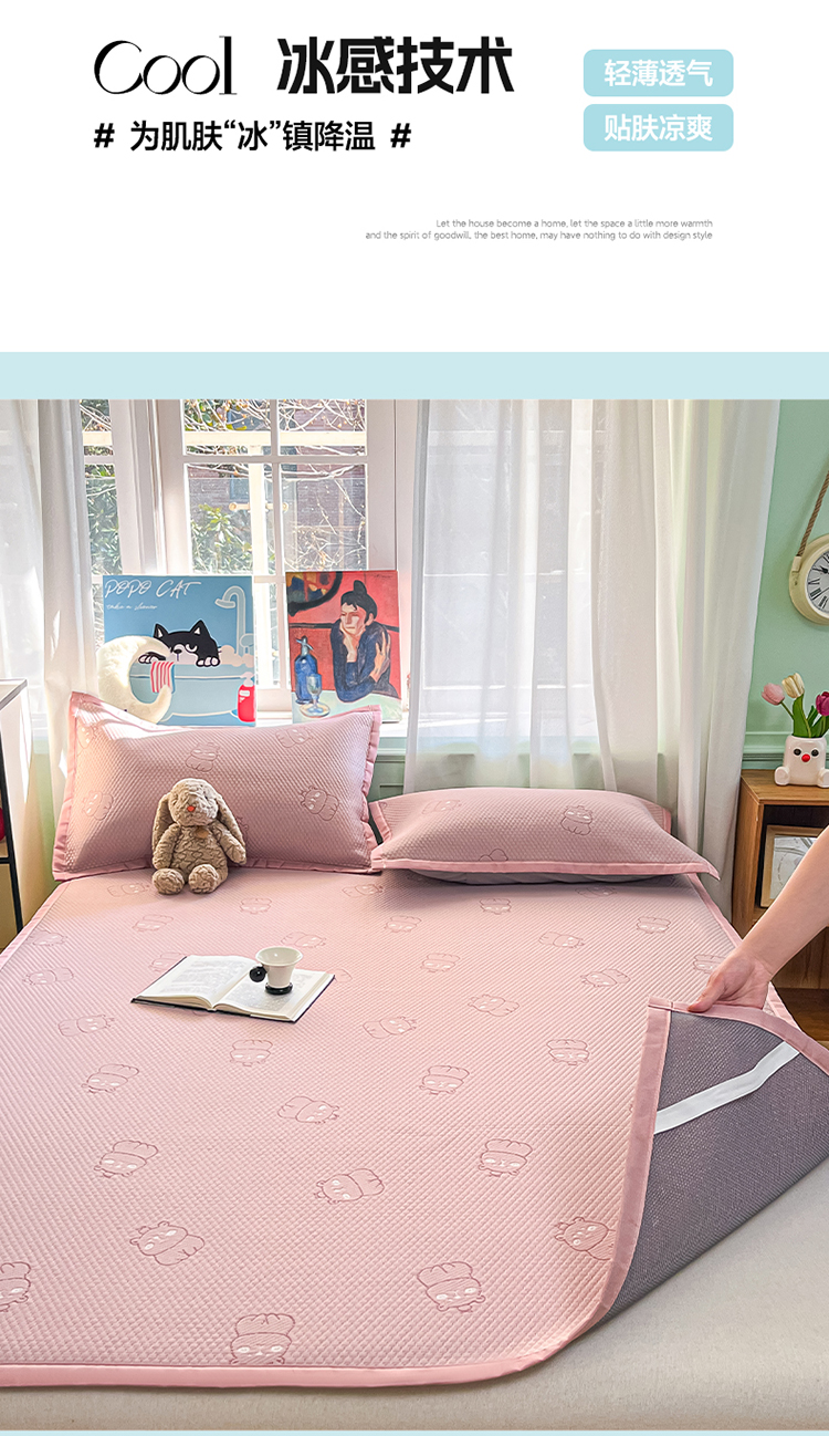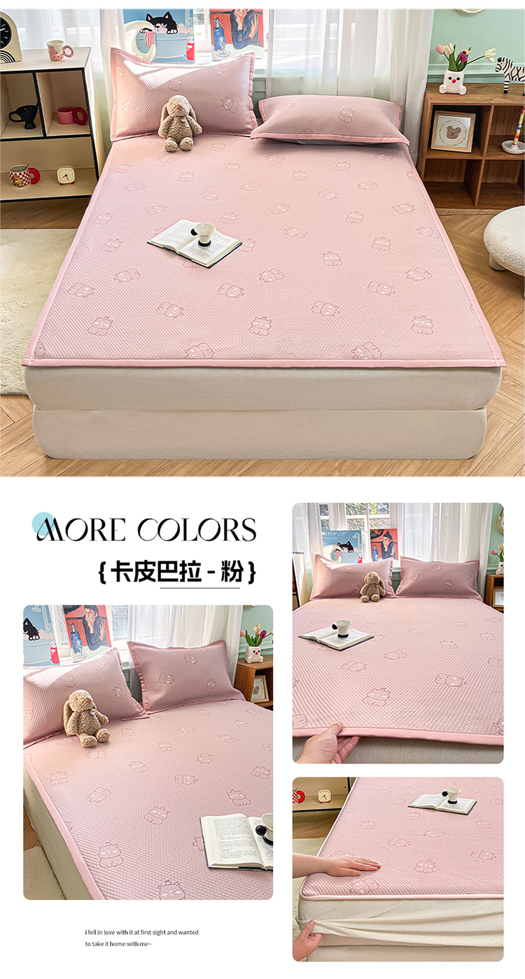 莱米家纺 2025新款冰感凉豆豆凉席床笠款 卡皮巴拉—粉