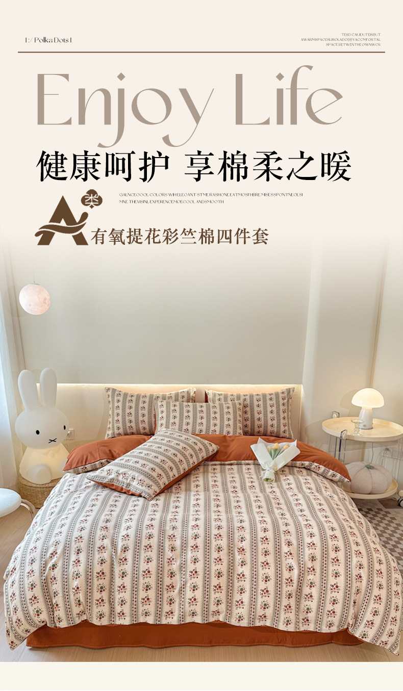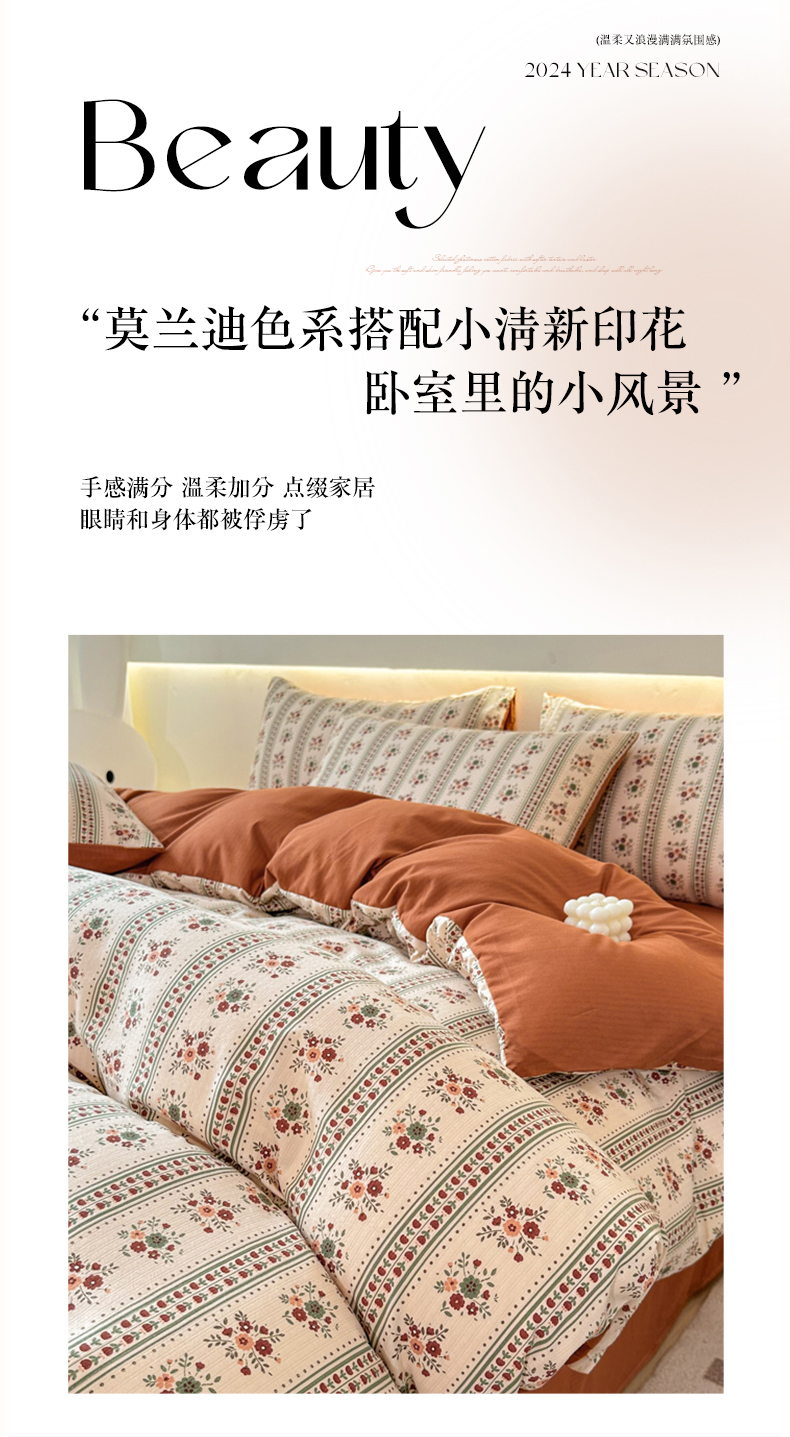 当前位置: 91家纺网 > 商品网购 > 床品套件 > 四件套 > 其它四件套 > 晚爱家纺(原晚安家居) 2025新款A类双层纱有氧提花彩竺棉小竺棉四件套可可庄园