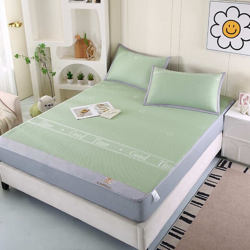 四川牛皮席 2025新款冰藤刺绣款冰丝凉感豆豆席床笠 2