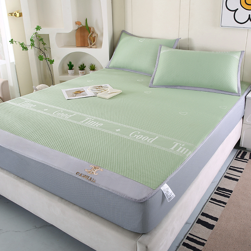 商品名称:四川牛皮席 2025新款冰藤刺绣款冰丝凉感豆豆席床笠 2