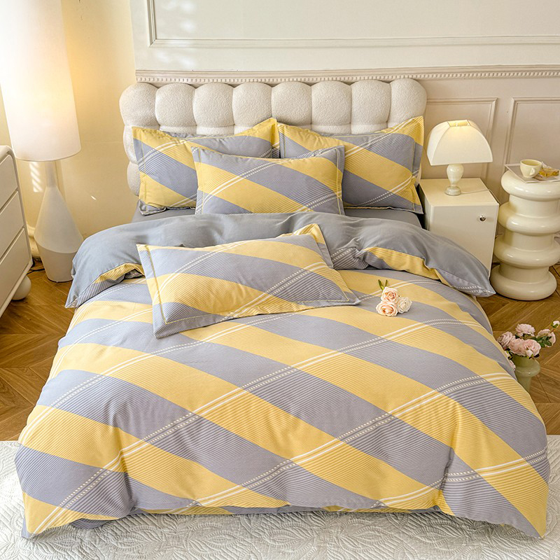幸嘉轩 2025新款全棉秋冬加厚保暖喷气磨毛纯棉印花四件套 薇薇安-黄,薇薇安-黄