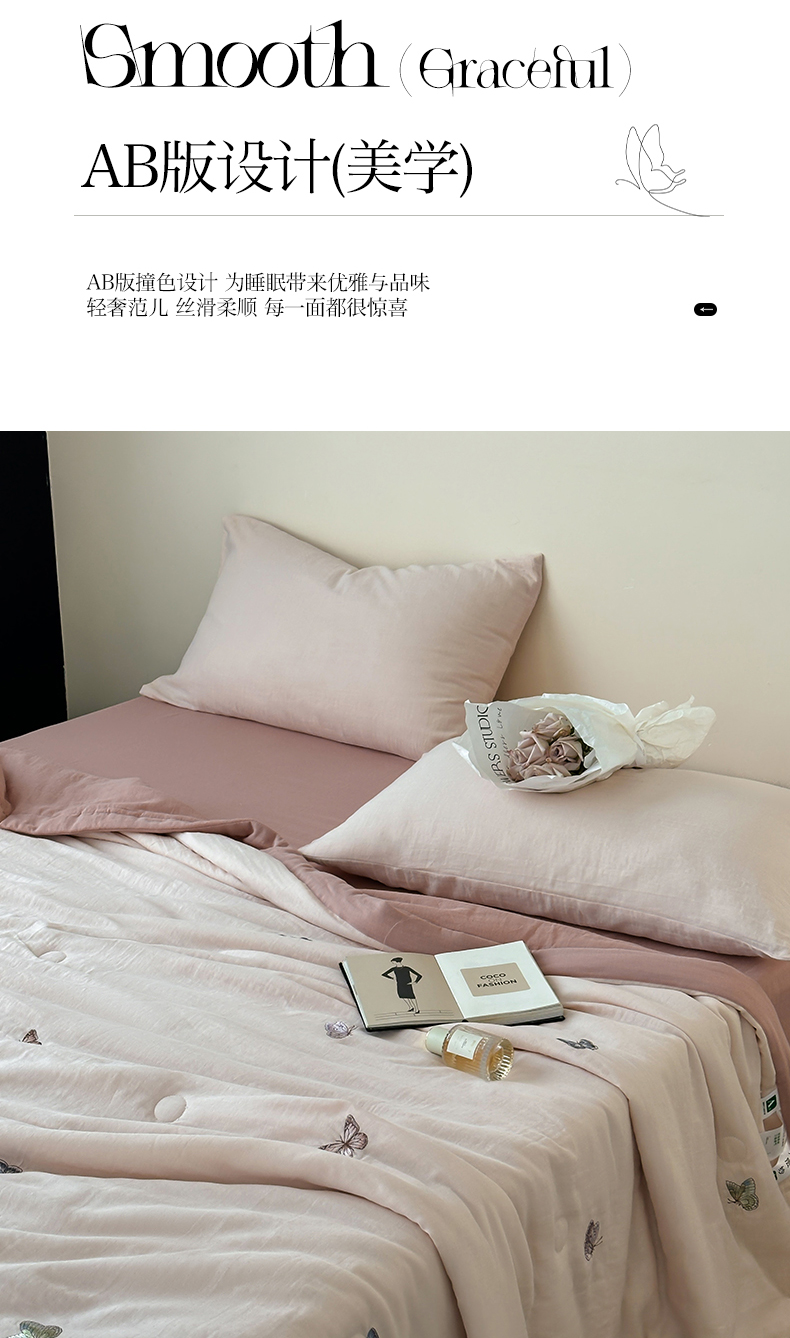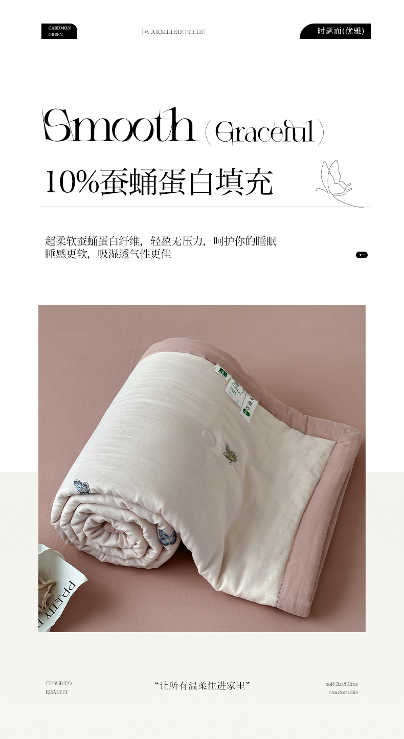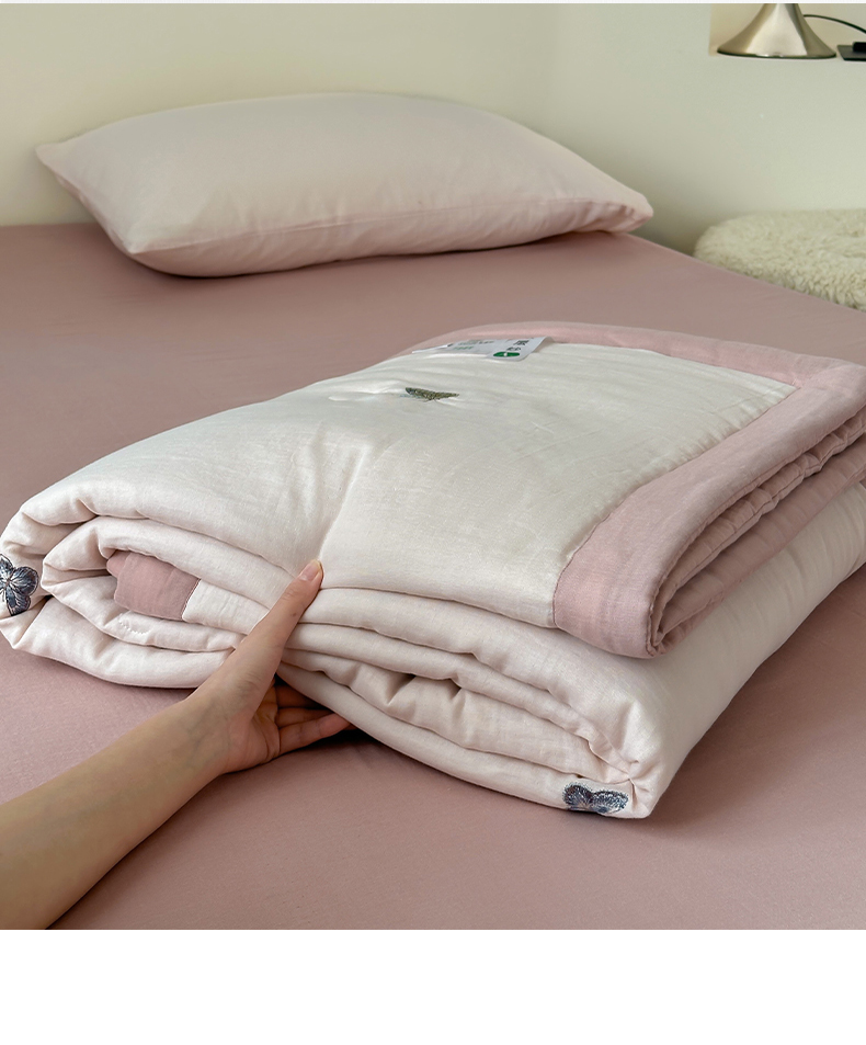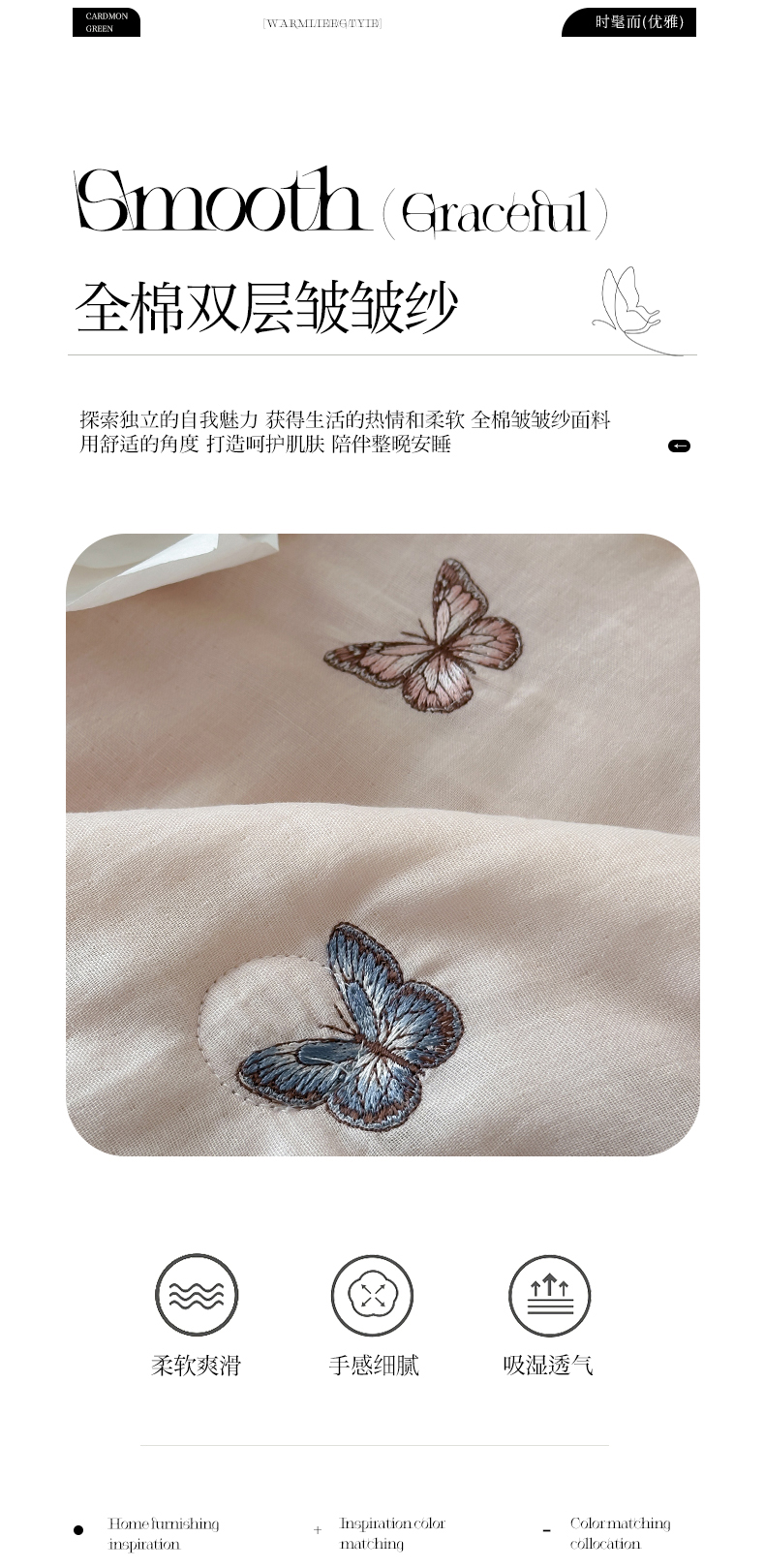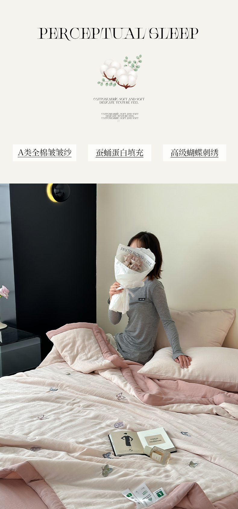 商品名称:(总)一加一 2025新款A类全棉双层皱皱纱蚕蛹蛋白夏被四件套(蝶梦系列)