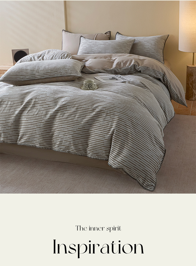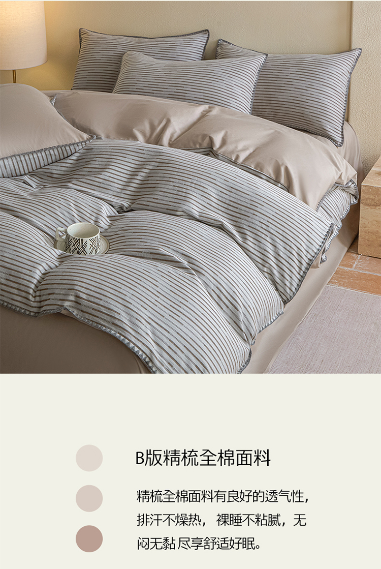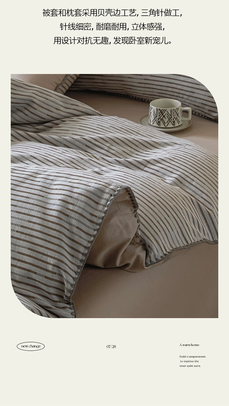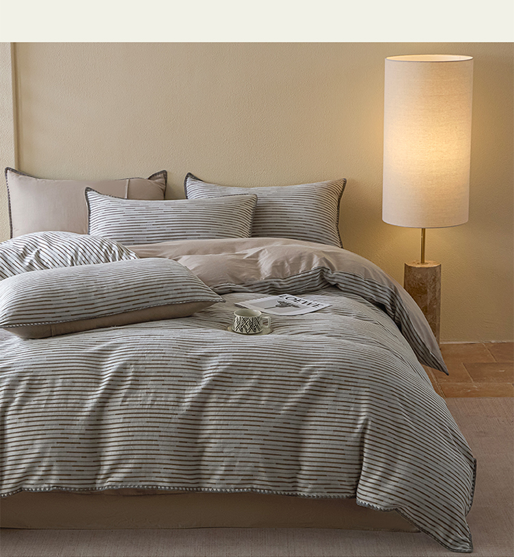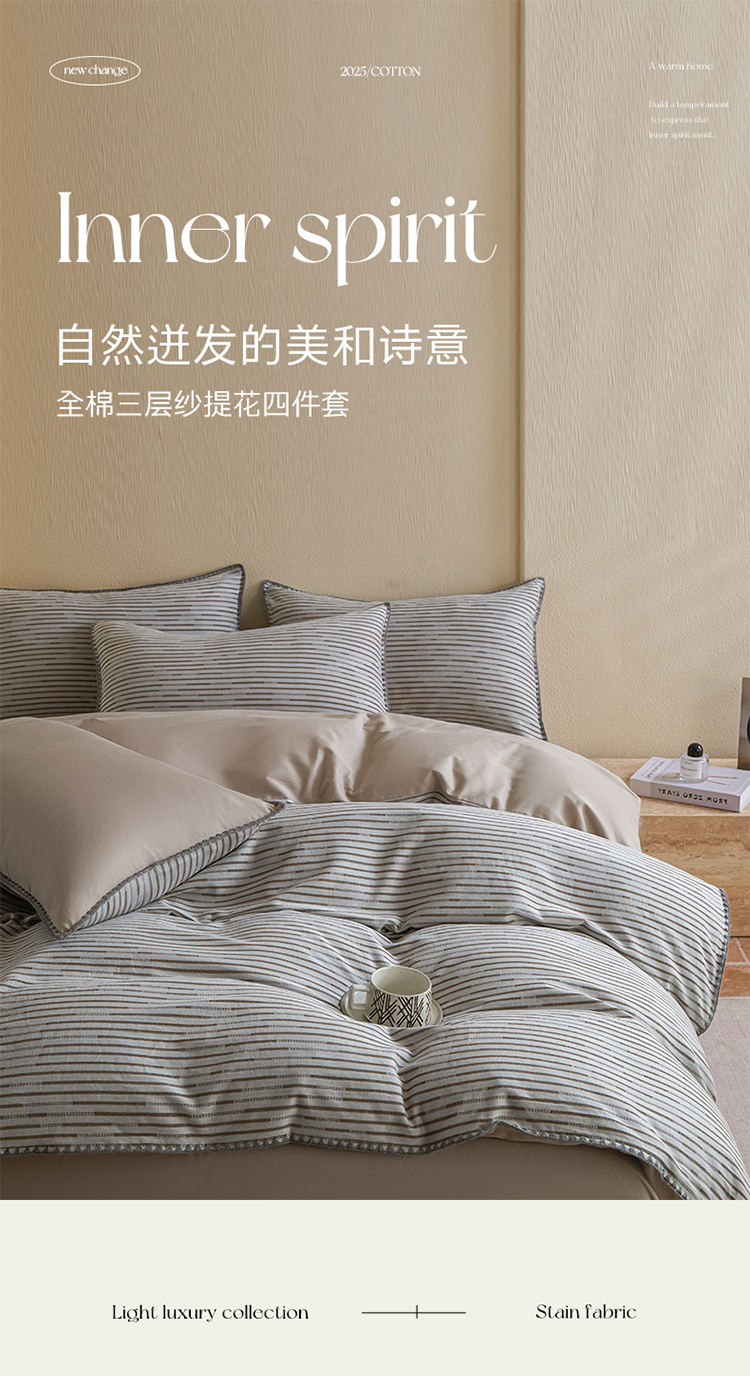 2025新款亲肤全棉三层纱提花四件套 韵律-沉香