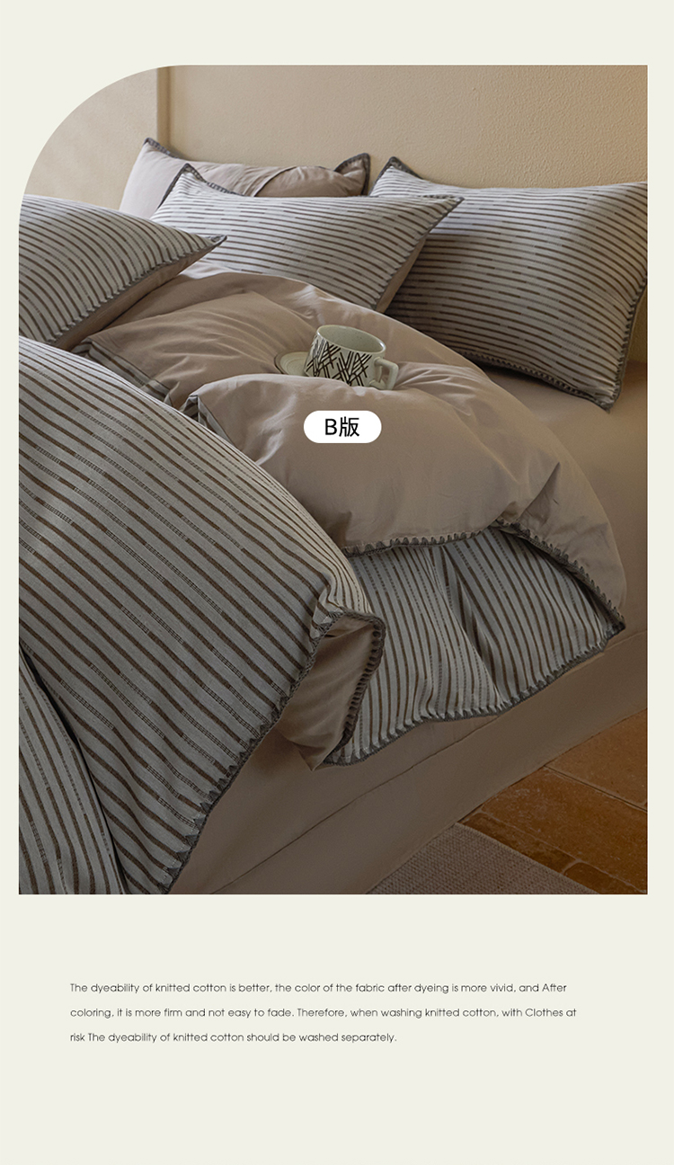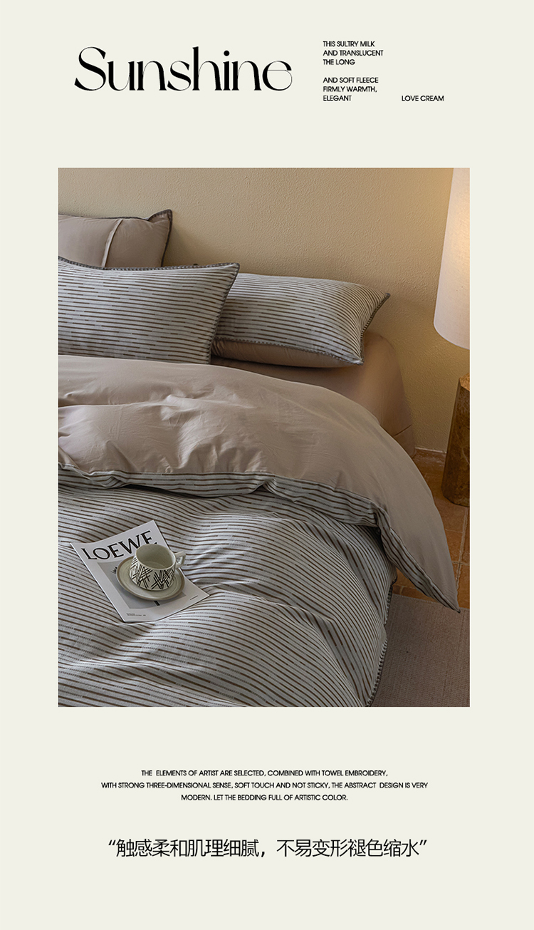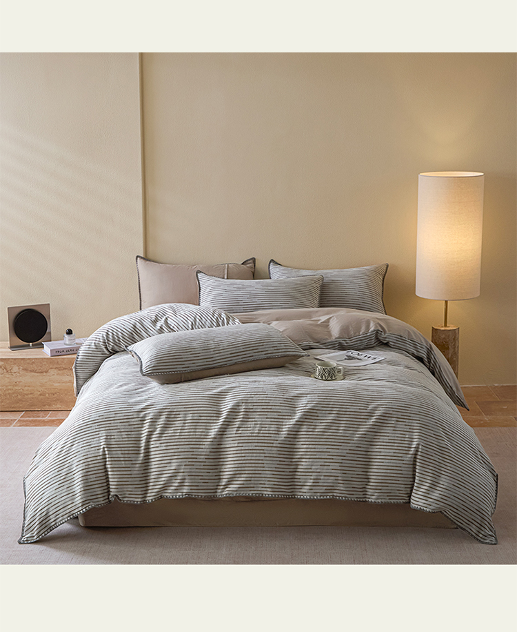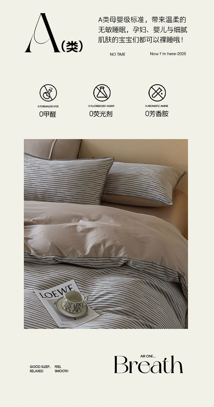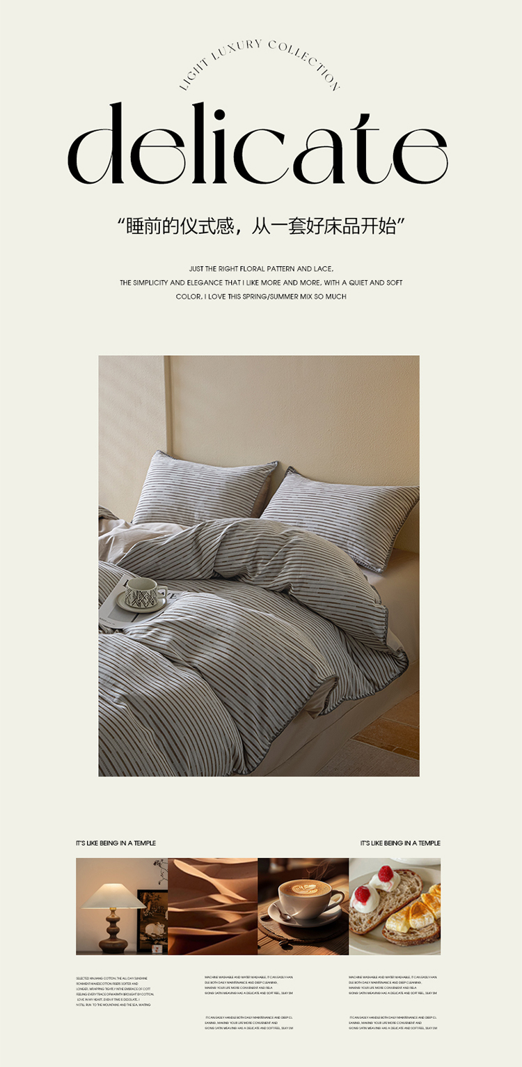 2025新款亲肤全棉三层纱提花四件套 韵律-沉香