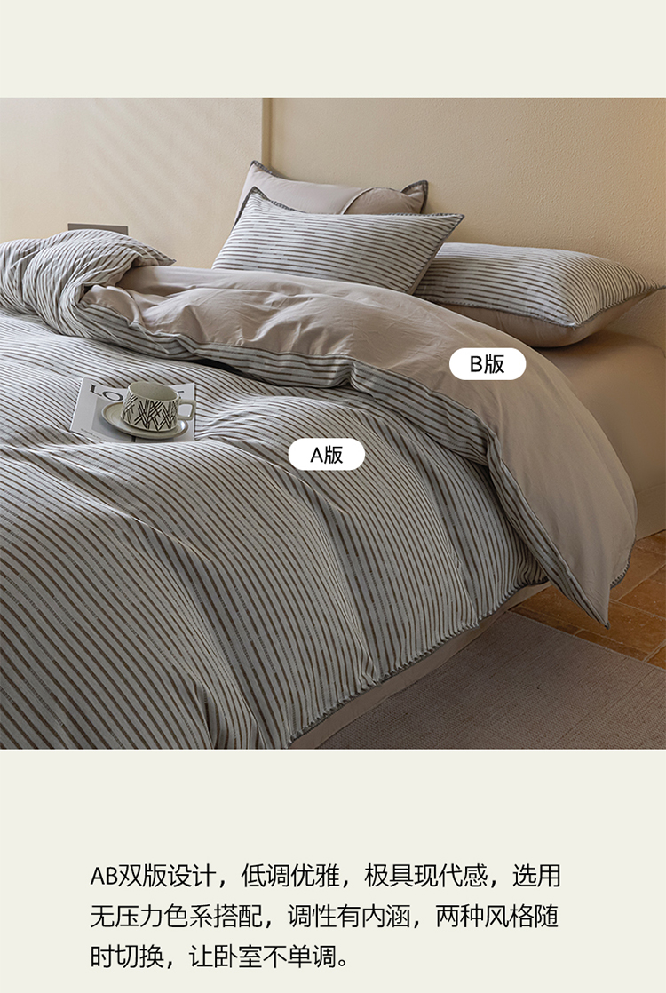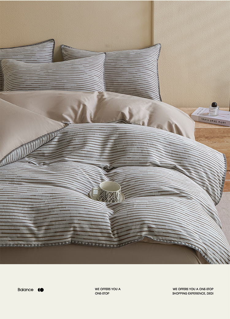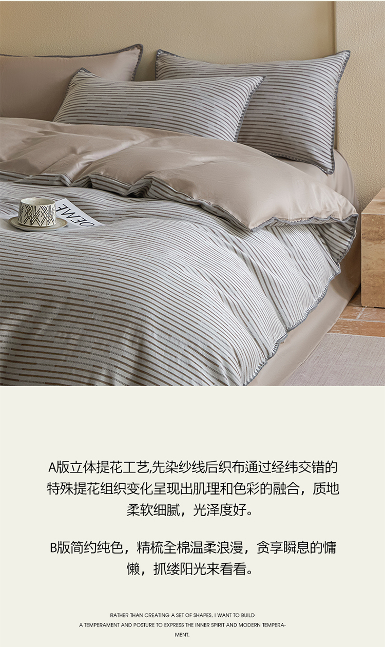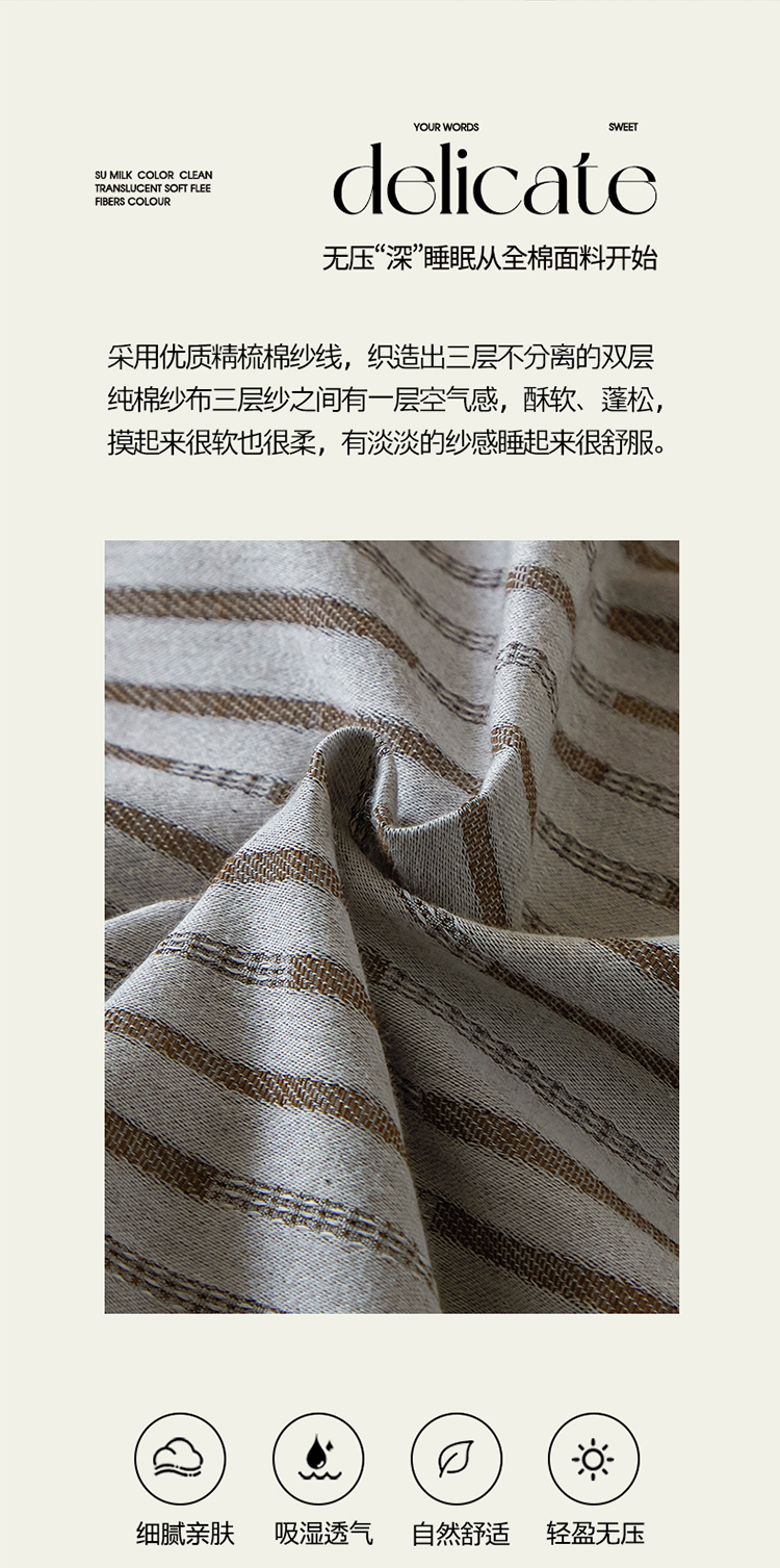 商品名称:2025新款亲肤全棉三层纱提花四件套 韵律-沉香