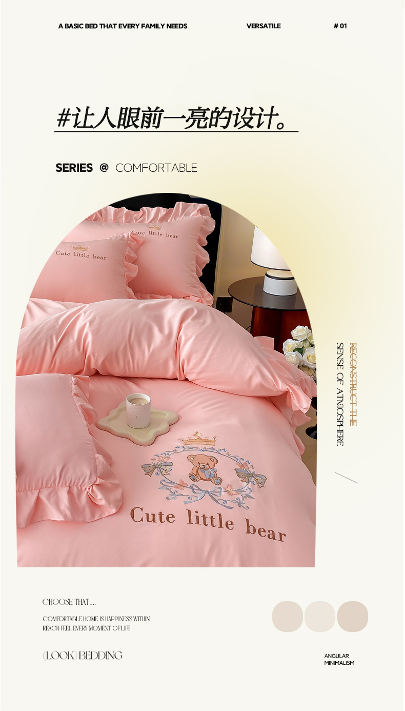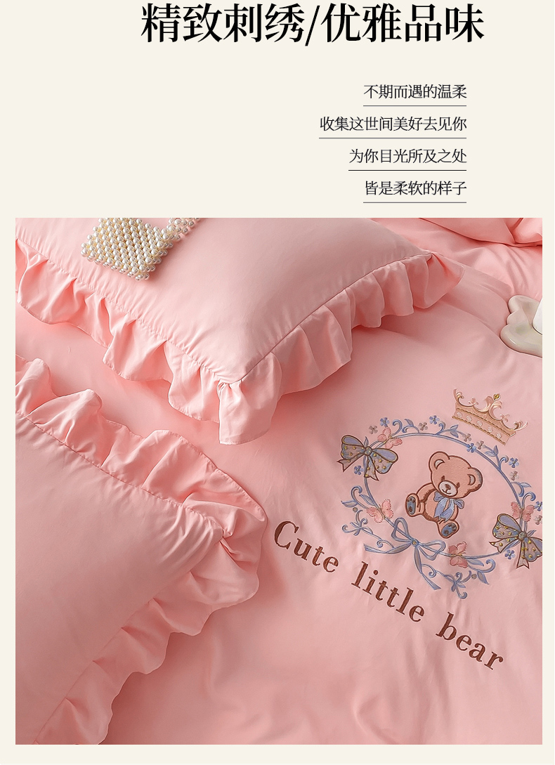 (总)帝菲妮 2025新款法式韩版高克重超柔水洗棉针织棉糯小棉刺绣四件套,熊宝-宾利兰,熊宝-奶白灰,熊宝-奶白卡其,熊宝-浅紫,熊宝-水绿,熊宝-珍珠粉