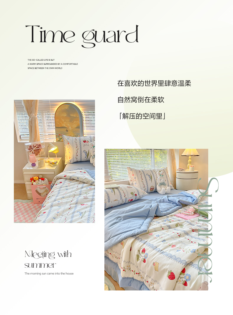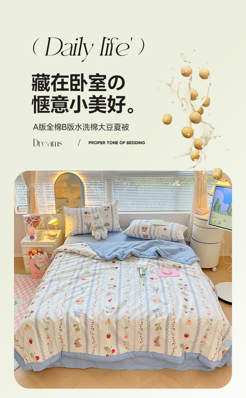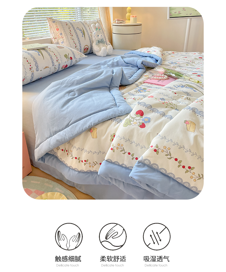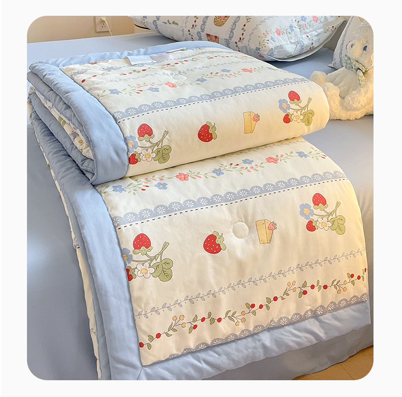 当前位置: 91家纺网 > 商品网购 > 床品套件 > 四件套 > 夏被四件套 > 一加一 2025新款A棉B水洗棉大豆夏被四件套 草莓兔