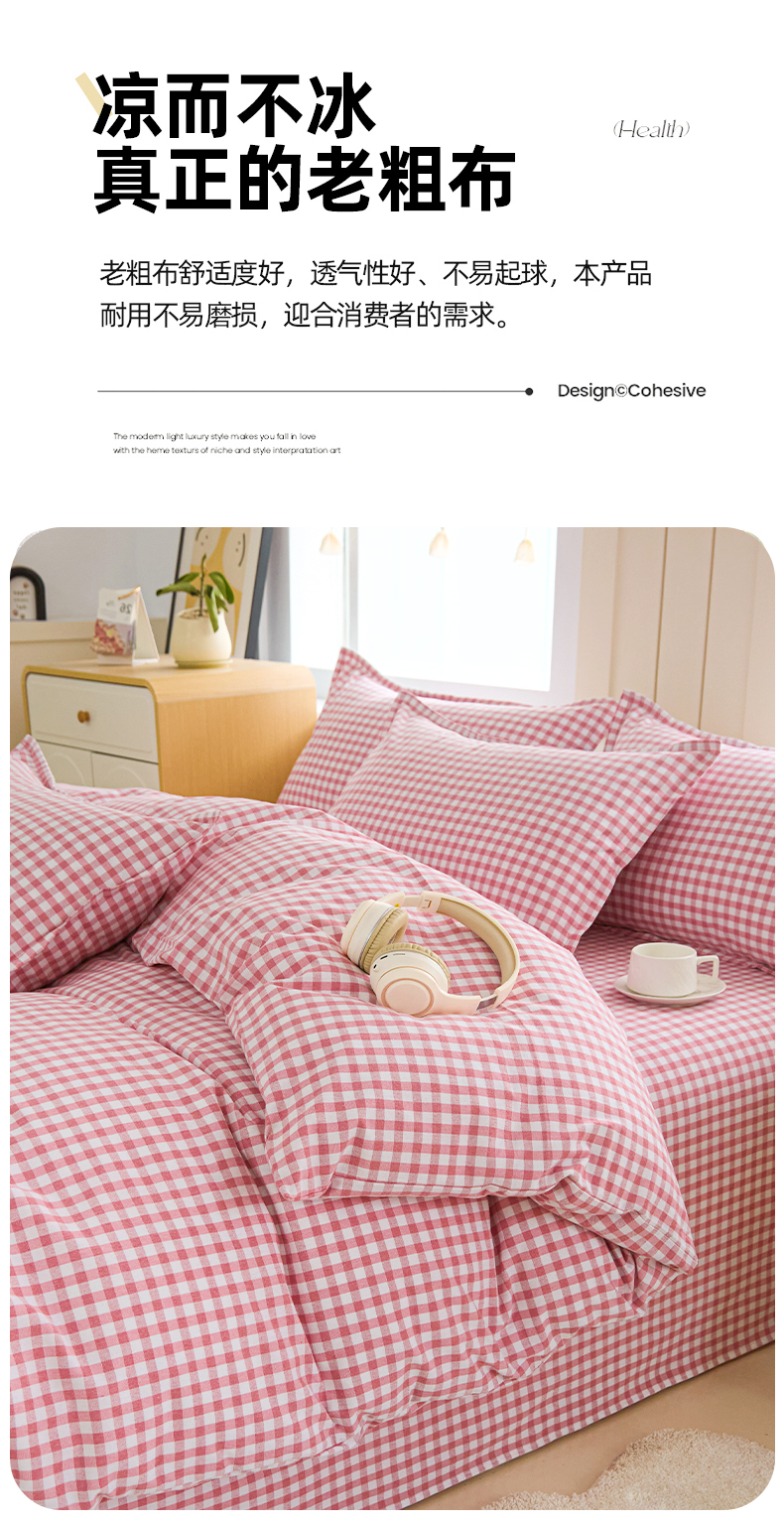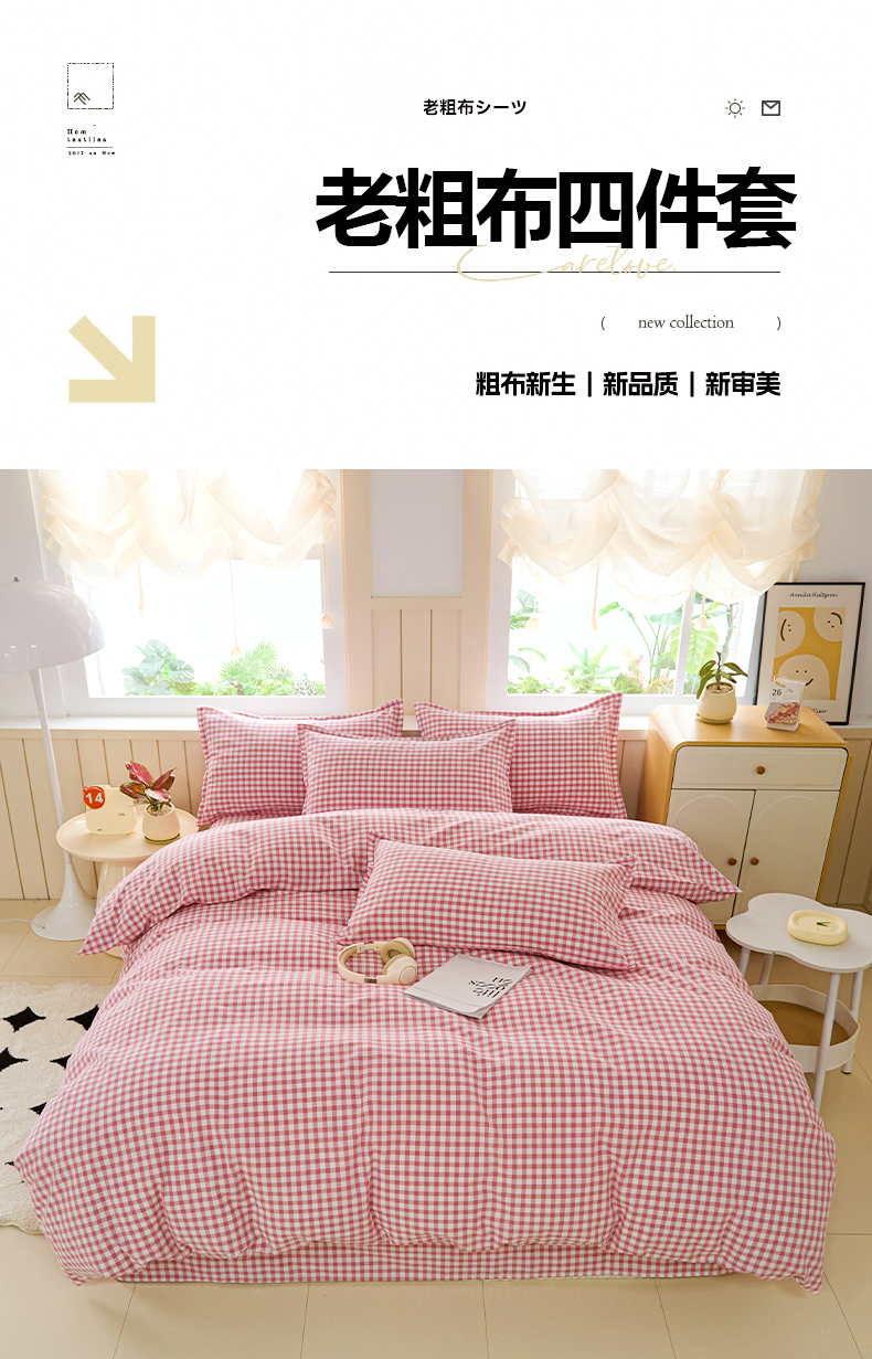 (总)2025新款全棉色织老粗布四件套,北柒,迟暮,春燕,错落,淡墨,粉恋,红尘,花格,咖格,绿条,棋盘,浅陌,如夏,森眸,言格,樱络