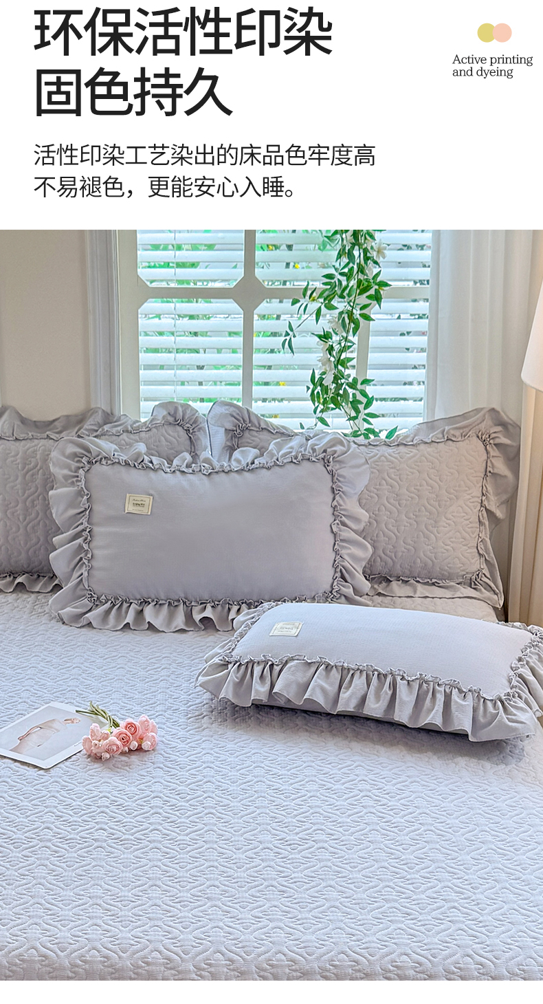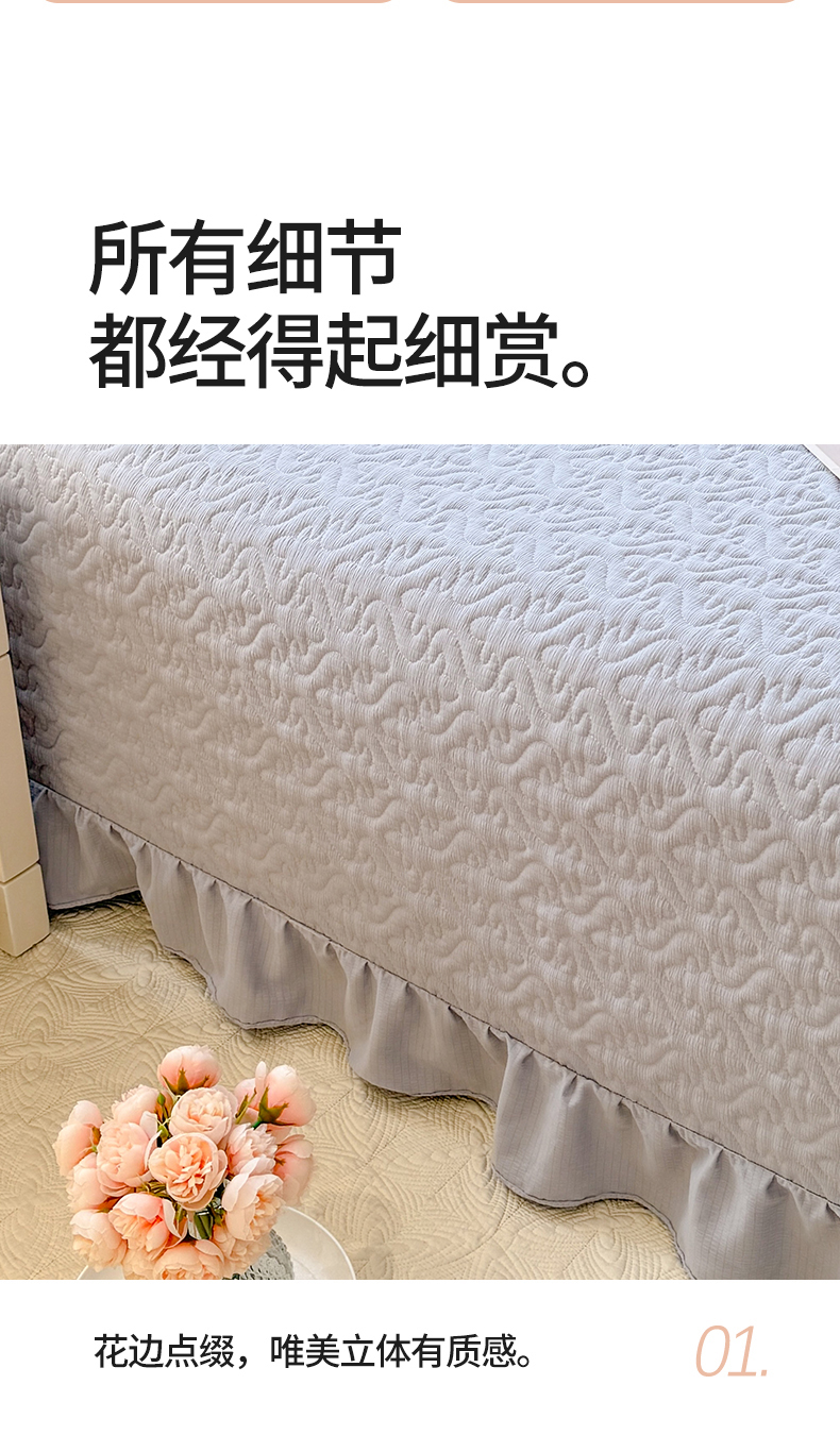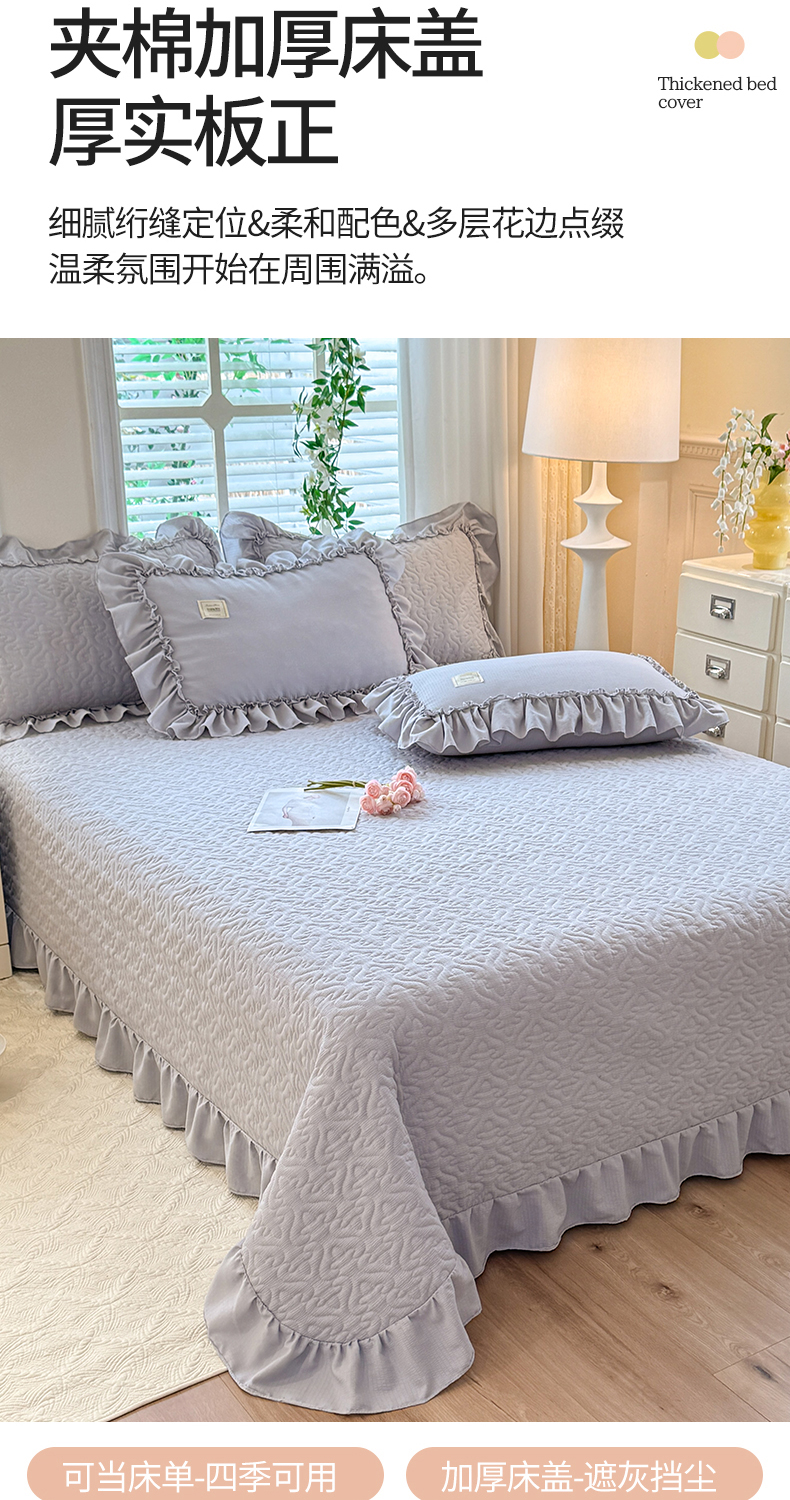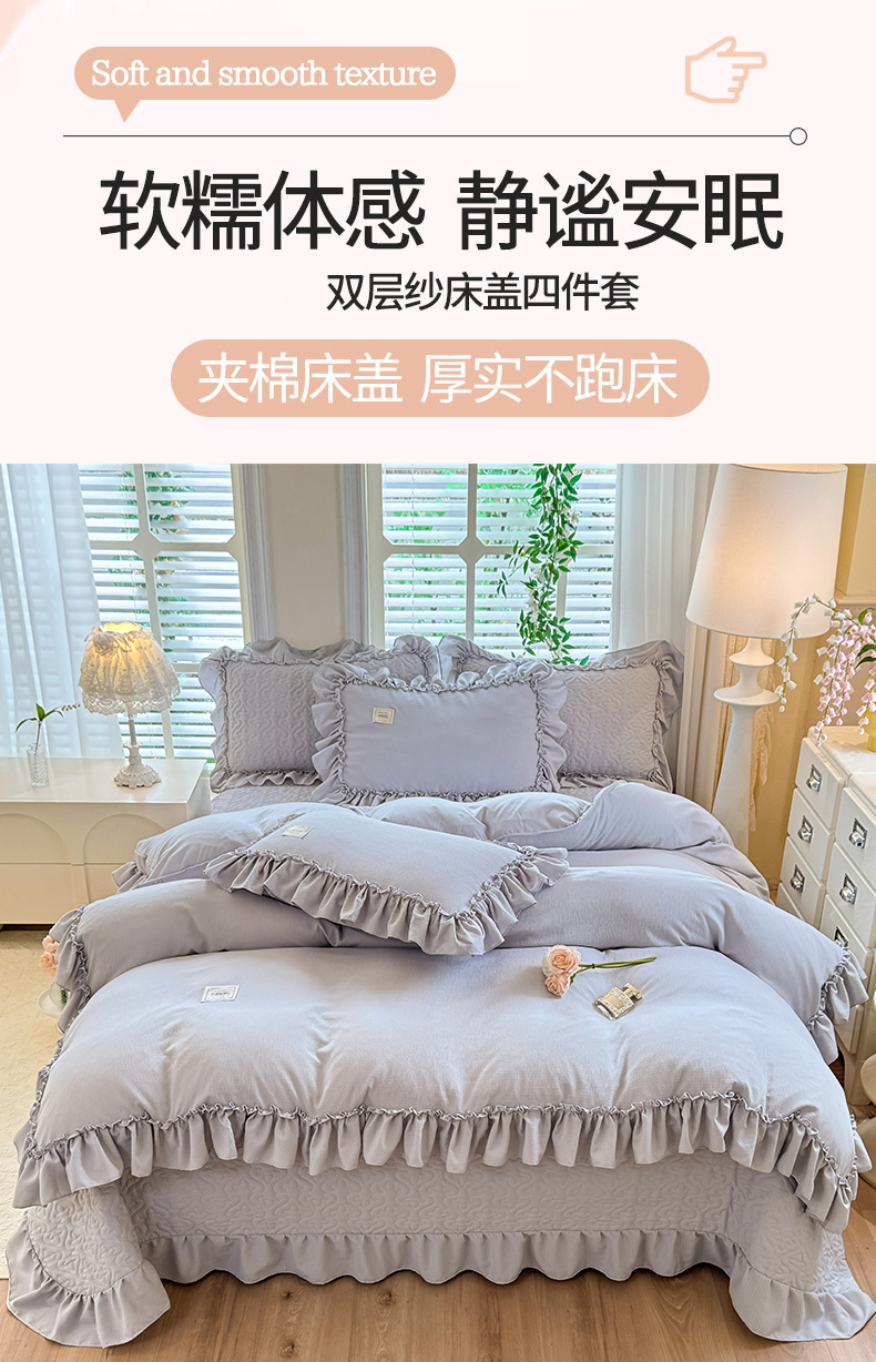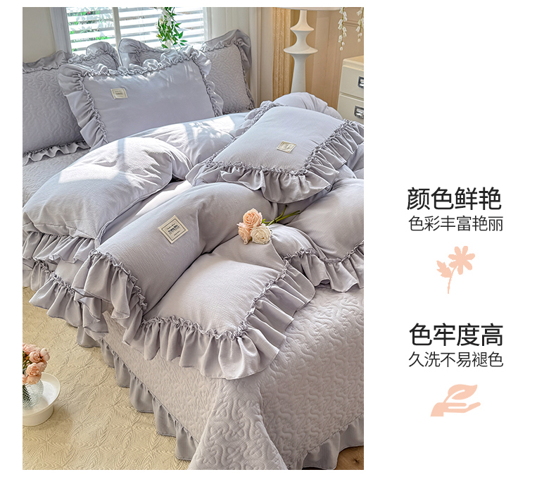 (总)花香四季家纺 2025新款夹棉绗缝床裙单件三件套法式四件套套件蕾丝公主风,灰色,绿色,米色,玉色,紫色