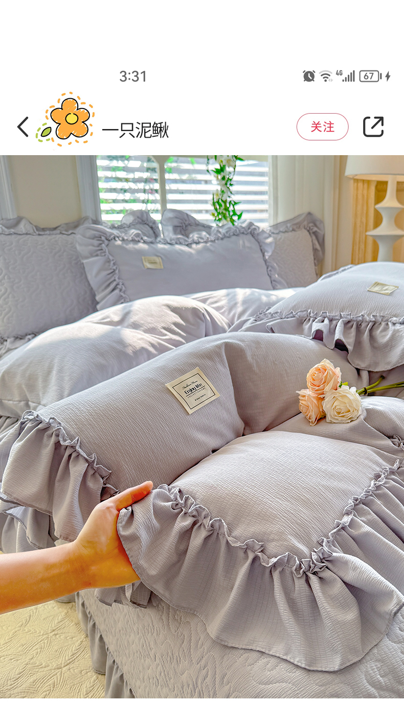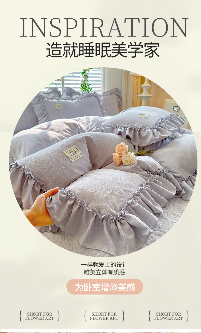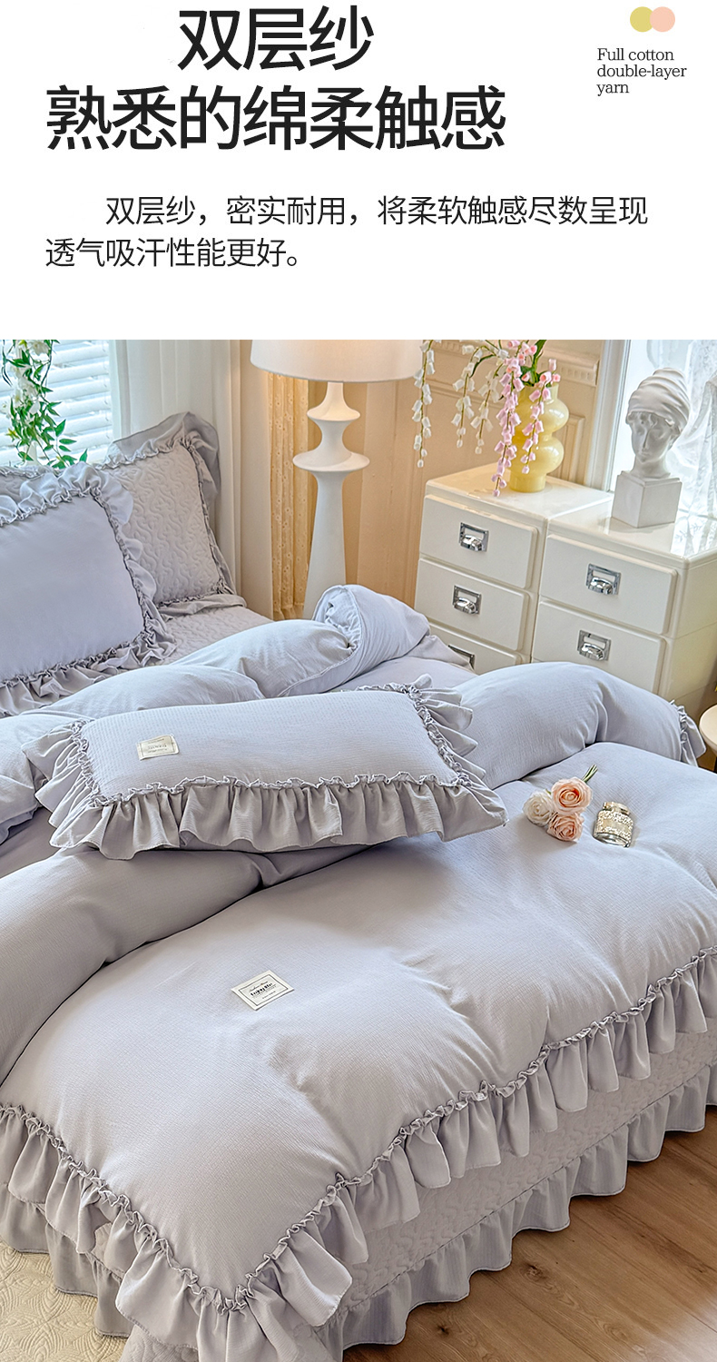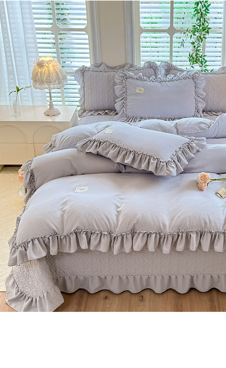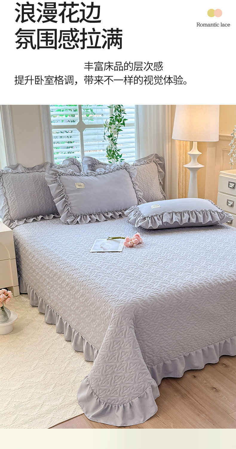 (总)花香四季家纺 2025新款夹棉绗缝床裙单件三件套法式四件套套件蕾丝公主风,灰色,绿色,米色,玉色,紫色
