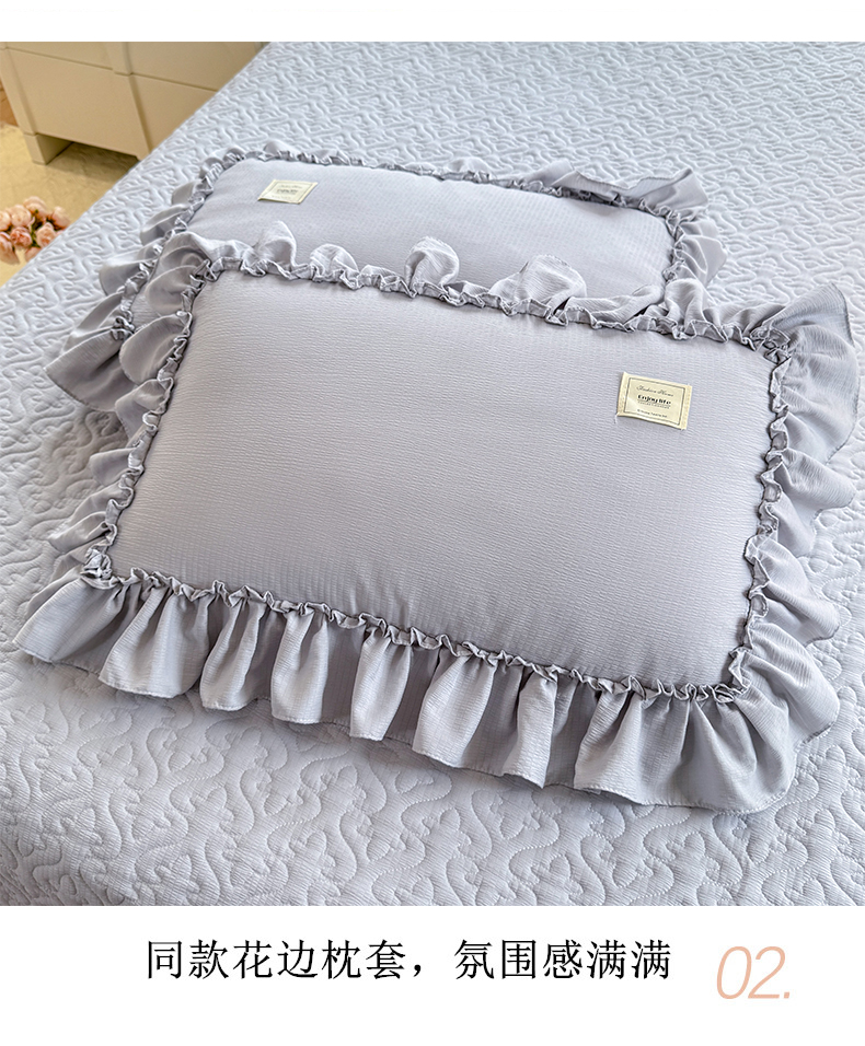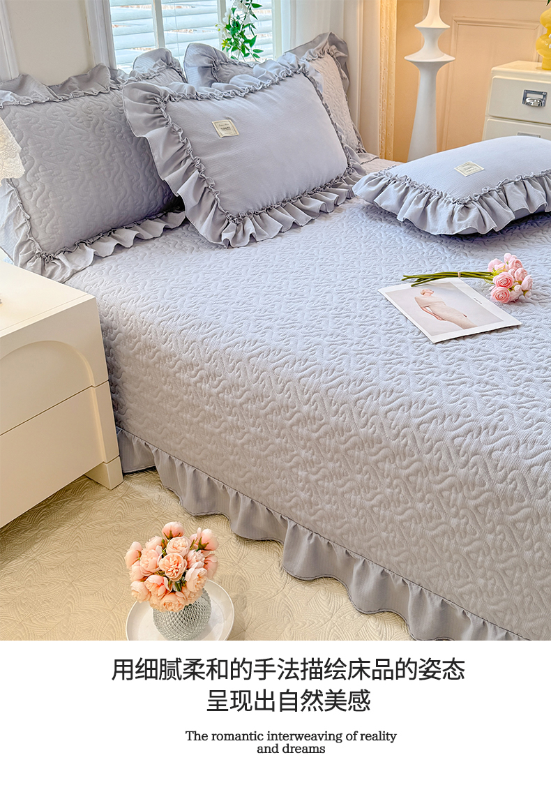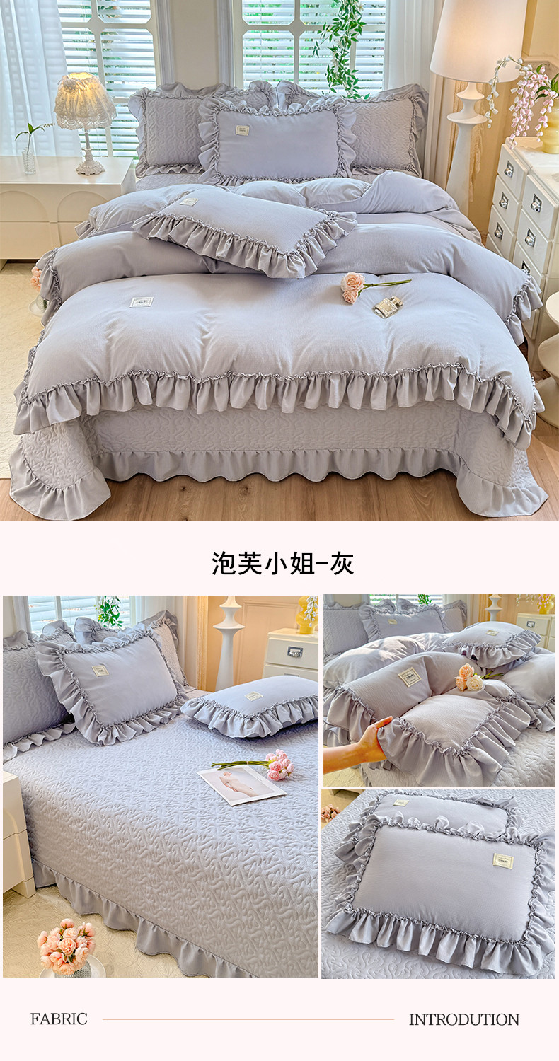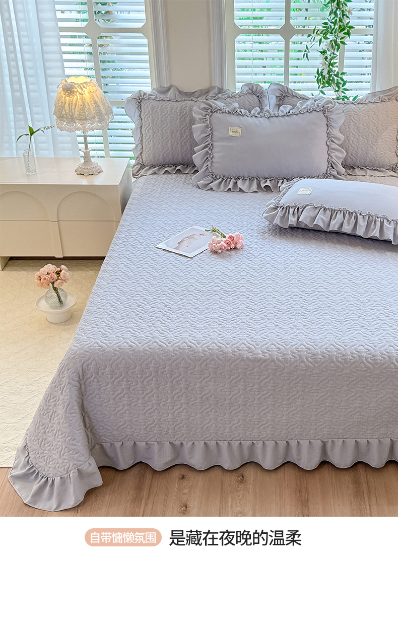 商品名称:花香四季家纺 2025新款泡芙小姐双层纱华夫格柔棉夹棉绗缝床盖单件三件四件套 泡芙小姐-灰