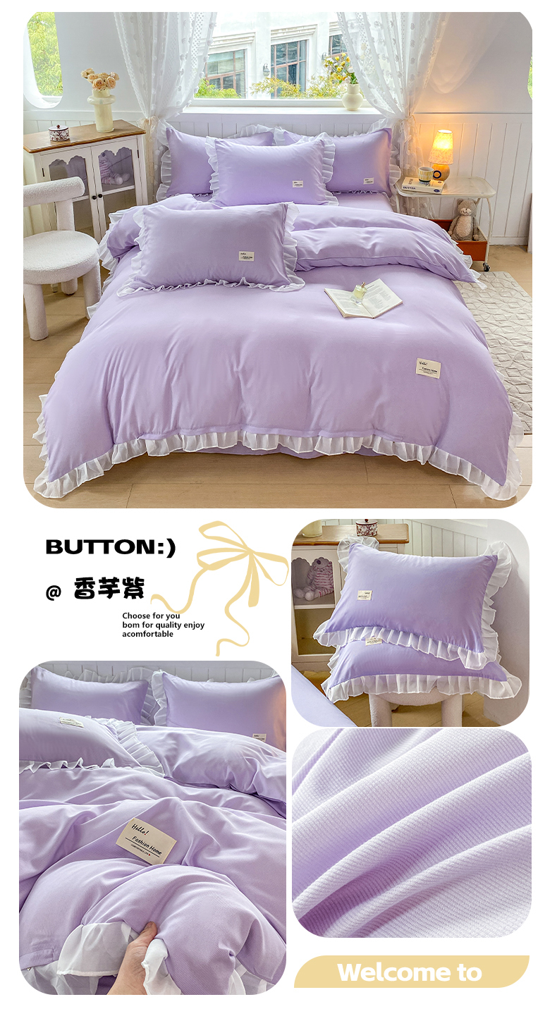 红日子纺织品 2025新款韩版华夫格水洗棉四件套 香芋紫