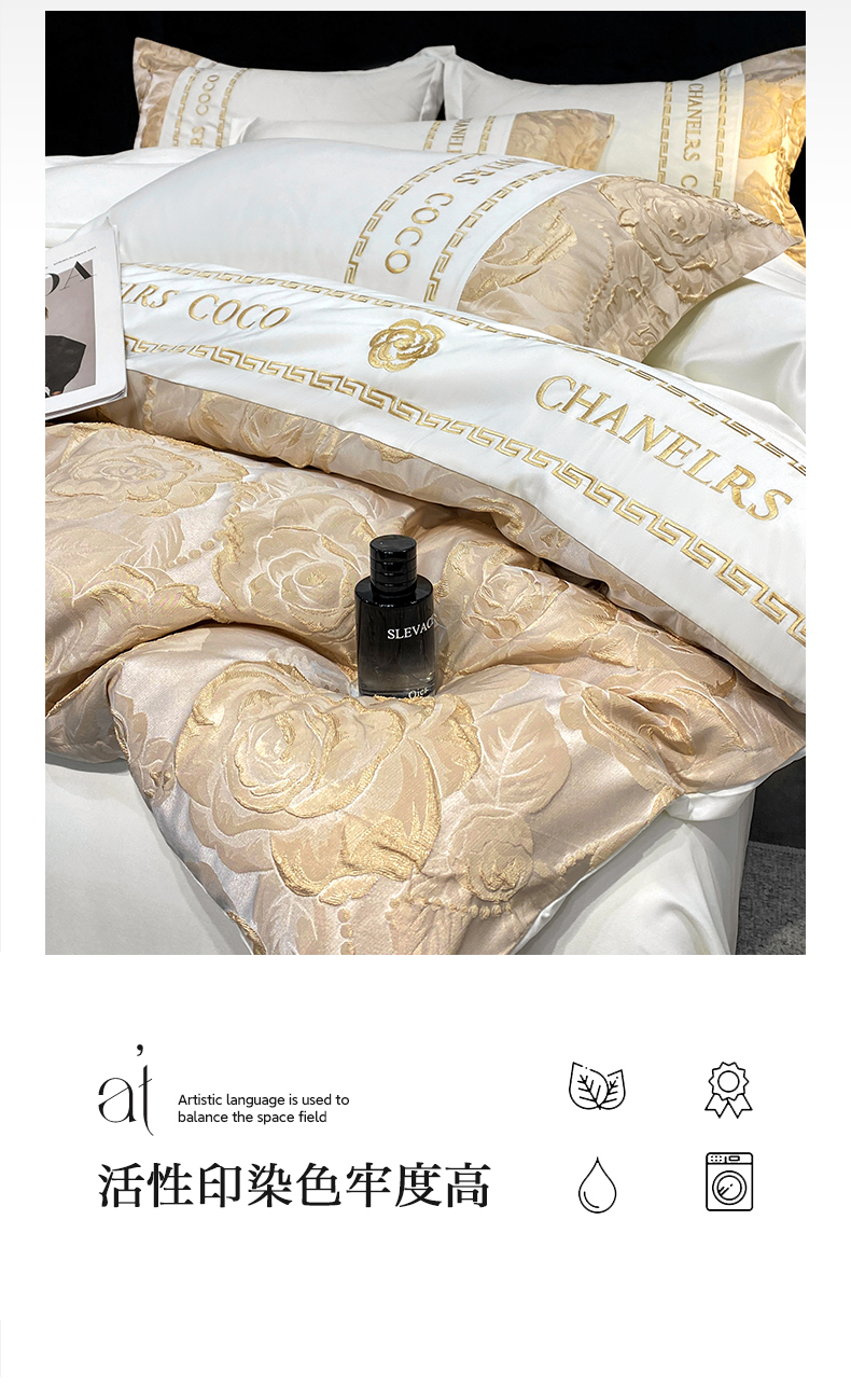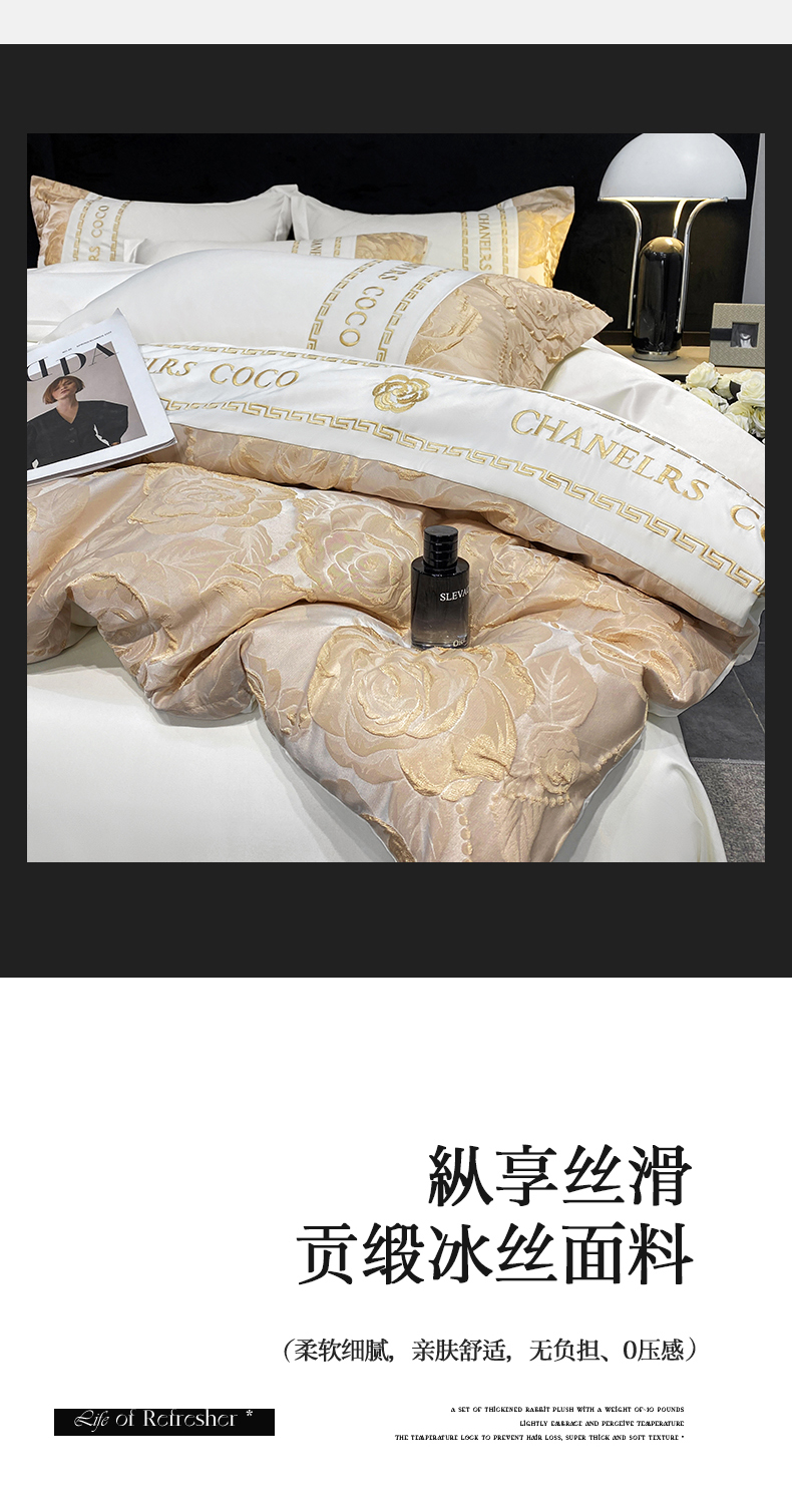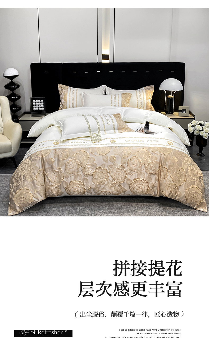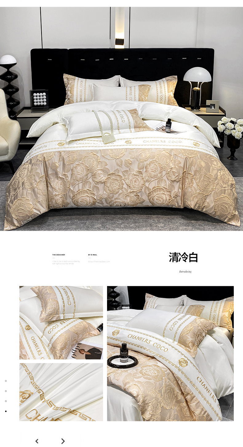 当前位置: 91家纺网 > 商品网购 > 床品套件 > 四件套 > 提花四件套 > 富宁2025新款浮雕金丝提花刺绣四件套-恋花 清冷白
