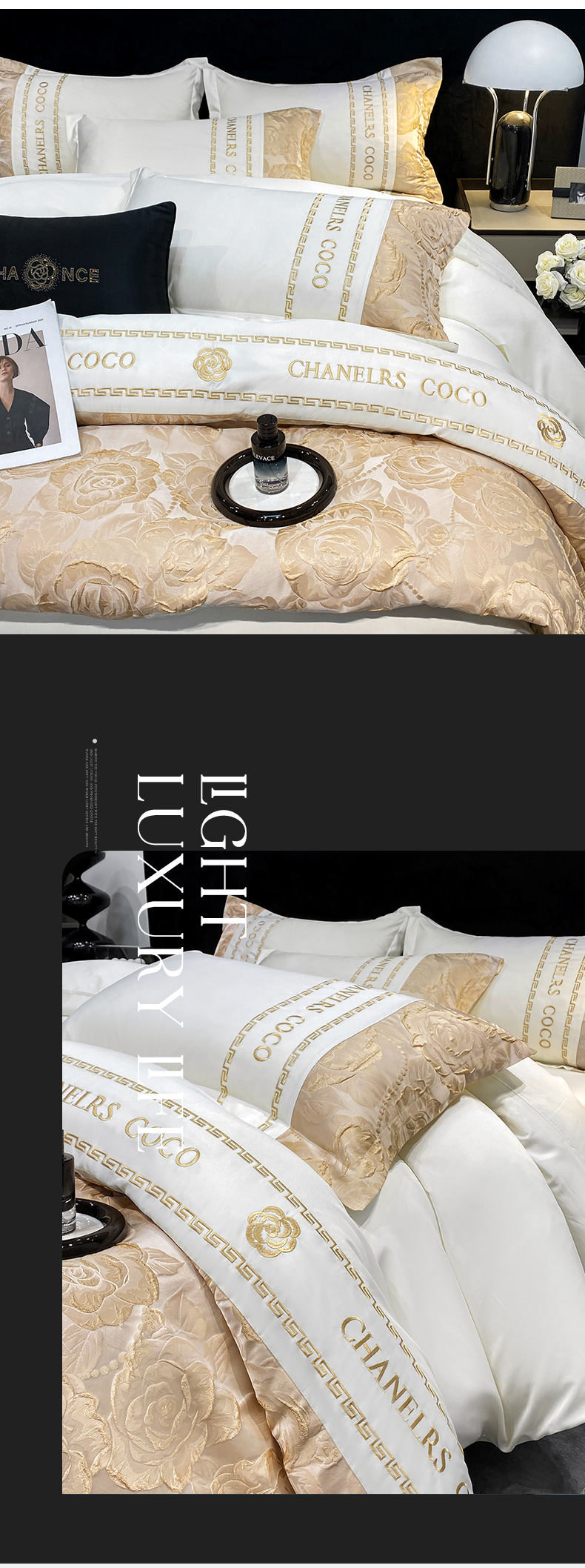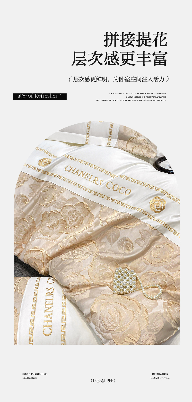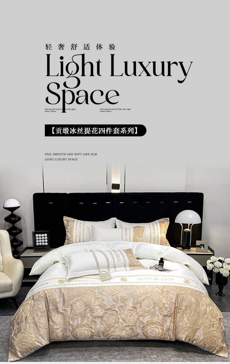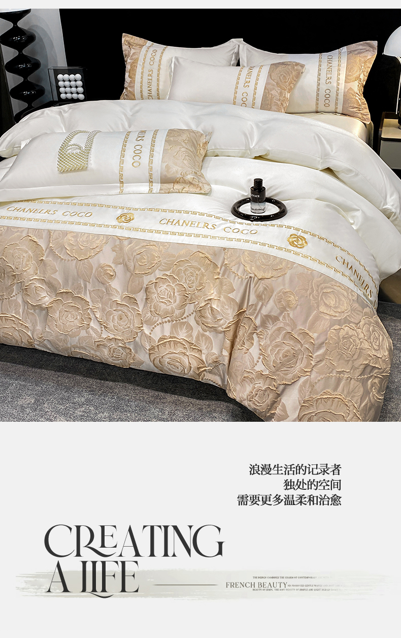 当前位置: 91家纺网 > 商品网购 > 床品套件 > 四件套 > 提花四件套 > 富宁2025新款浮雕金丝提花刺绣四件套-恋花 清冷白