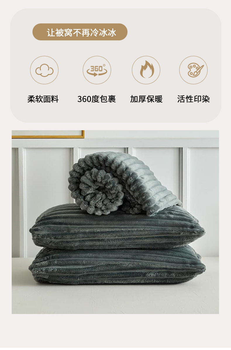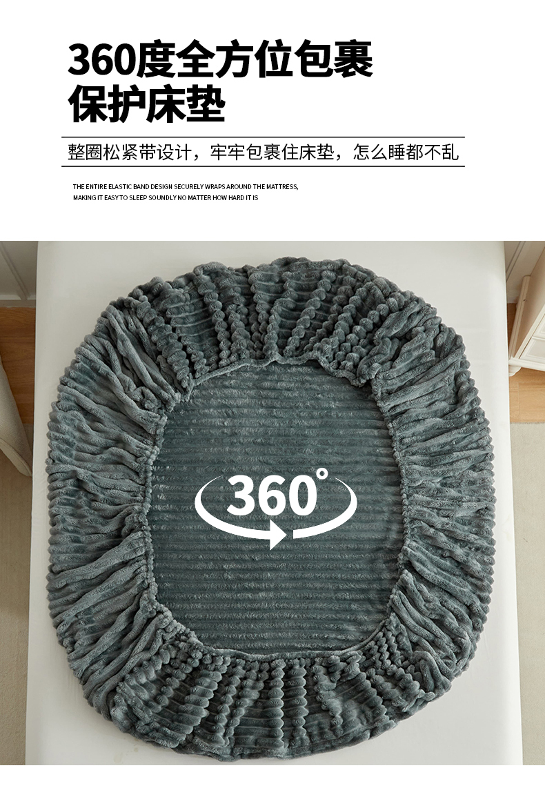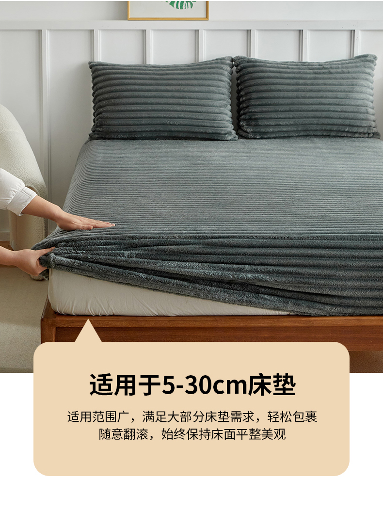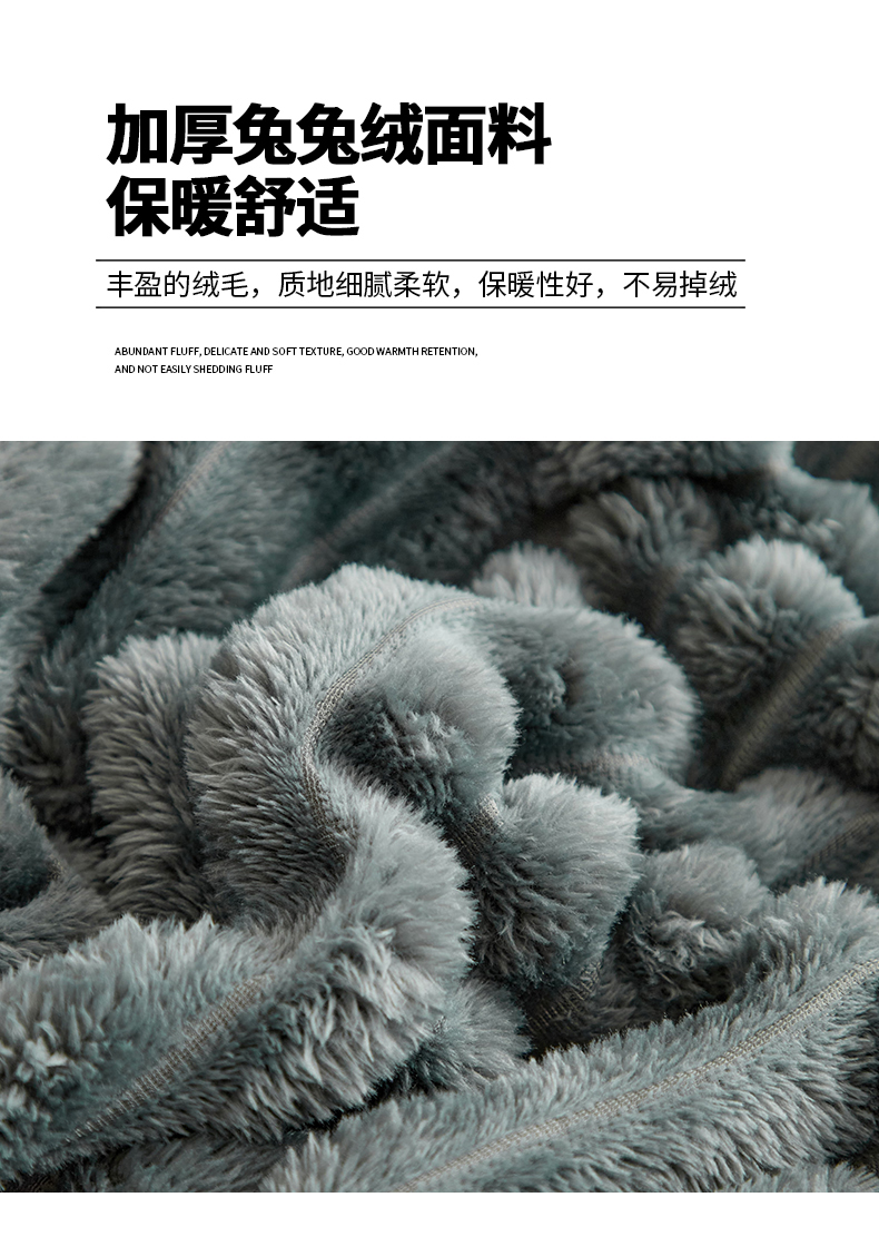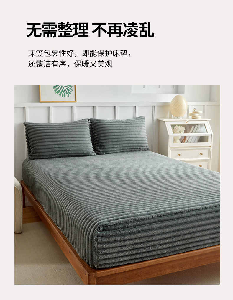 商品名称:枋梢家纺 2025新款爆款仿兔毛抽条床笠三件套跨境电商外贸欧美尺寸双面绒兔兔绒三件套 深灰