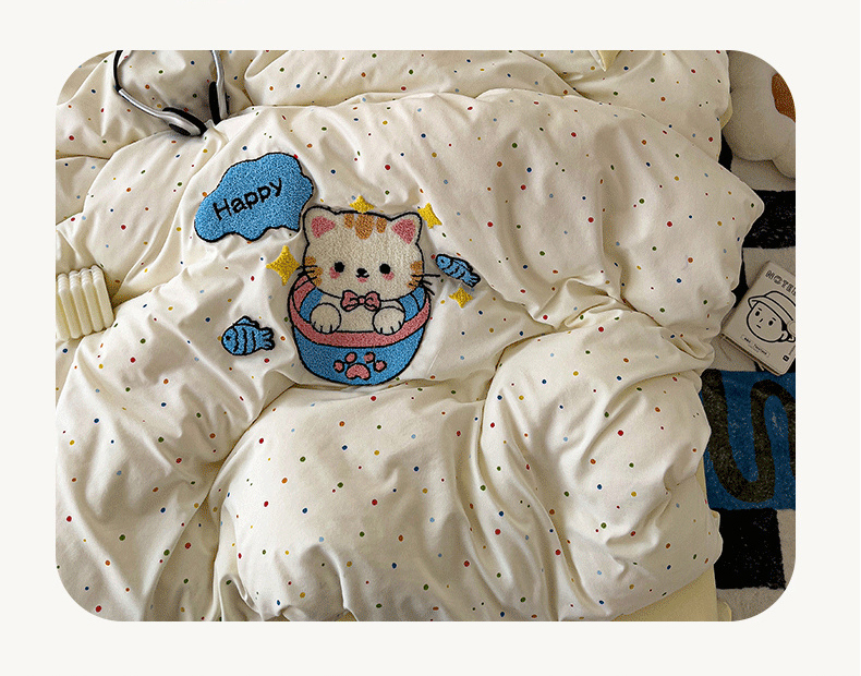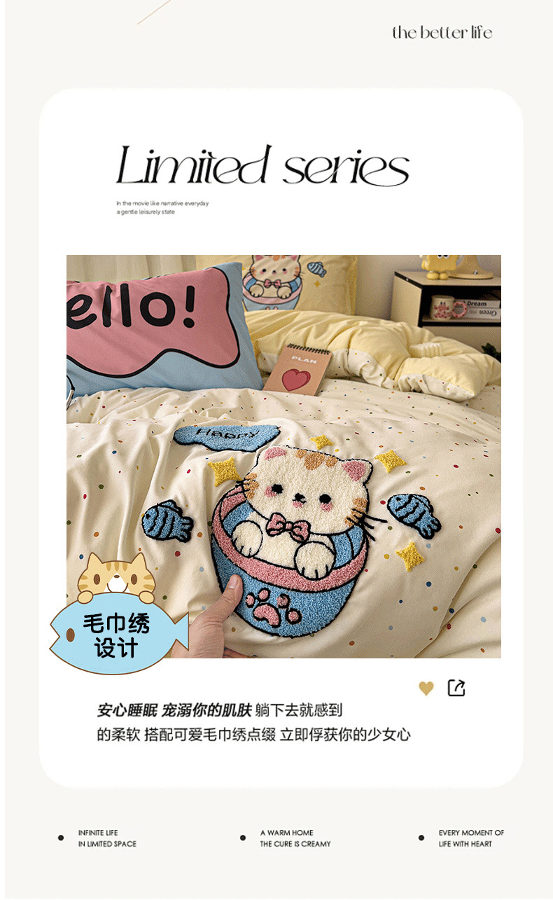 (总)一霖家纺 2025新款小清新牛奶绒毛巾绣四件套-第三波,调皮的小熊,波点小熊,花园小兔咖,小猪派派,樱桃兔,波点米菲兔,彩色小猫