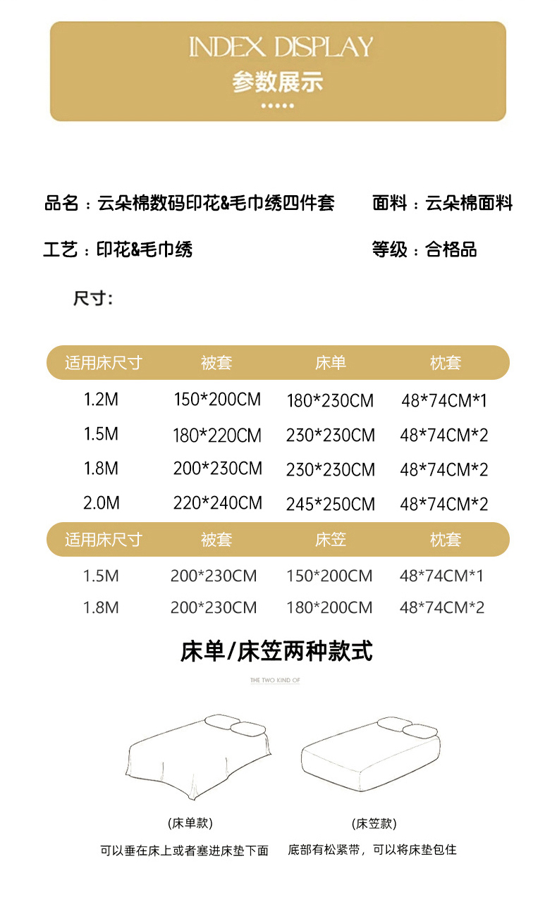 商品名称:(总)一霖家纺 2025新款高克重云朵棉数码印花+毛巾绣四件套