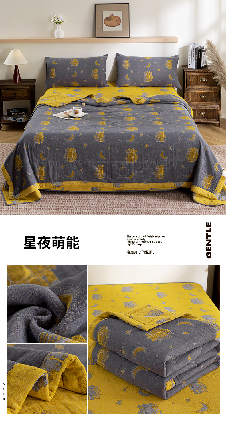 • 91家纺网 家纺一手货源 找家纺 鑫棉坊 2025新款A类里外全棉双层纱可机洗棉花空调被夏凉被四件套 星夜萌熊