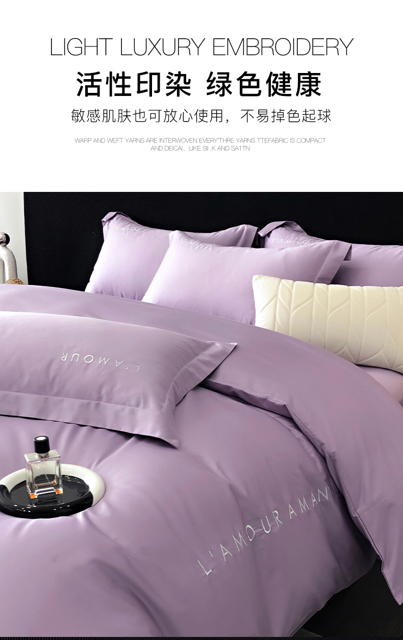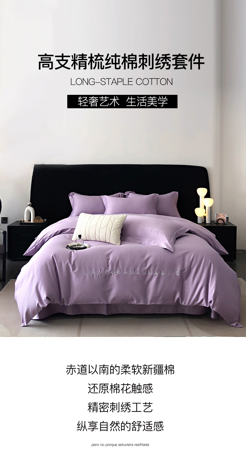 商品名称:禧澜庭 2025新款高支纯棉全棉斜纹四件套刺绣绣花款轻奢三件套--简爱系列 星辰紫