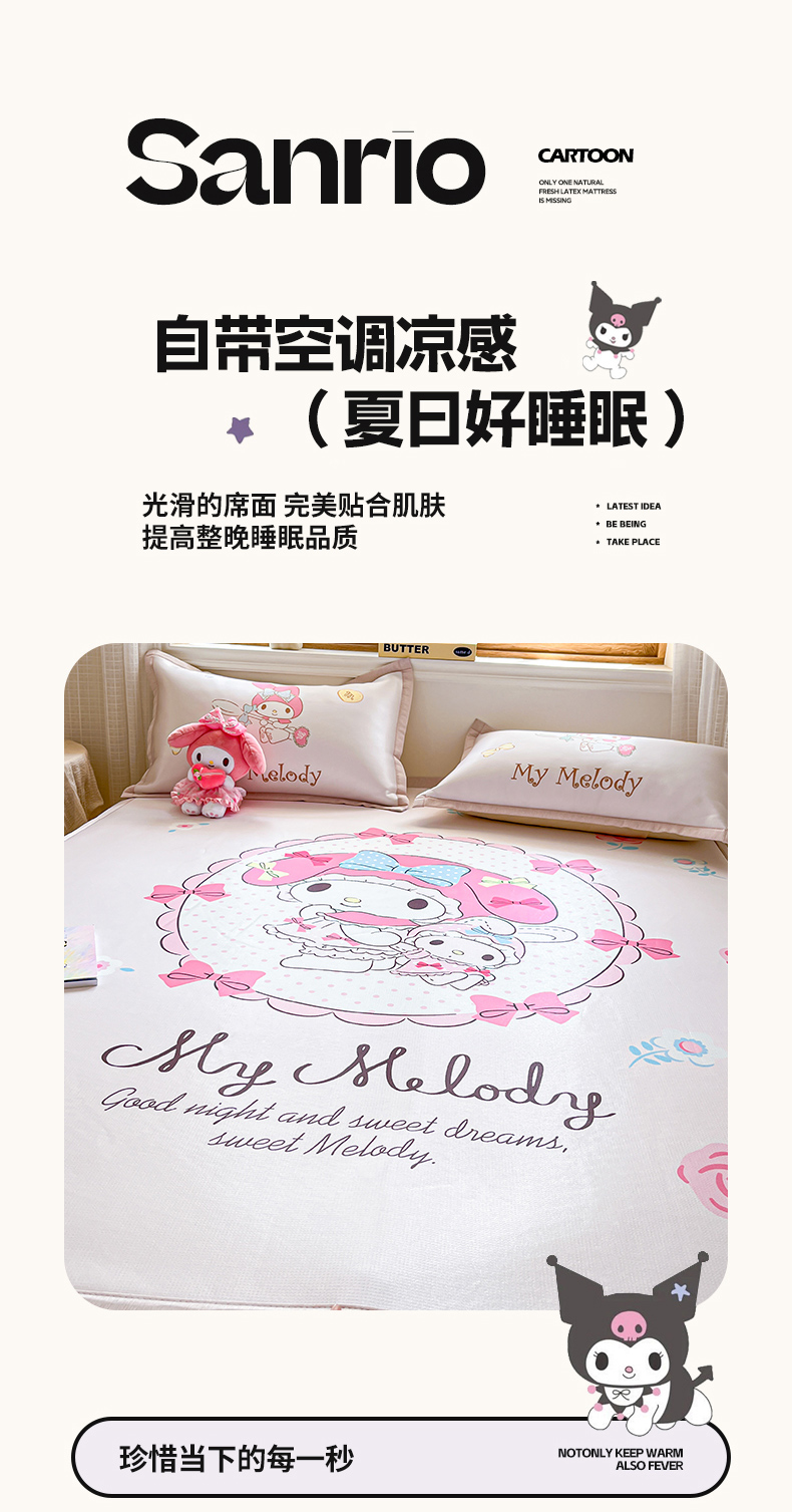 博雅 2025新款三丽欧A类大版数码印花1200D冰丝凉席凉席席子 小花美乐蒂