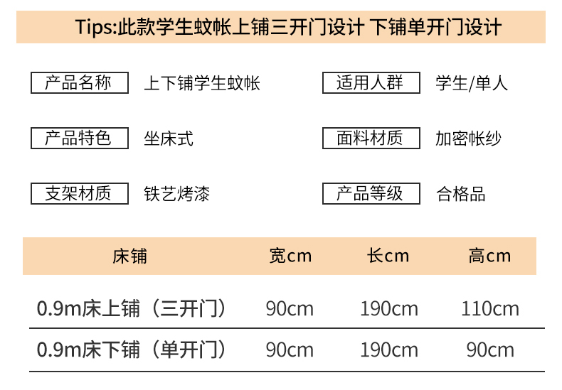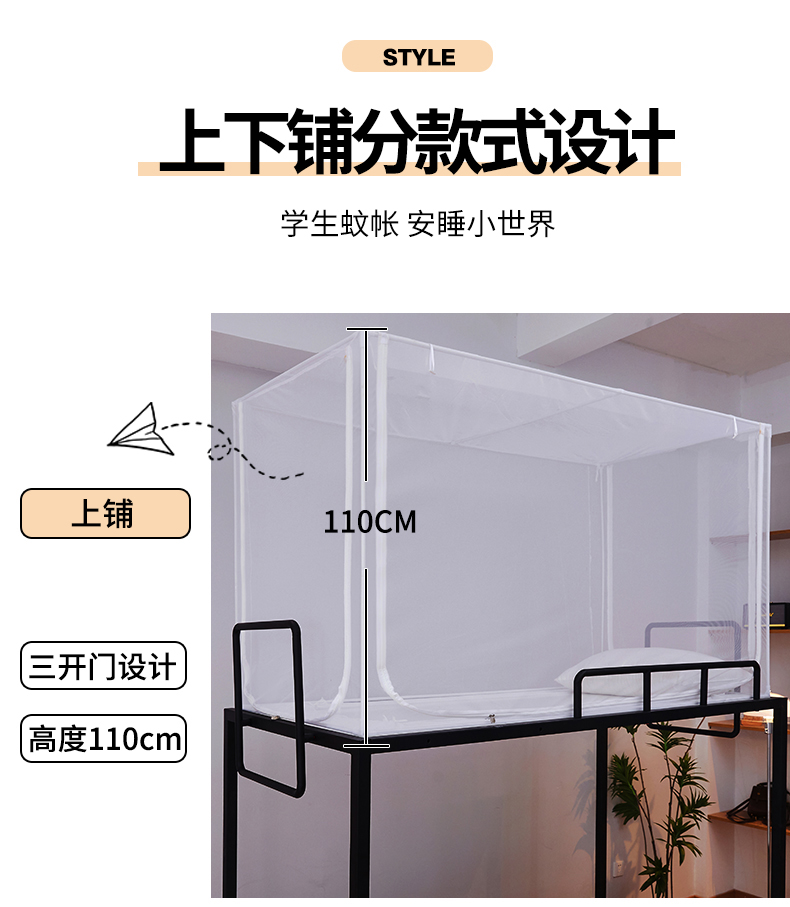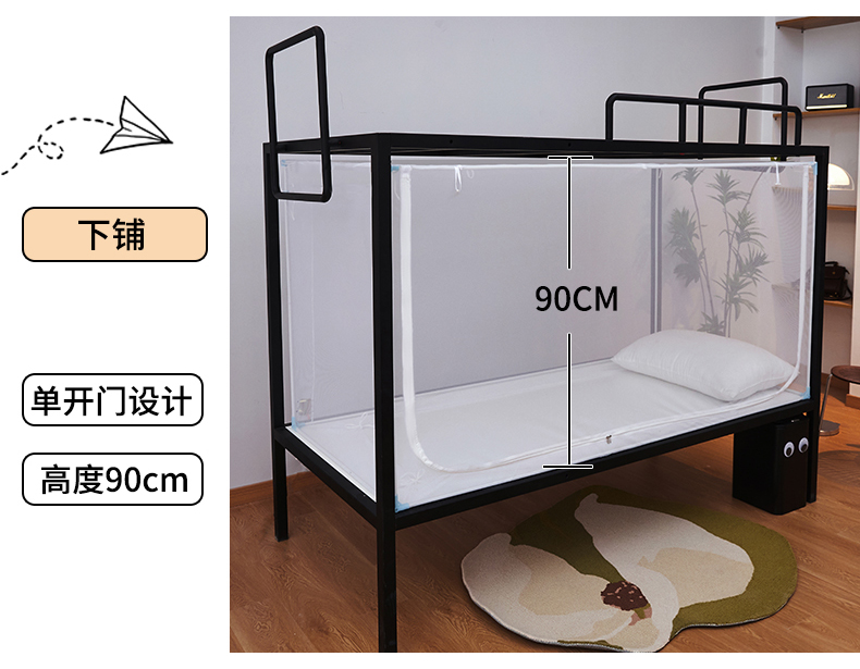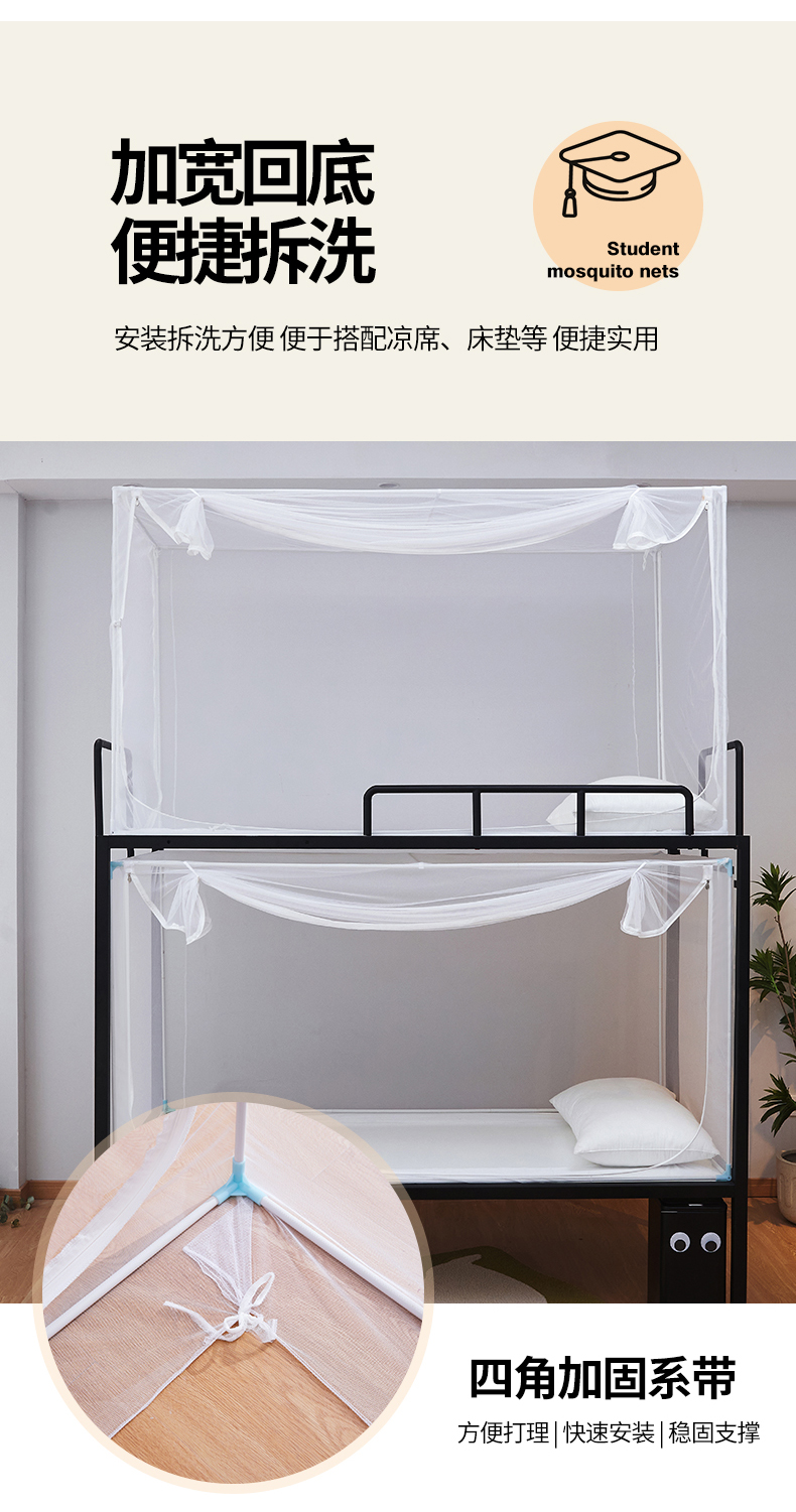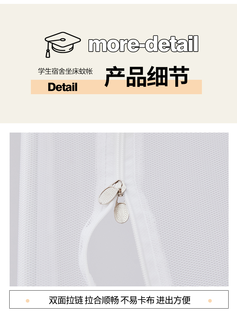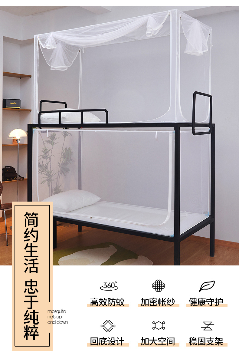 商品名称:冉美家纺 2025新款纯白色学生蚊帐拉链款 纯白