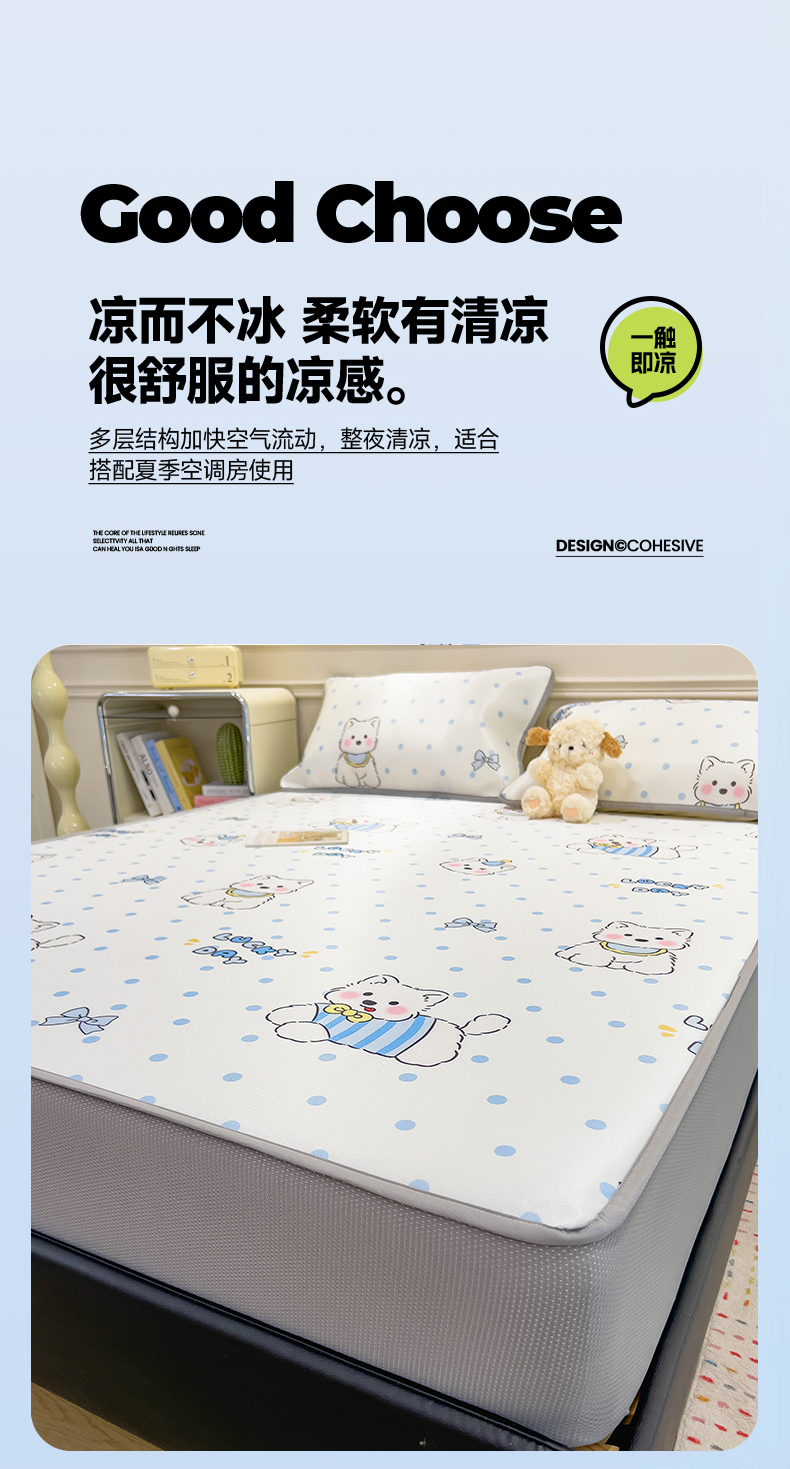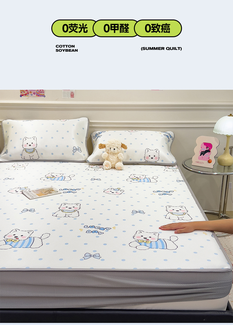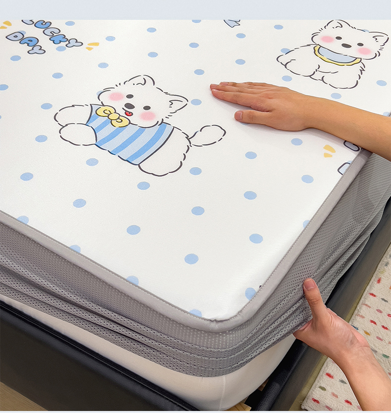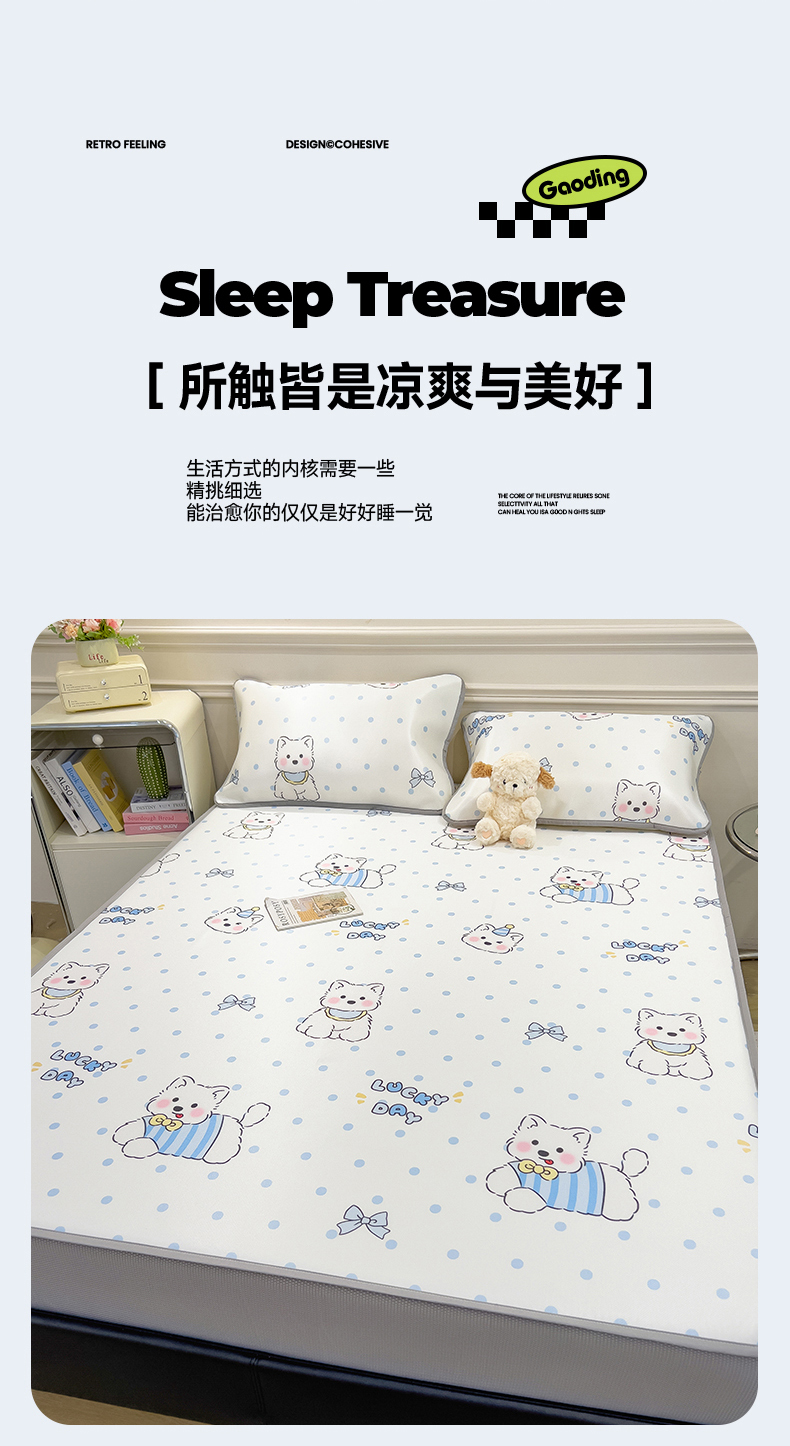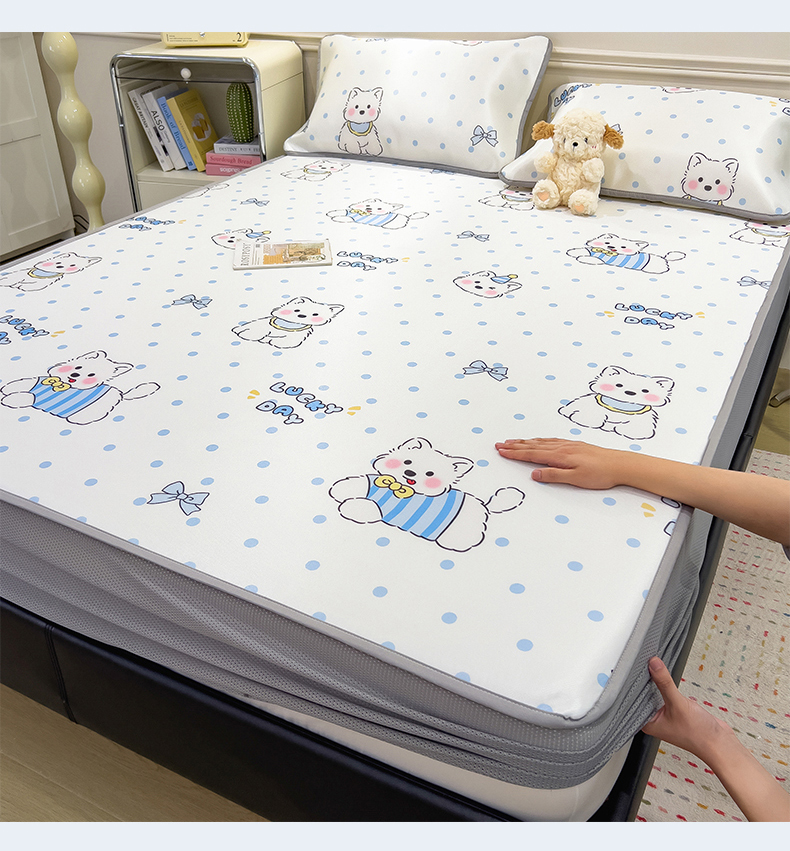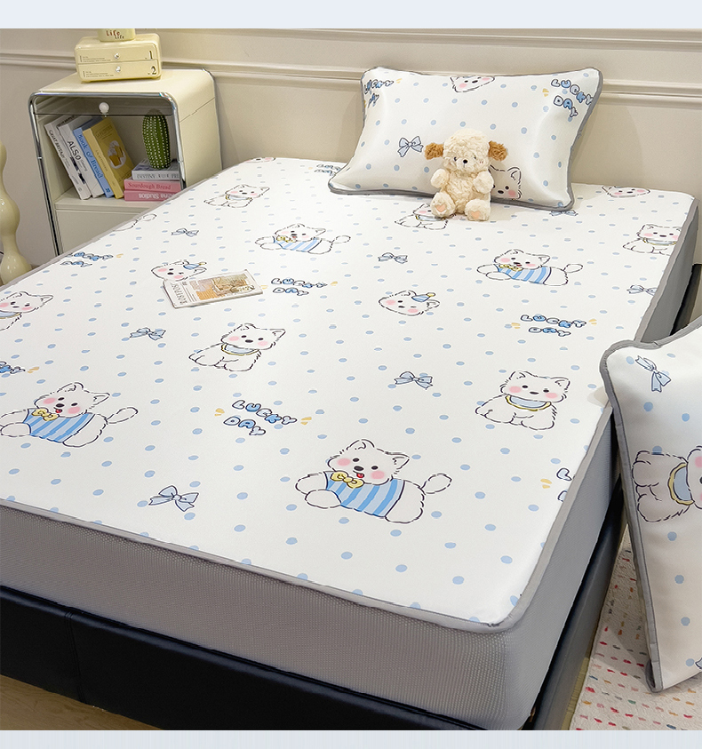 当前位置: 91家纺网 > 商品网购 > 床上用品 > 凉席 > 凉席套件 > 摩妮卡 2025新款小清新碳光冰丝软席床笠款单床笠三件套 趣点蓝犬