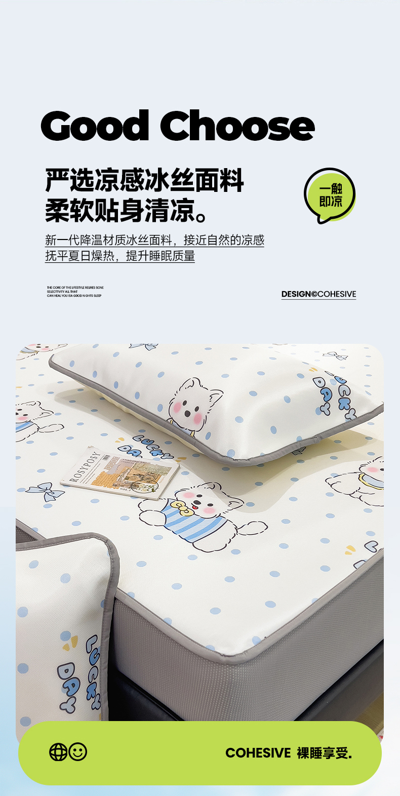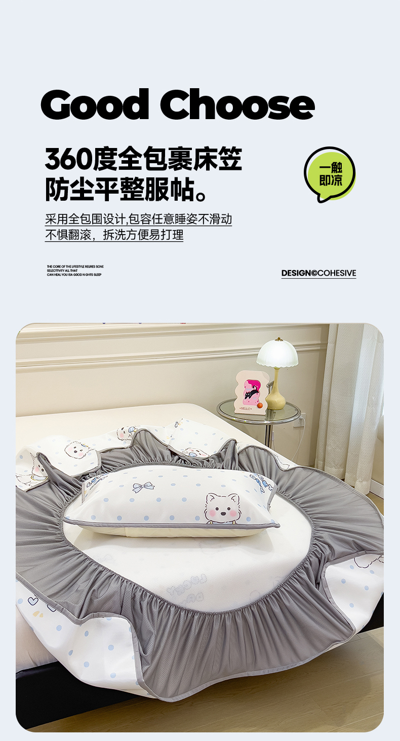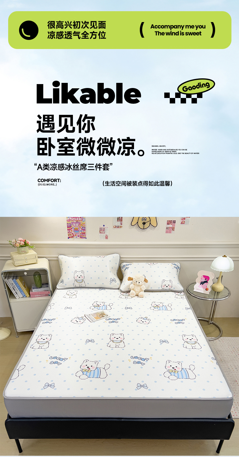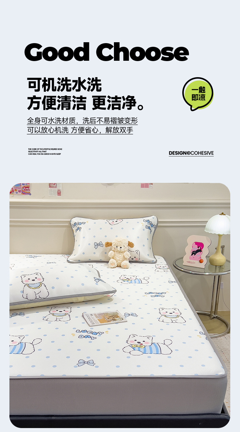 当前位置: 91家纺网 > 商品网购 > 床上用品 > 凉席 > 凉席套件 > 摩妮卡 2025新款小清新碳光冰丝软席床笠款单床笠三件套 趣点蓝犬