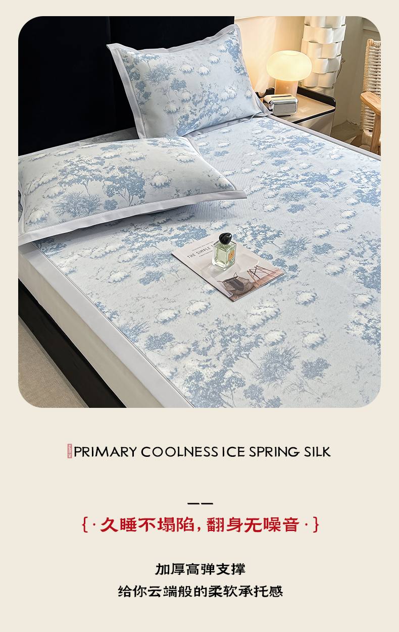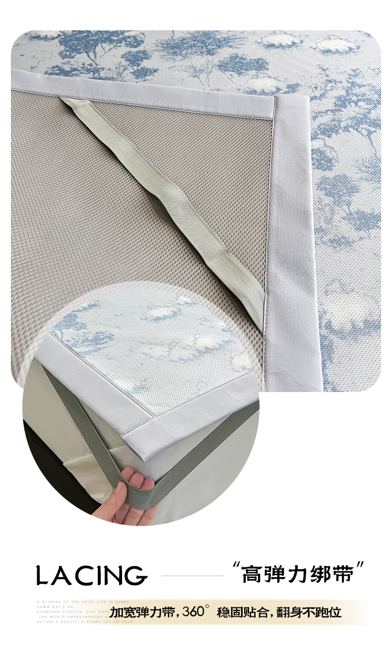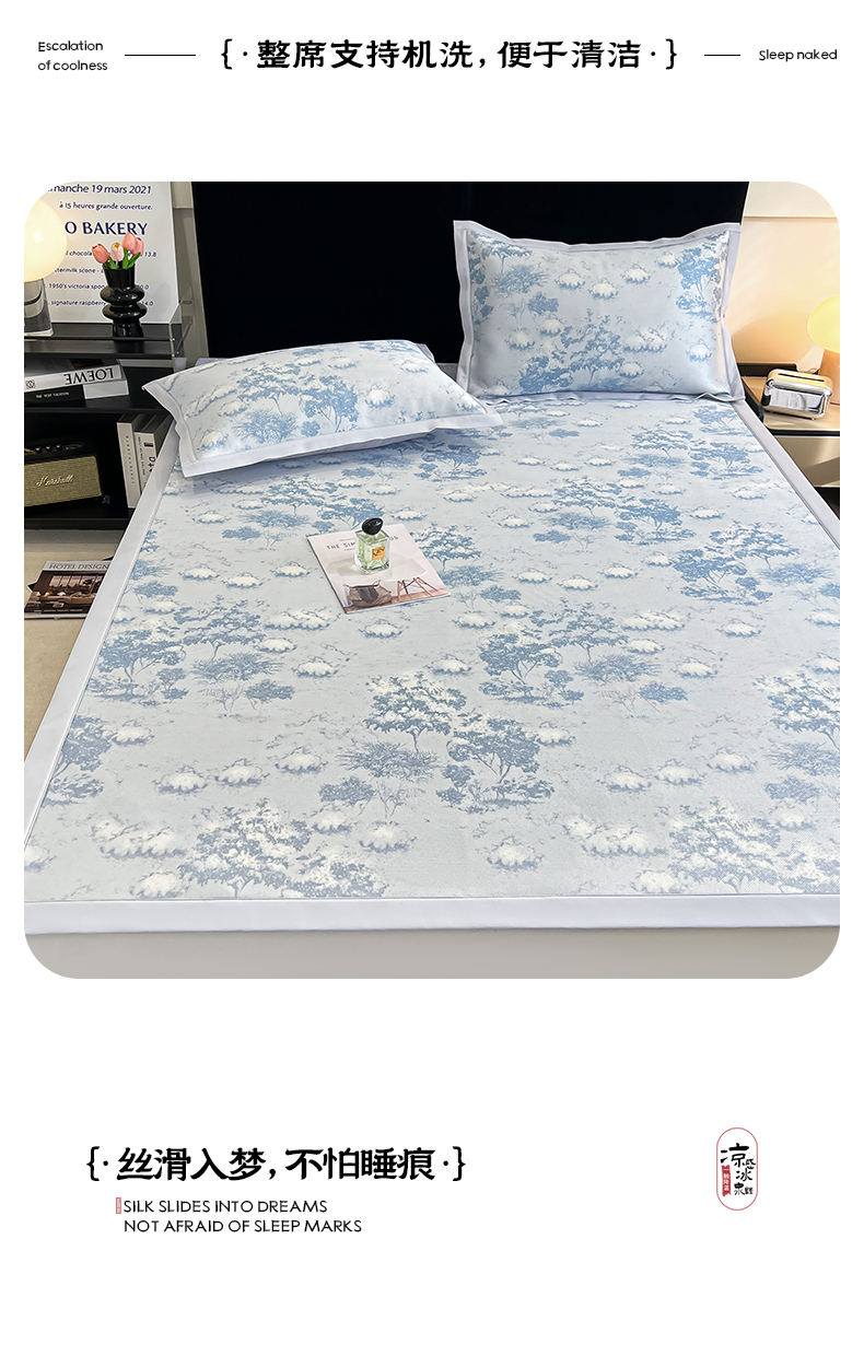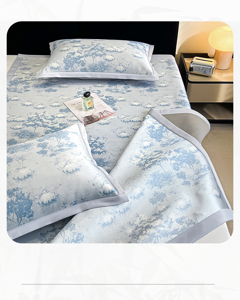 商品名称:倾慕家纺 2025新款冰泉丝水墨风印花包边席子凉席 林影蓝