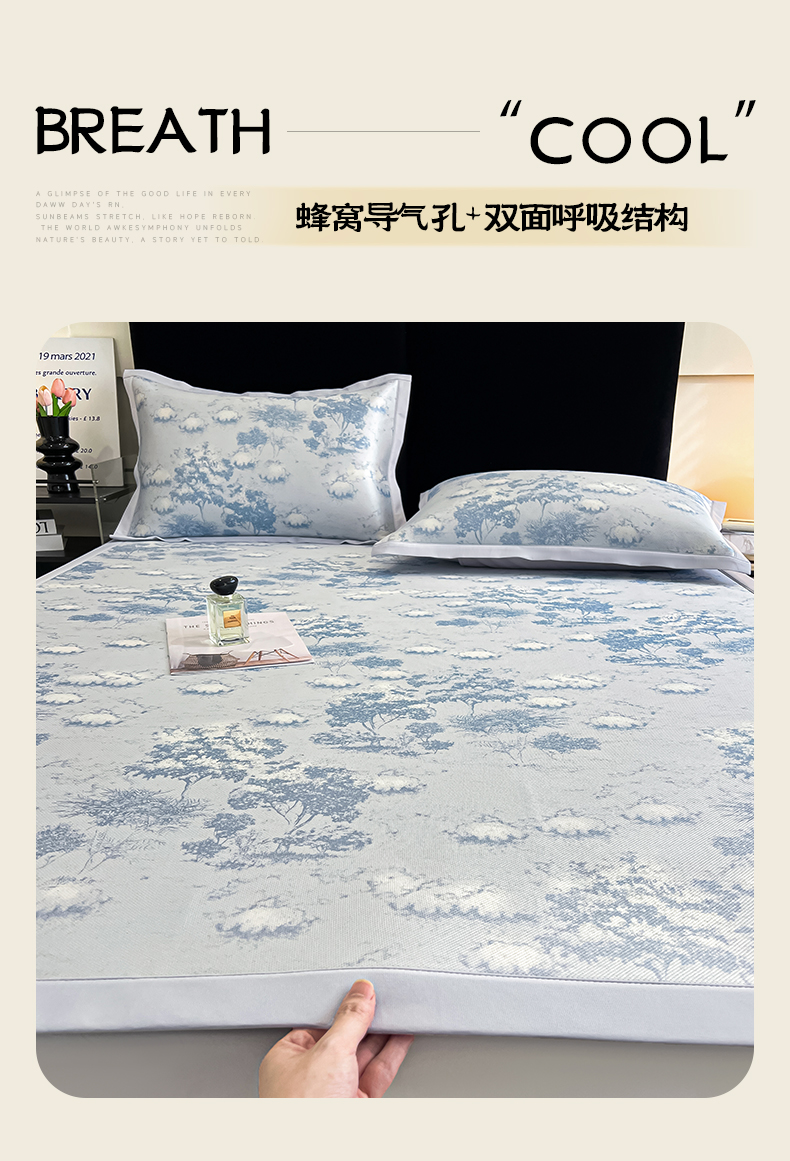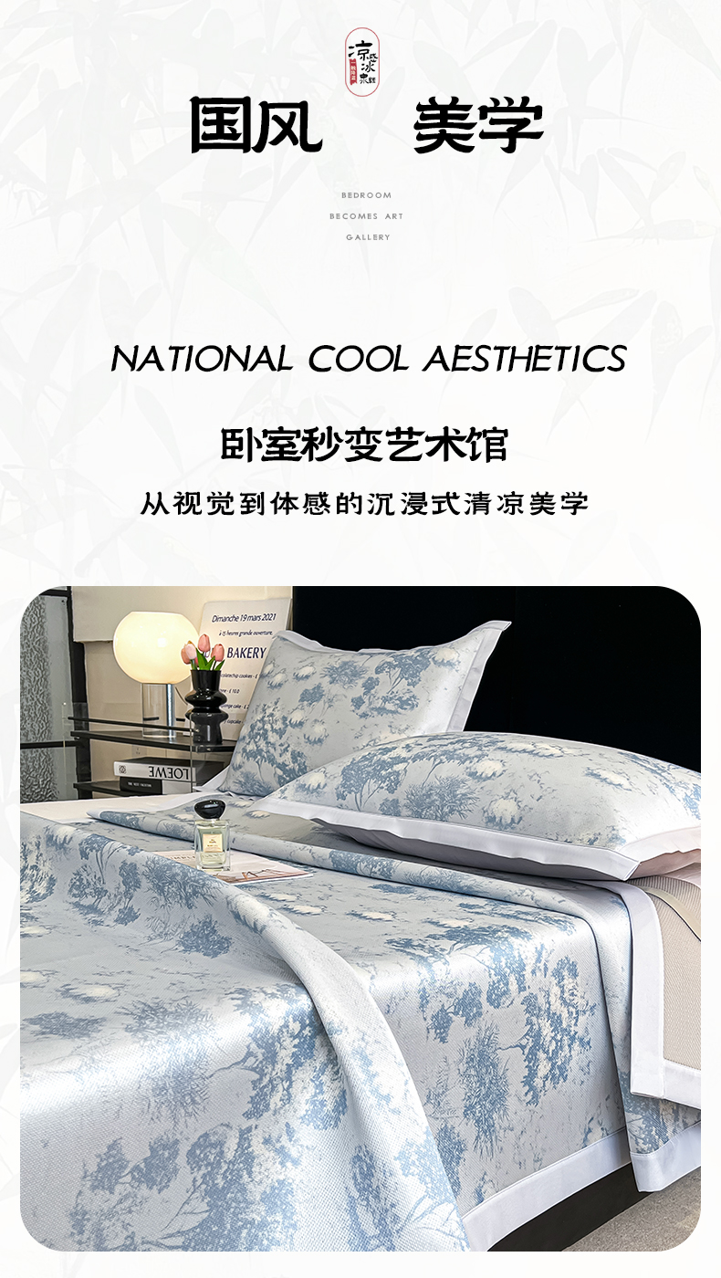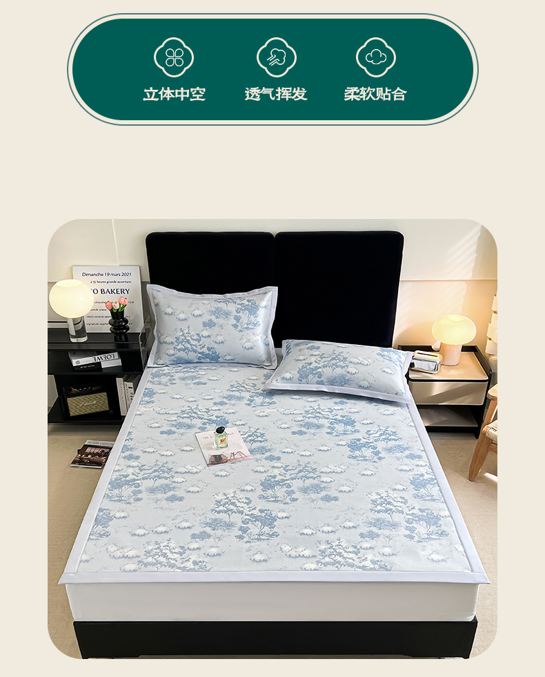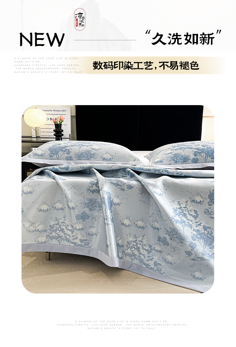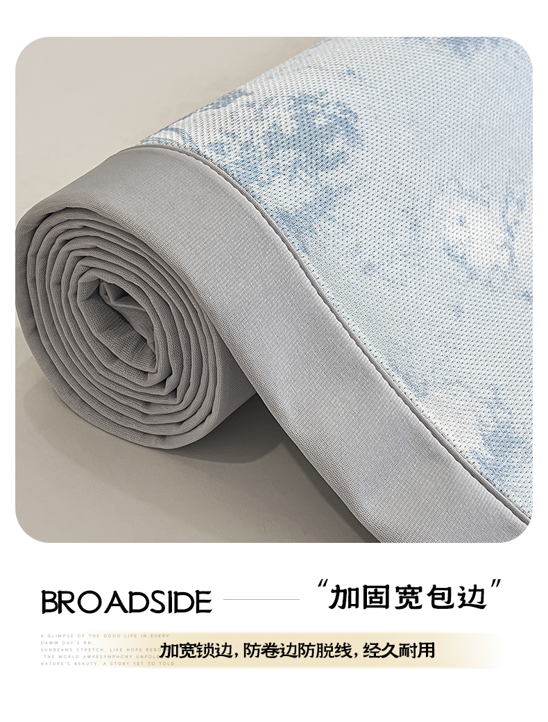 商品名称:倾慕家纺 2025新款冰泉丝水墨风印花包边席子凉席 林影蓝