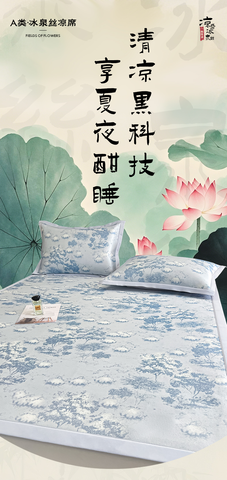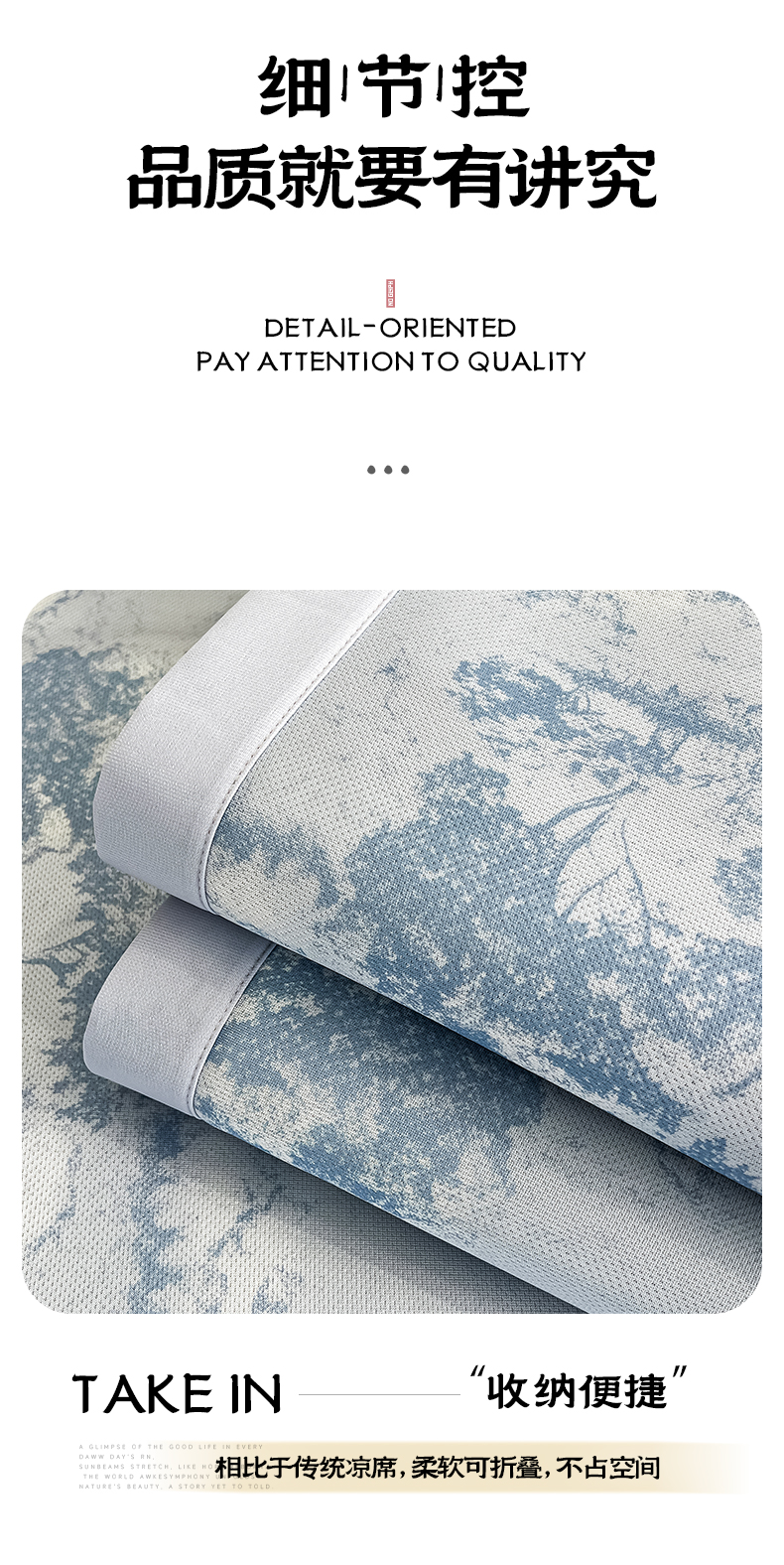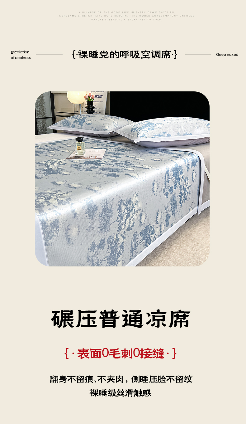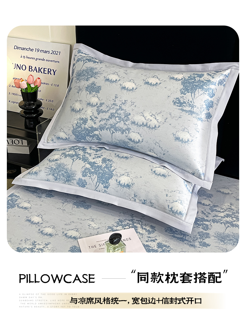 商品名称:倾慕家纺 2025新款冰泉丝水墨风印花包边席子凉席 林影蓝