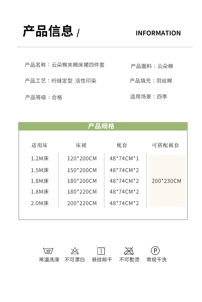 1.8米加大床裙(床裙180*220cm) 四件套 | ¥87.00 |