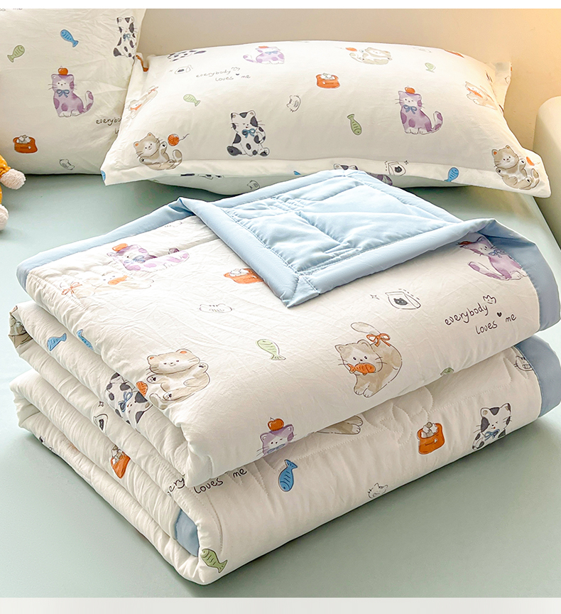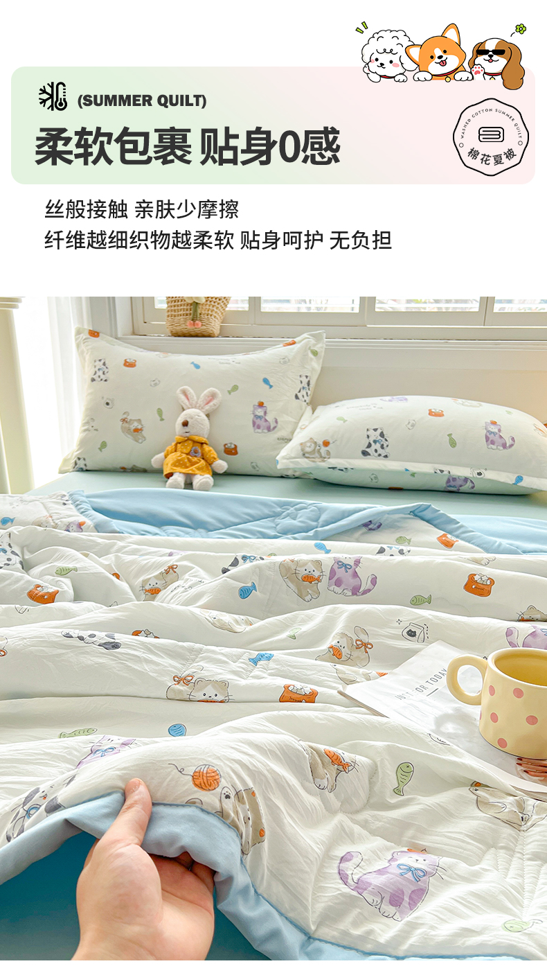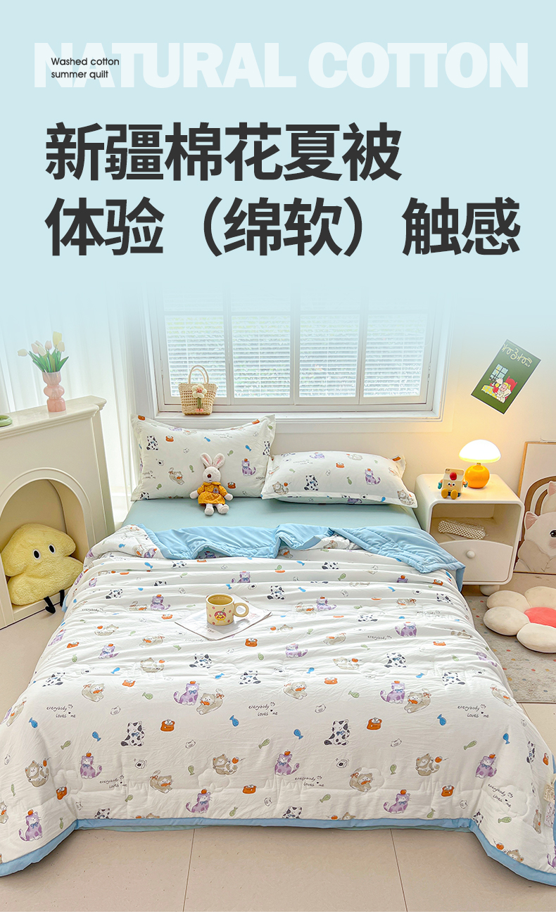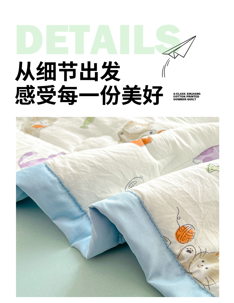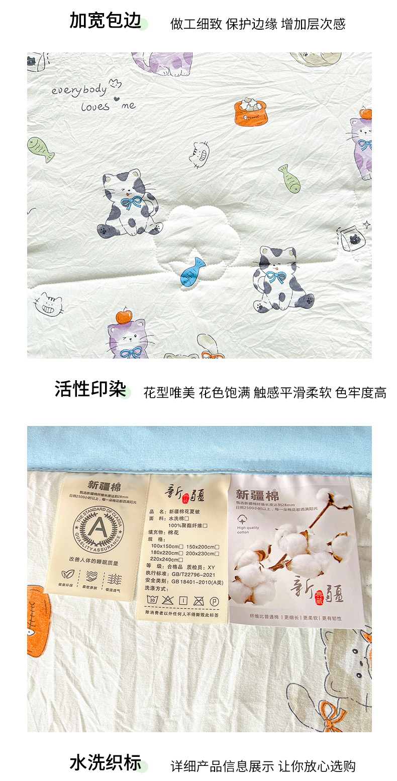 商品名称:西域种棉人·千百笠 2025新款A类新疆棉花夏凉被加宽包边水洗棉卡通印花吸湿透气棉花夏被空调被 凌香 许愿猫